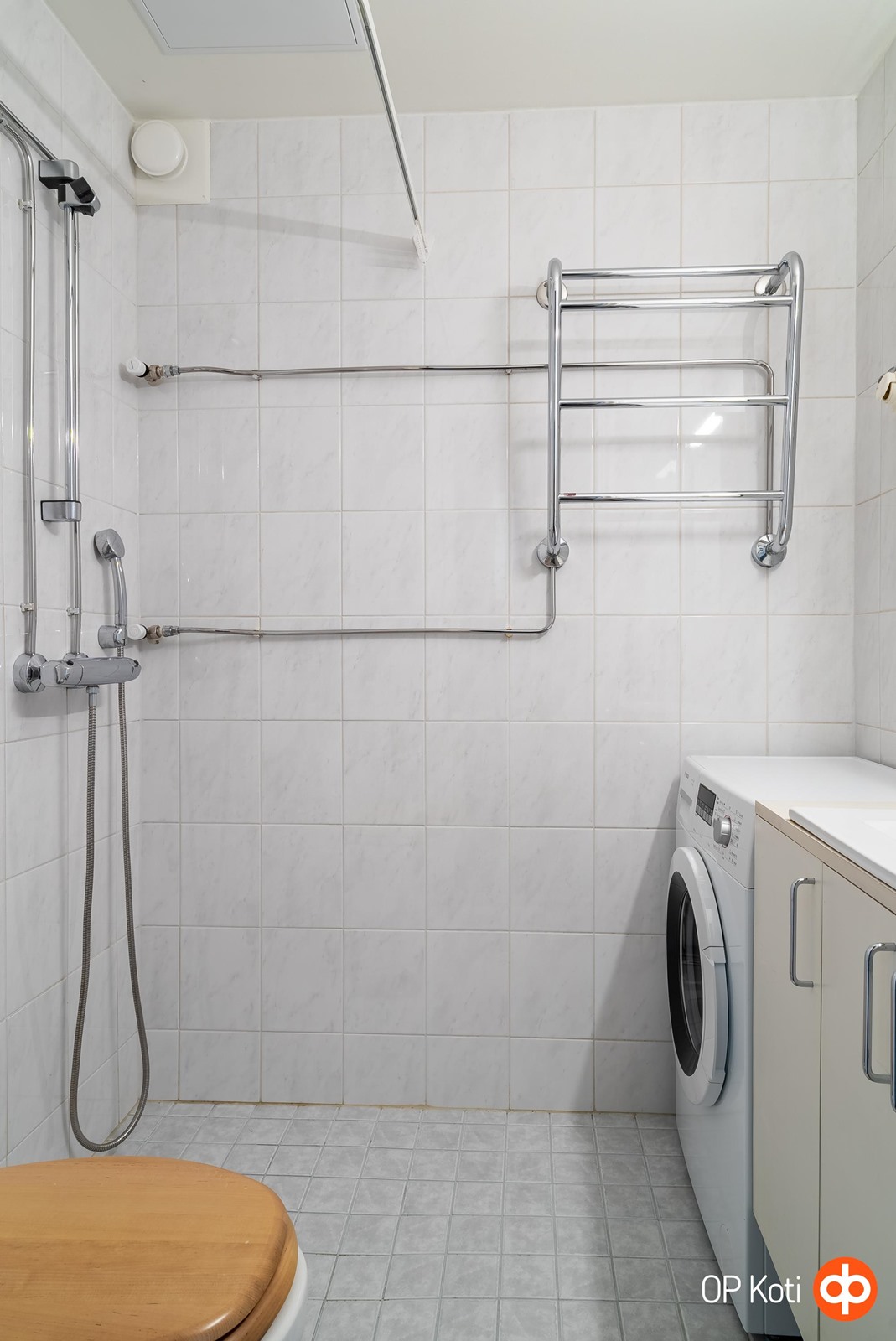 - Kylpyhuone, suihku, peilikaappi, allaskaappi, pesukoneliitäntä, kiinteät valaisimet. sustera tarkastanut 2025