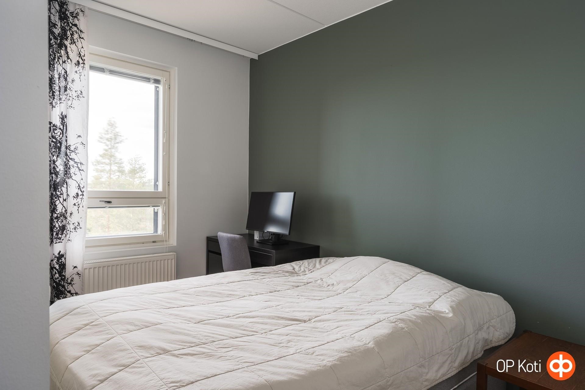 - Huoneiston ikkunat länteen, avarat näkymät yli puiden.
