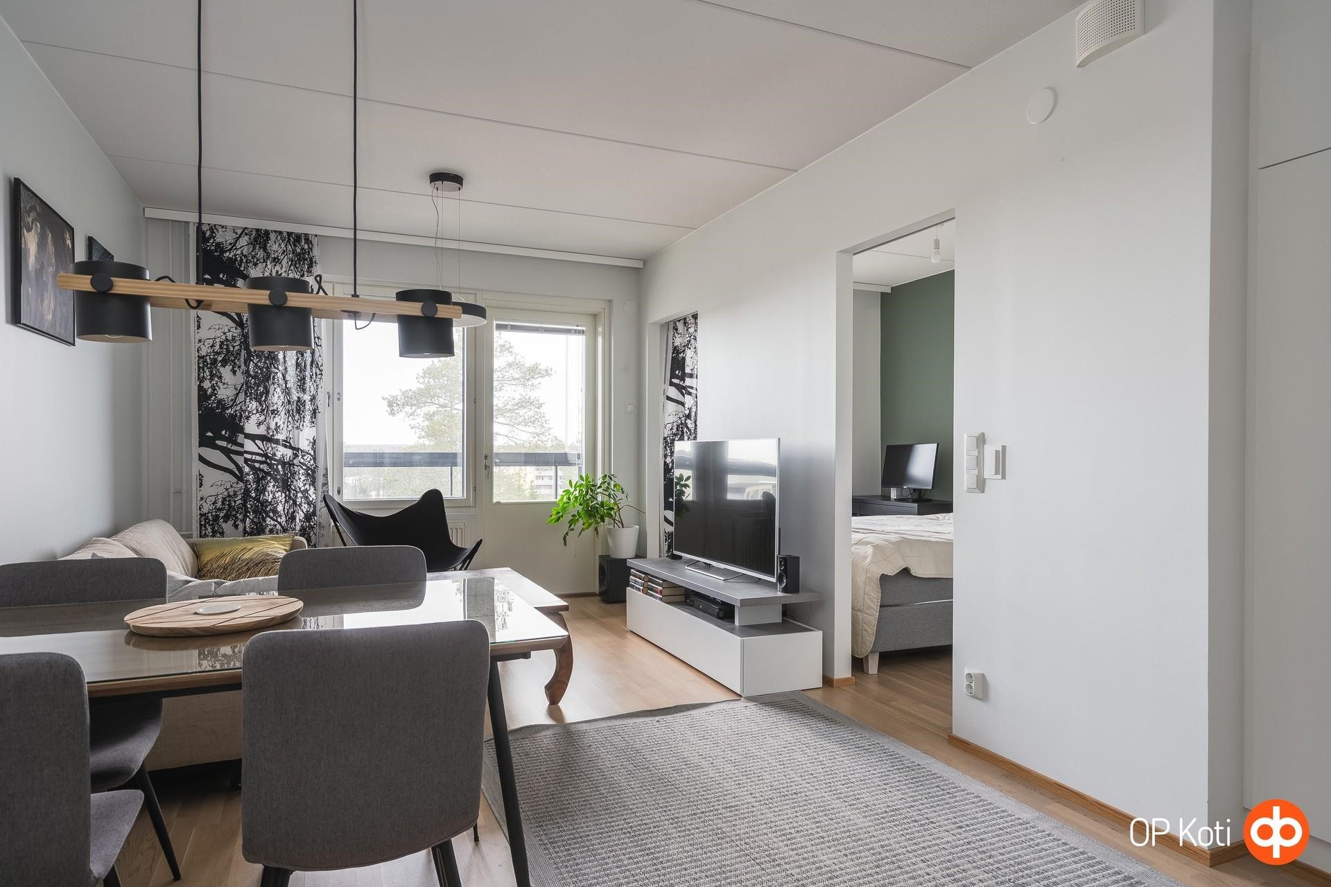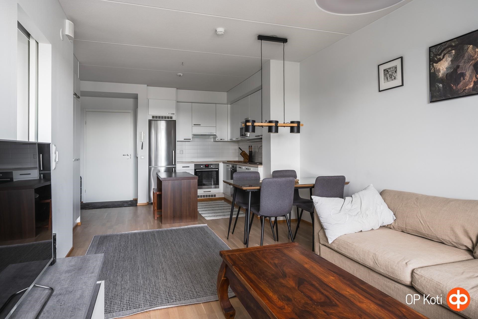 Tässä kodissa arki toimii ilman turhaa säätöä. Kuudennen kerroksen valoisa kaksio sijaitsee uudehkossa, vuonna 2016 valmistuneessa talossa ja tarjoaa juuri sopivasti tilaa omaan ensimmäiseen kotiin tai vaivattoman kohteen sijoituskäyttöön.