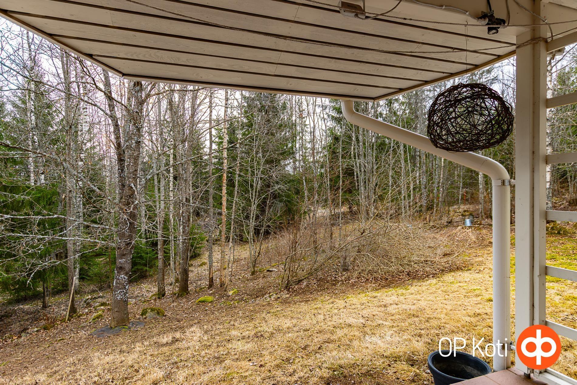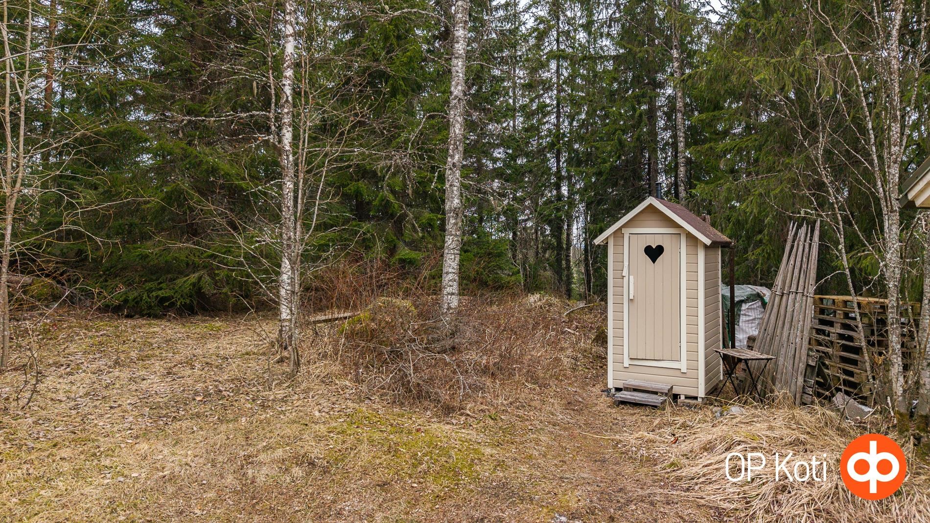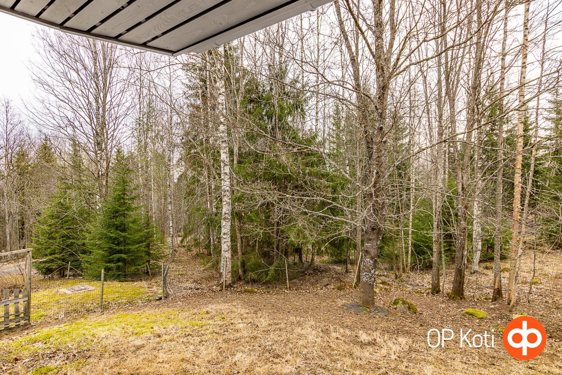 Aidattu piha soveltuu lemmikkien pitoon ja tarjoaa suojaisan ja vehreän ympäristön. Tontilla kasvaa omena-, kirsikka- ja luumupuita, viiniköynnöstä. Käytännölliset kasvulaatikot soveltuvat esimerkiksi yrttien kasvatukseen. Talossa on maakellari, johon voi säilöä oman pihan satoa, marjoja sekä lähimetsien antimet.