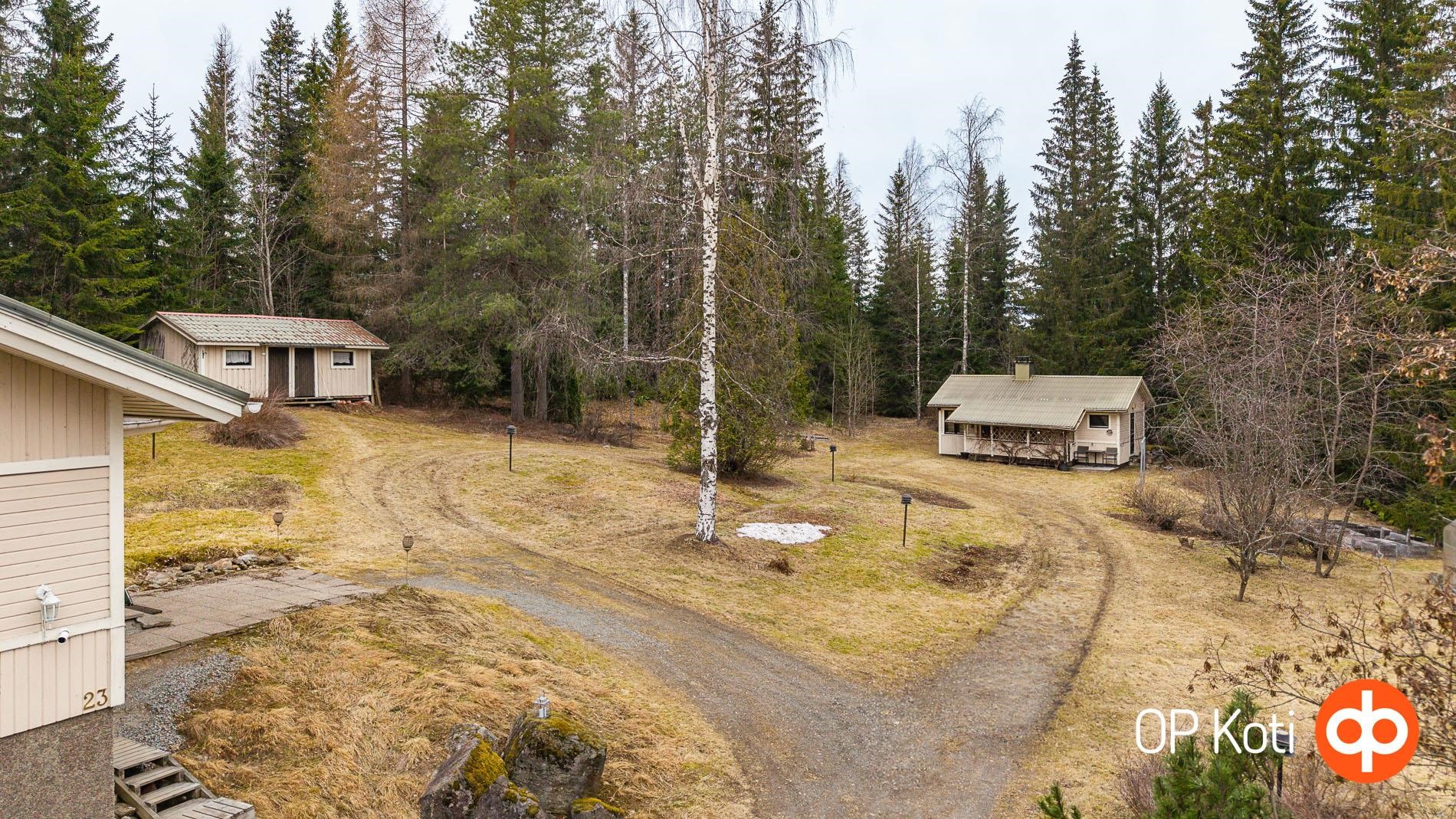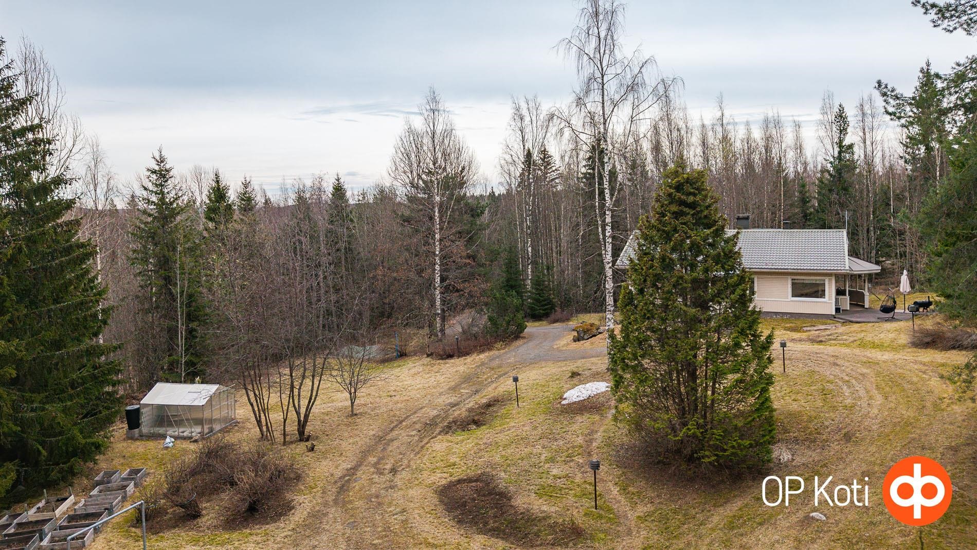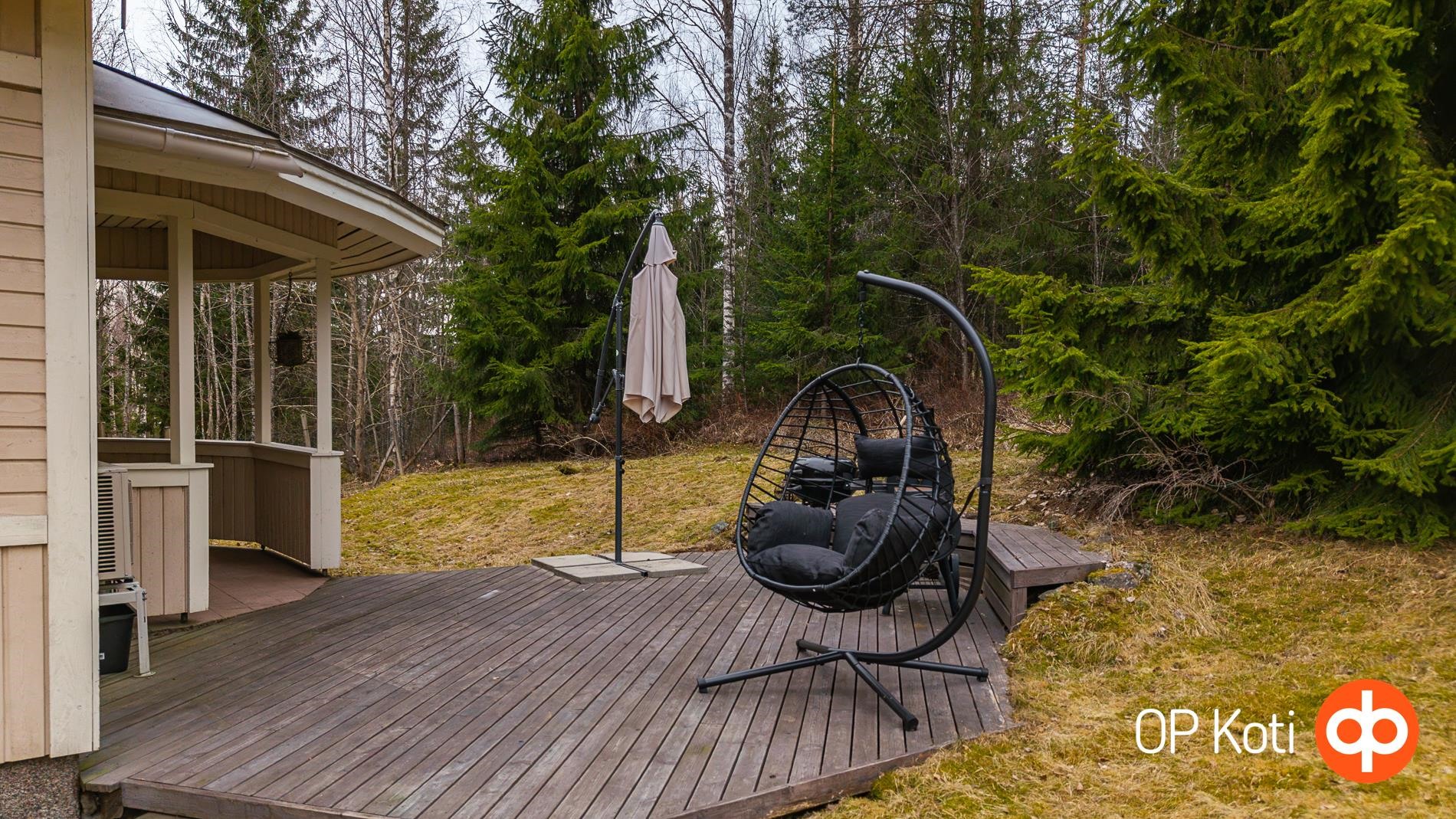 Aidattu piha soveltuu lemmikkien pitoon ja tarjoaa suojaisan ja vehreän ympäristön. Tontilla kasvaa omena-, kirsikka- ja luumupuita, viiniköynnöstä. Käytännölliset kasvulaatikot soveltuvat esimerkiksi yrttien kasvatukseen. Talossa on maakellari, johon voi säilöä oman pihan satoa, marjoja sekä lähimetsien antimet.