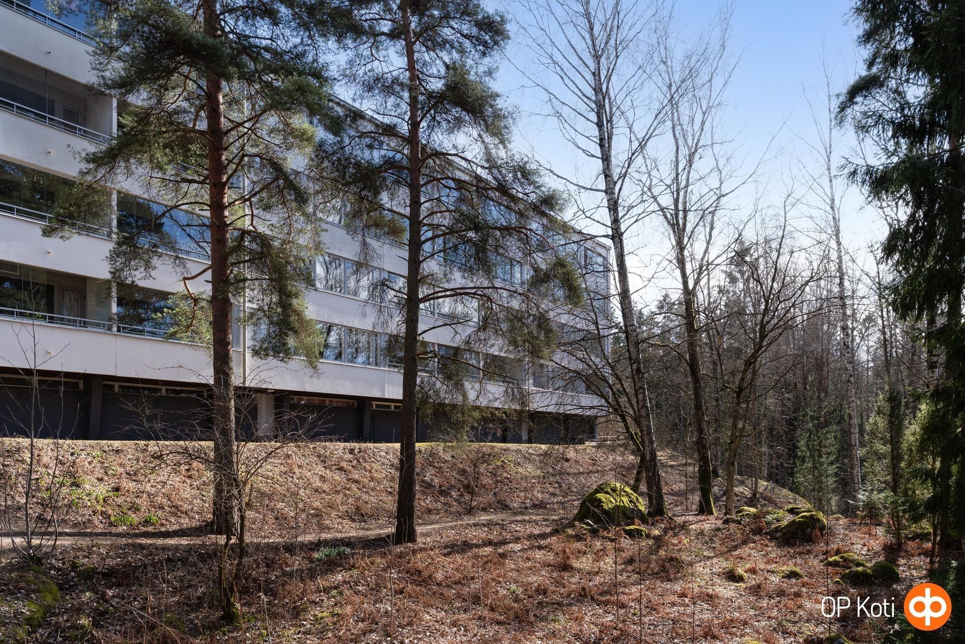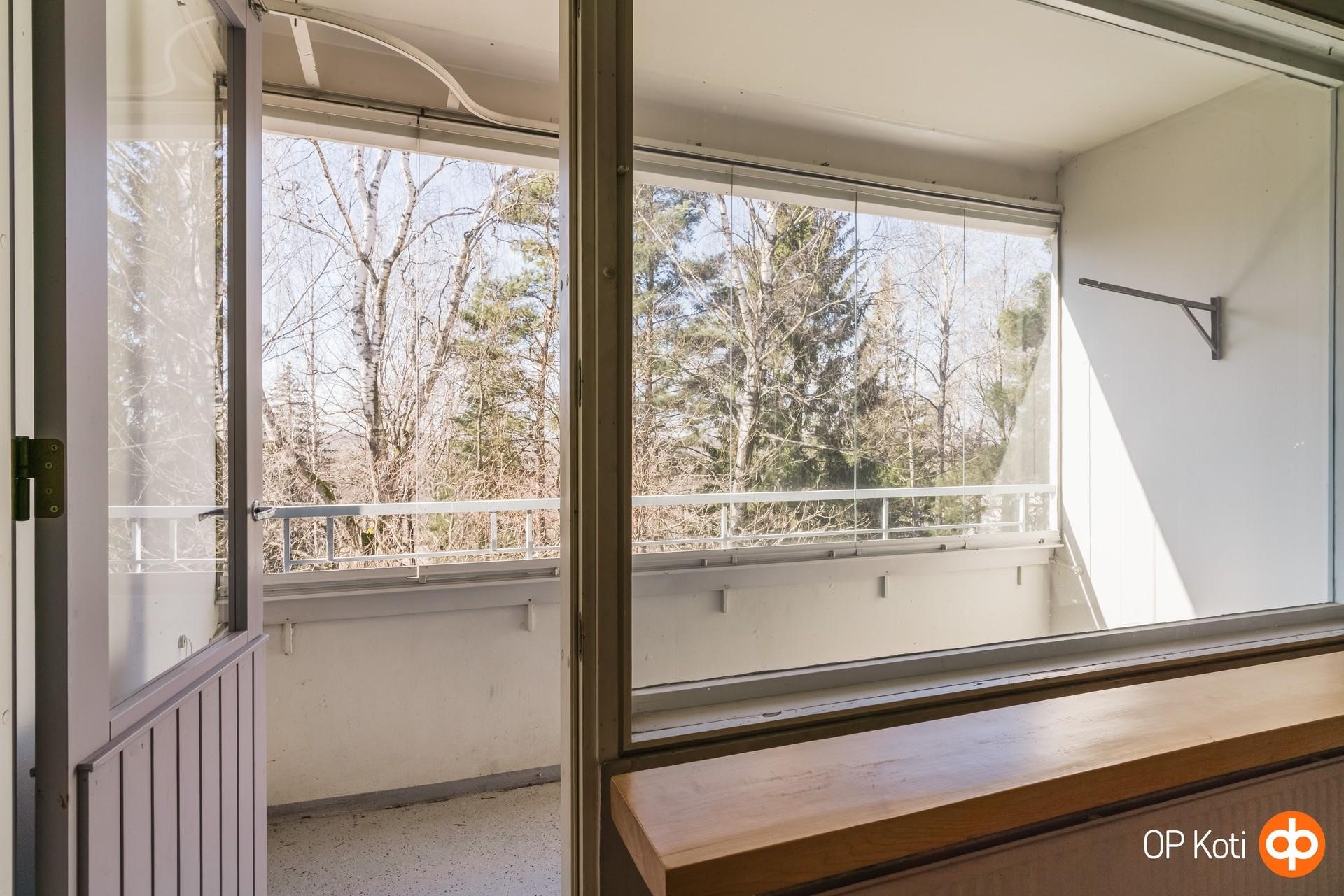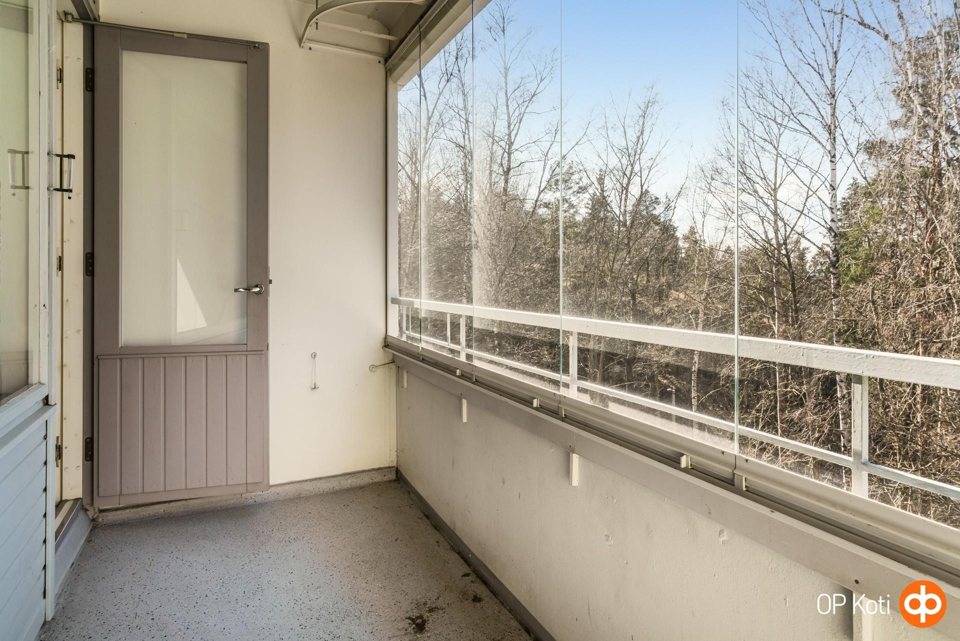 - Lasitettu parveke, josta metsäiset näkymä pohjoiseen. Läpitalon huoneisto etelä-pohjoinen.