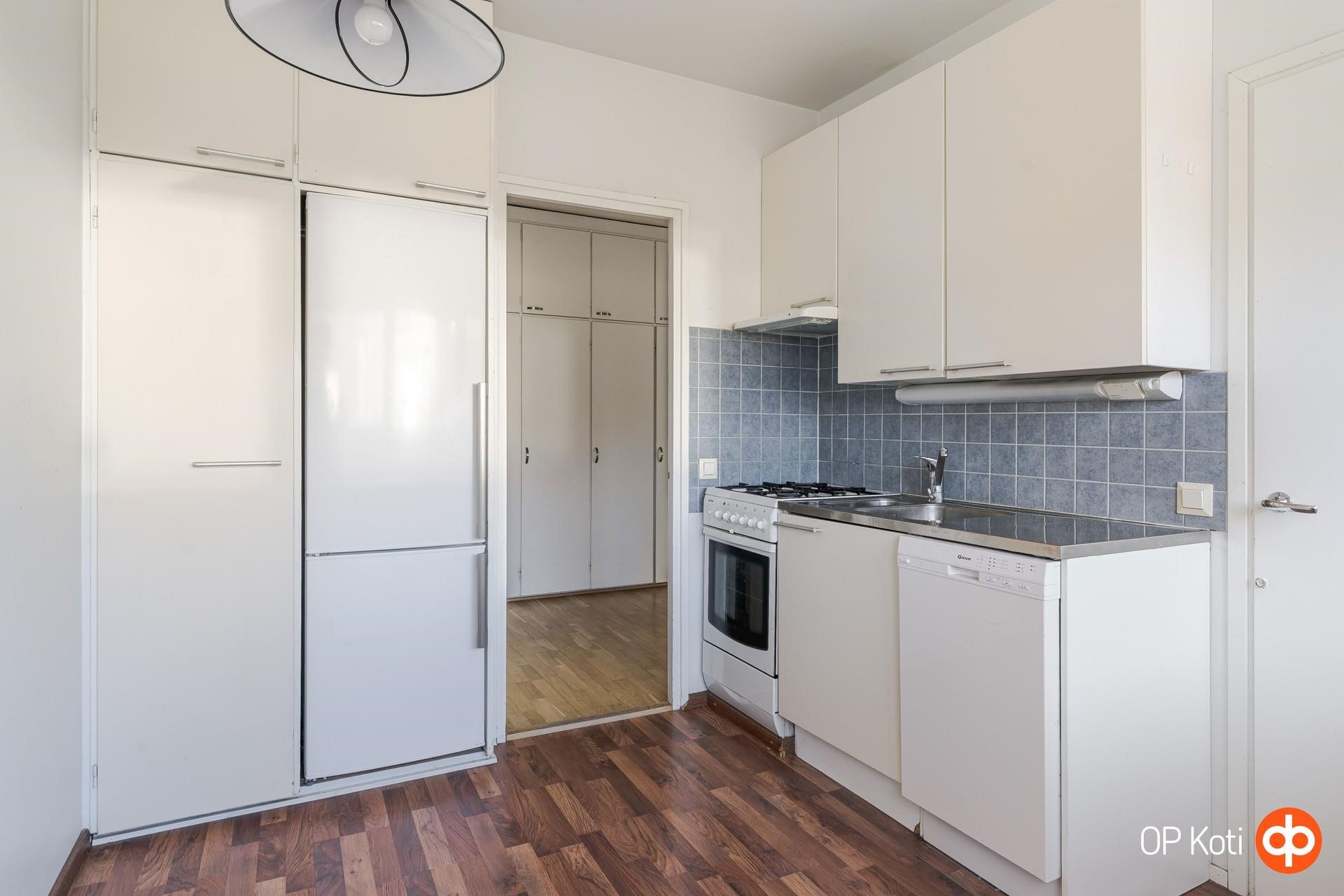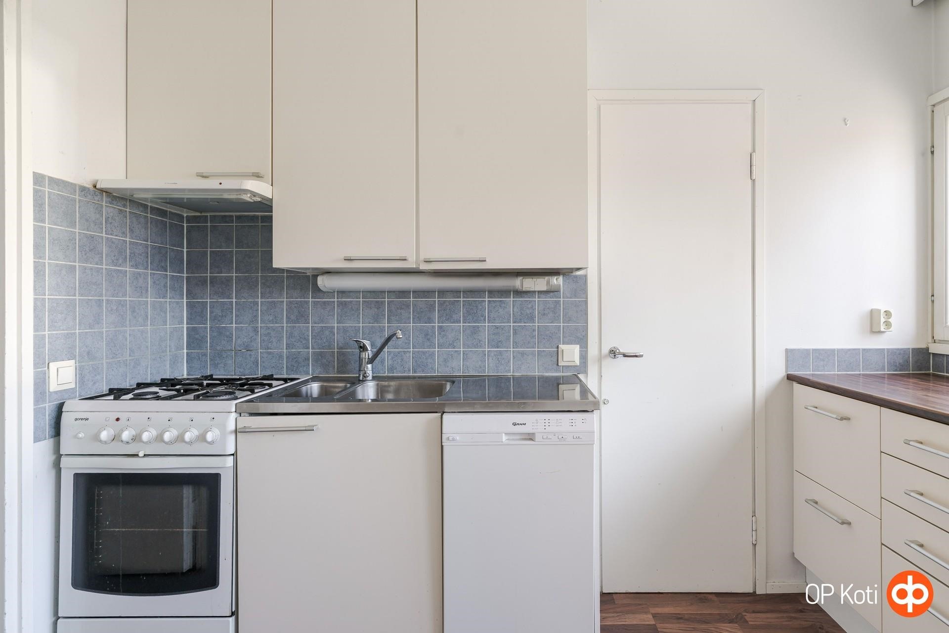 - Jääkaappipakastin, kaasuliesi + kiertoilmauuni, liesituuletin, astianpesukone, kaapistot, kiinteät valaisimet.