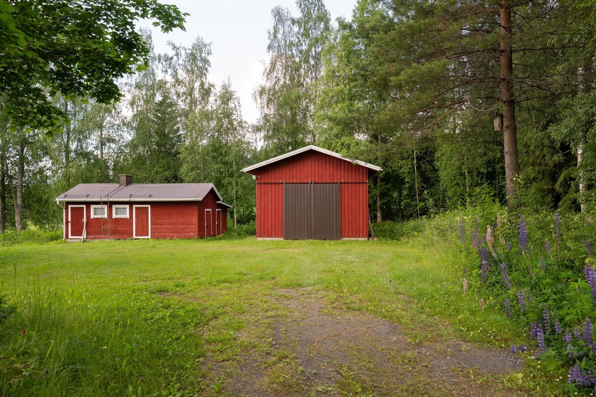 Pihapiiri on aurinkoinen ja muutama aari omaa peltoakin löytyy. Kotitarveviljely on siis mahdollista. Pihan marjapensaat ovat vuosikaudet tuottaneet hyvää satoa. Tällä hetkellä ne kaipaavat jo kunnon huolenpitoa. Pihapiirissä on myös iso, korkea tallirakennus, jossa on hyvää työskentely- tai varastointitilaa.