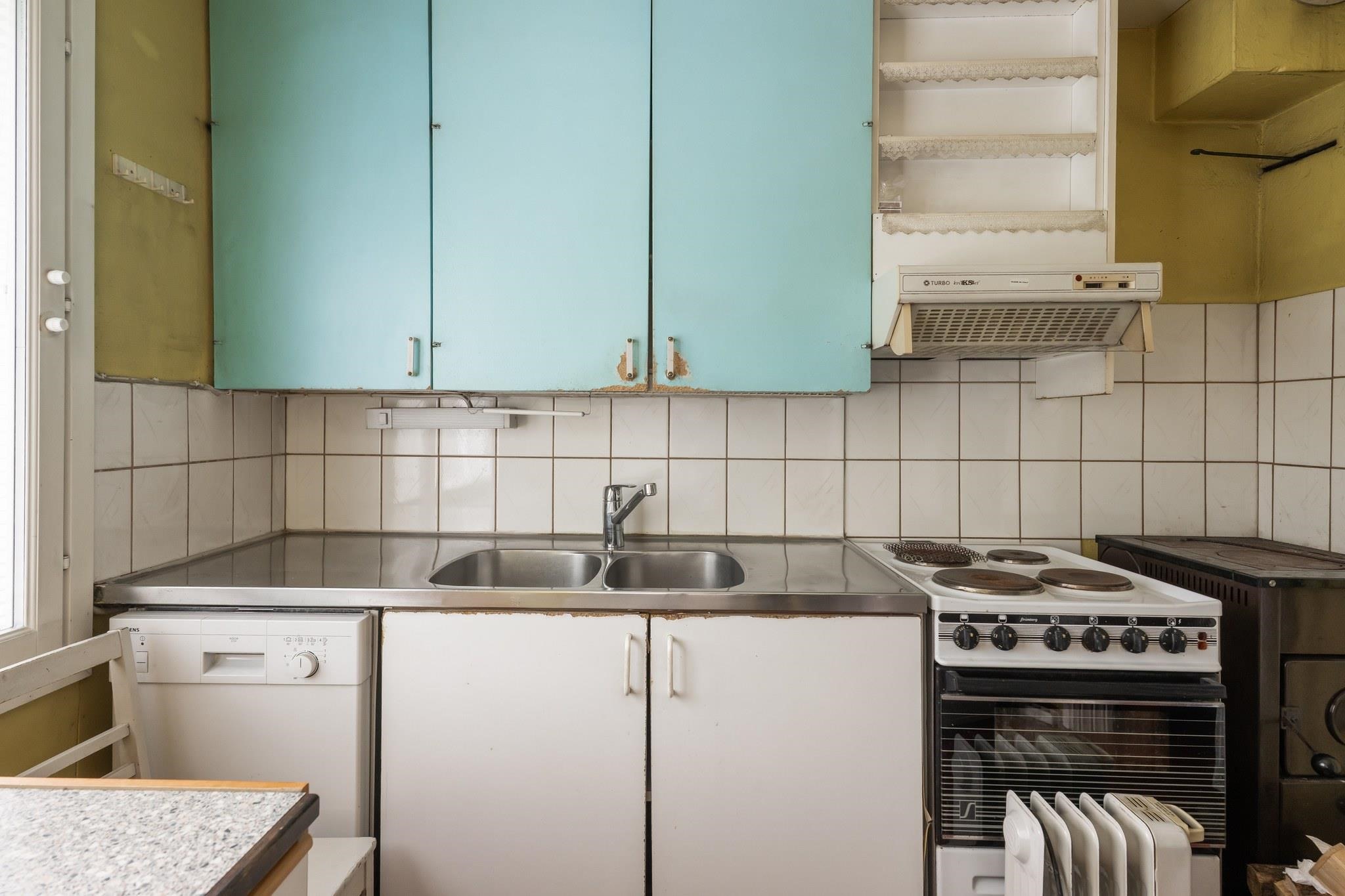 - Jenkkikaappi, sähköliesi, liesituuletin, astianpesukone viallinen, kaapistot, kiinteät valaisimet. arkkupakastin , kamina