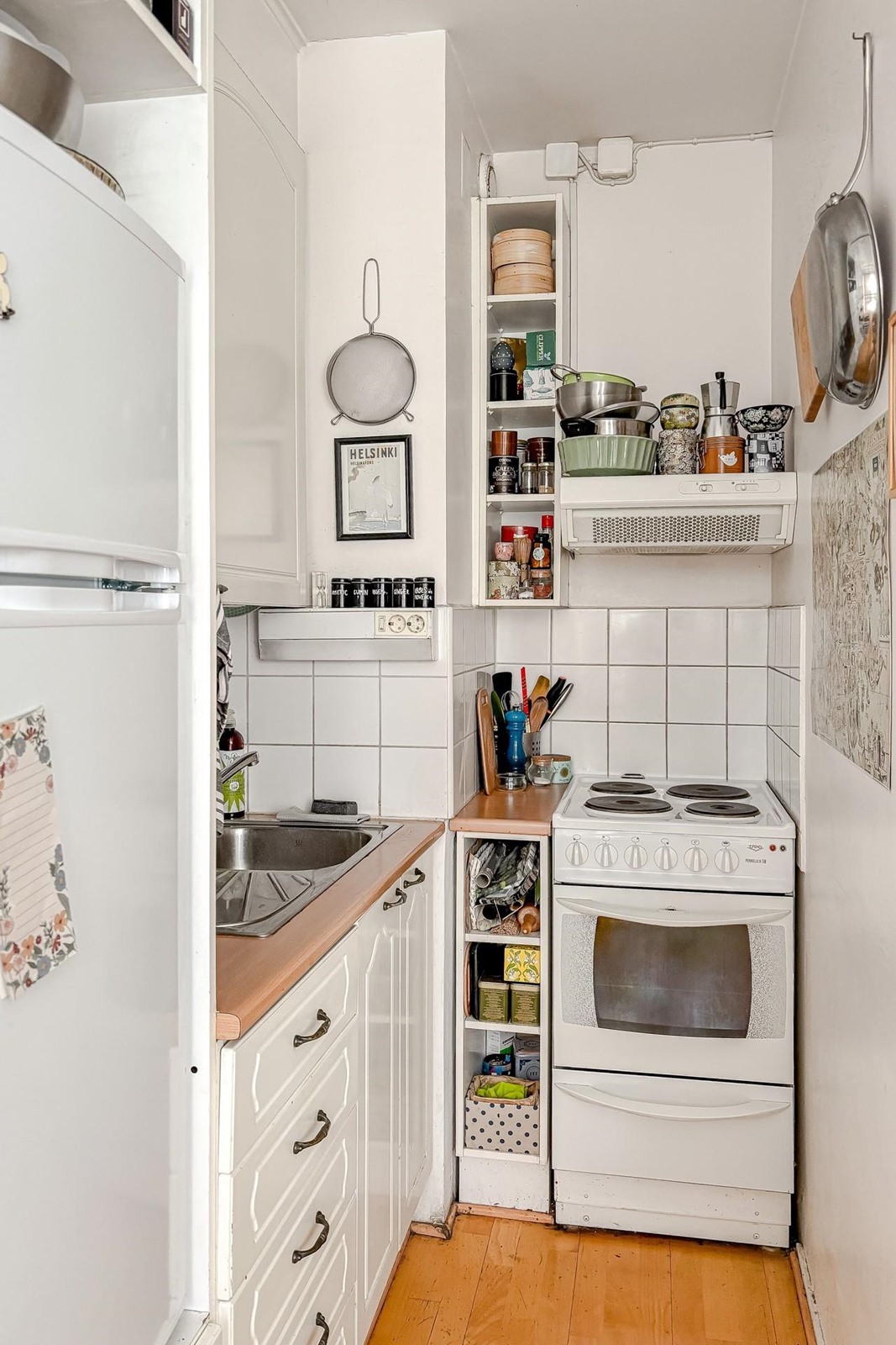- Jääkaappipakastin, sähköliesi, liesituuletin, kaapistot, kiinteät valaisimet.