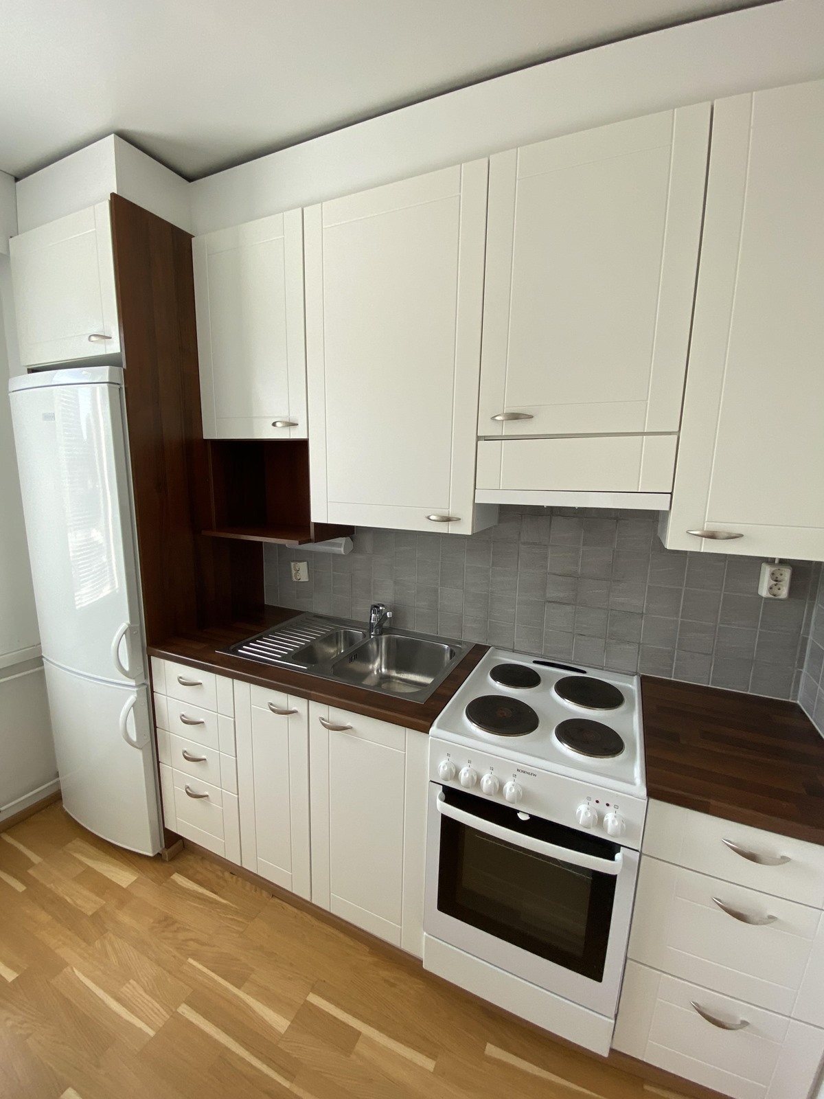 - Jääkaappipakastin, sähköliesi, liesituuletin, kaapistot.