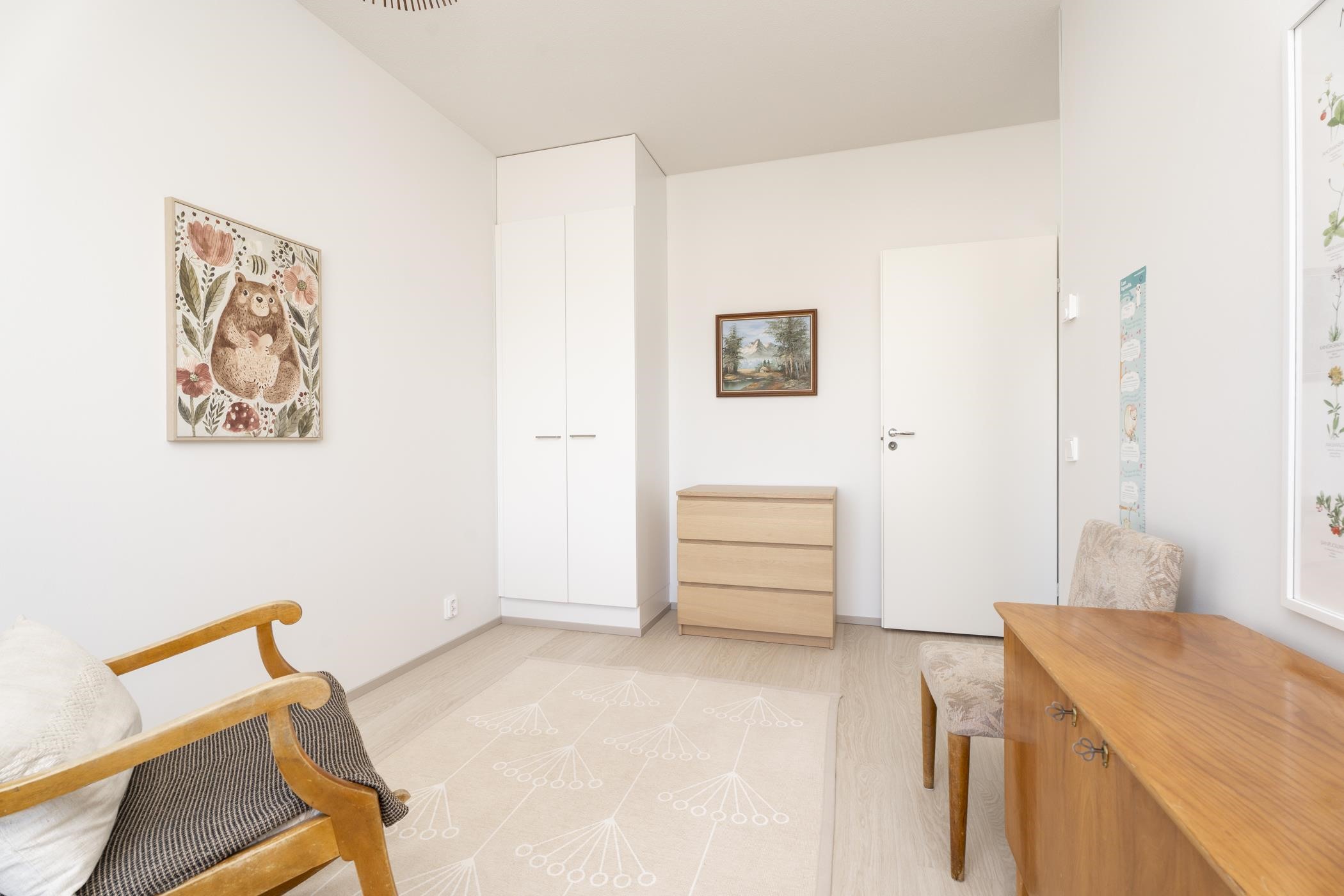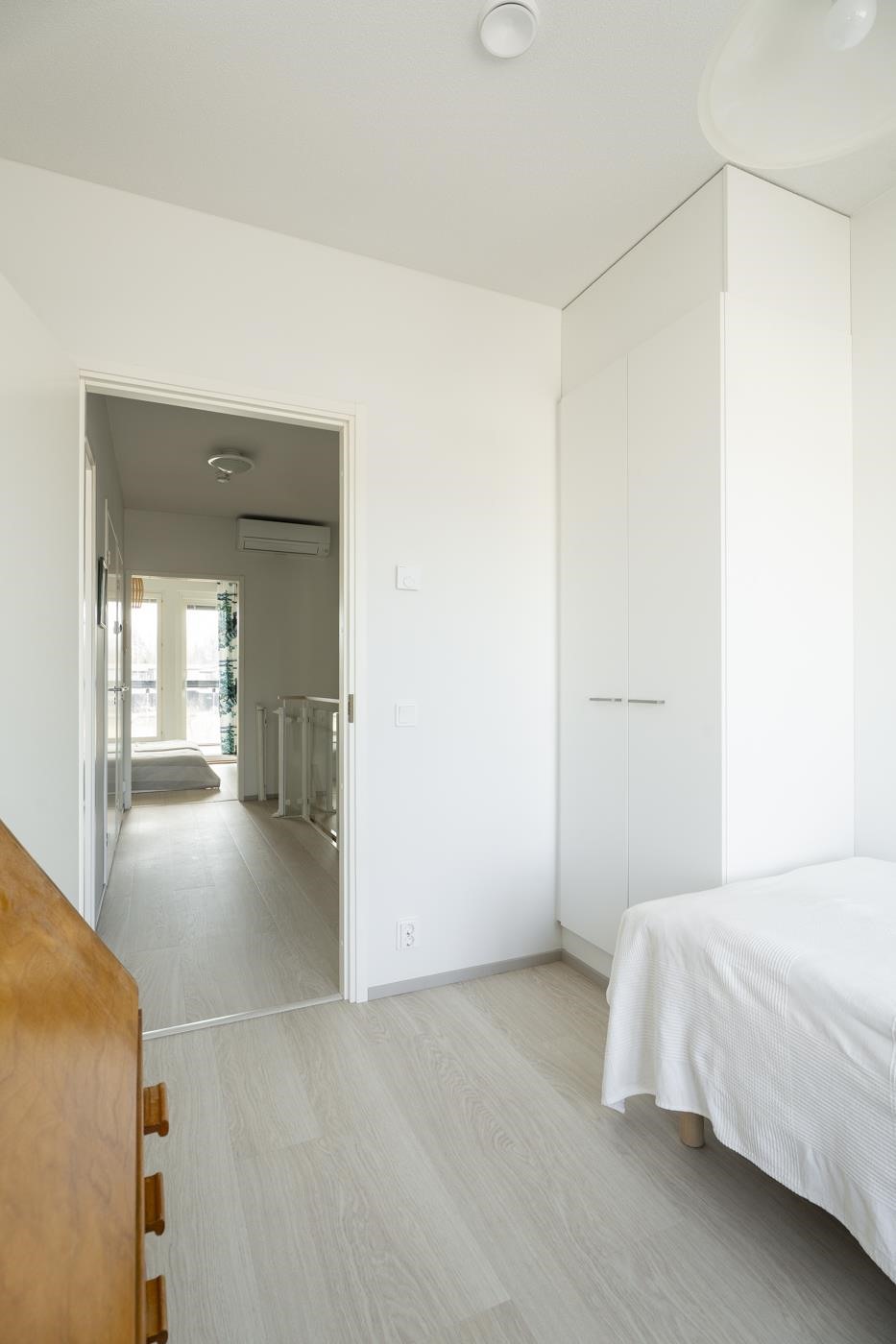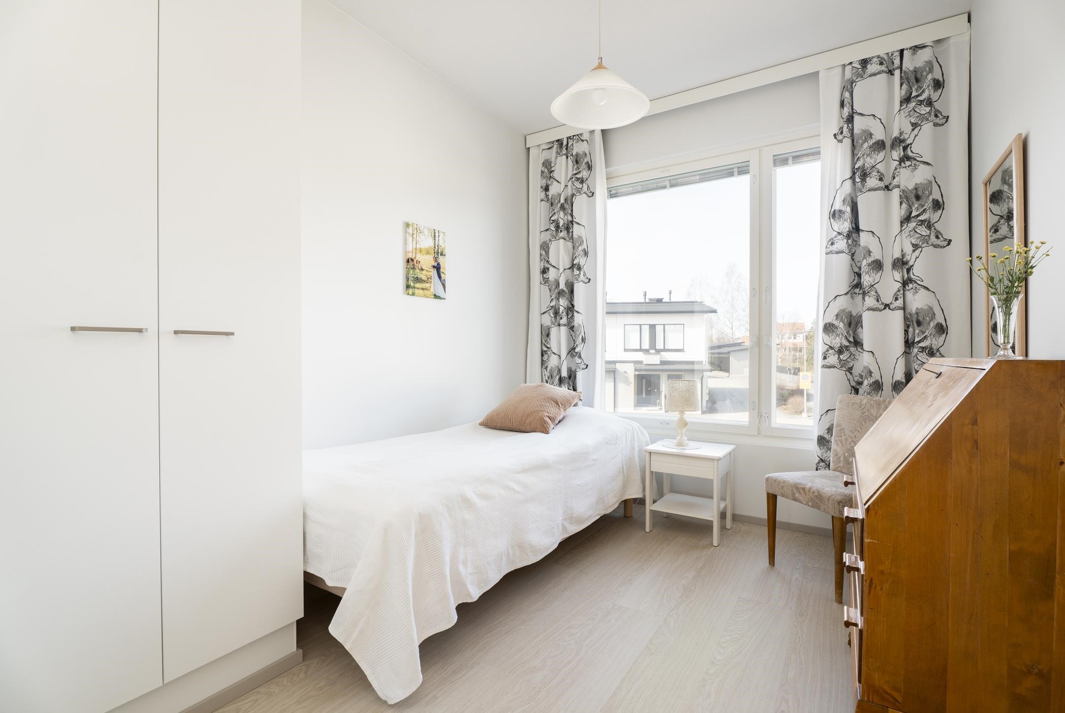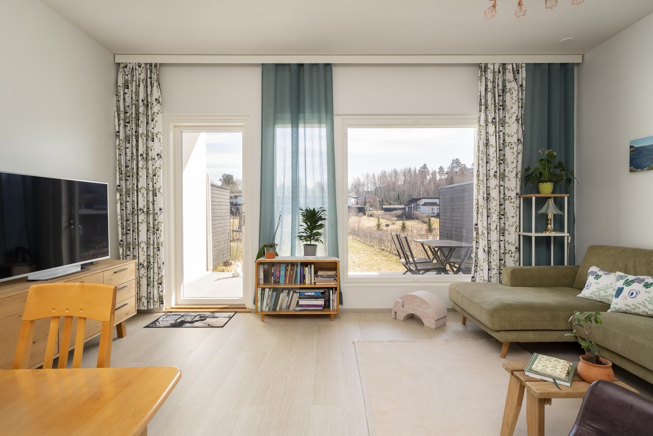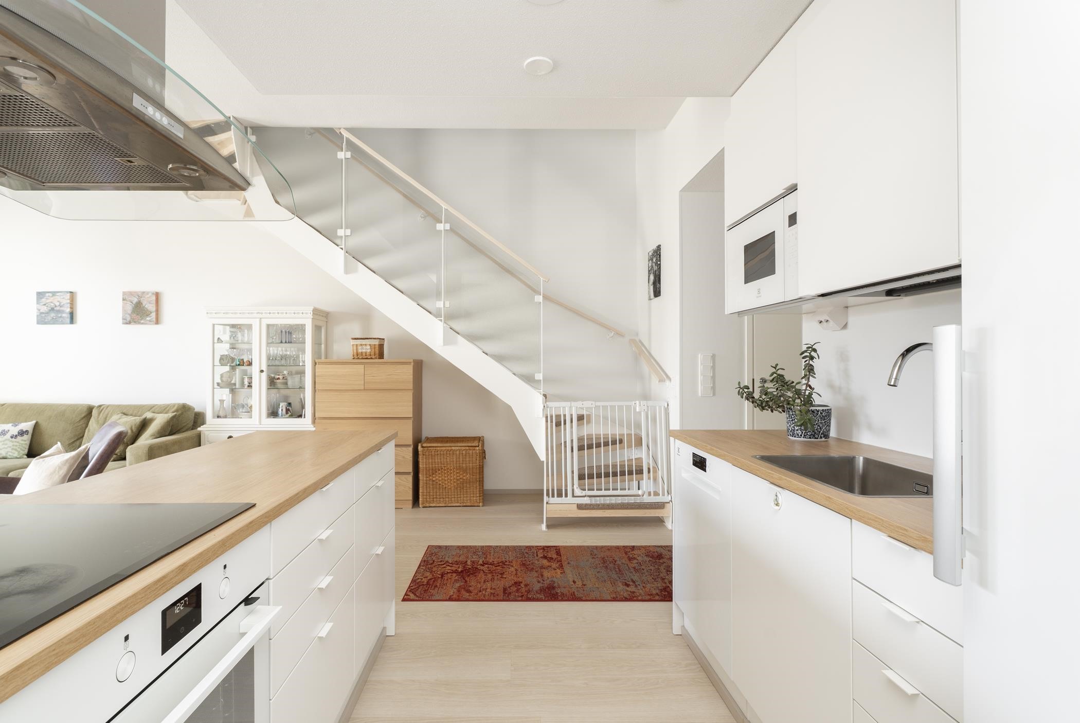 Kodin pohjaratkaisu on suunniteltu niin, että arki sujuu ja jokaiselle löytyy oma rauha. Sisääntulokerroksessa sinua odottaa avara olohuone/keittiö, jossa on helppo viihtyä ja viettää aikaa, makuuhuone joka on täydellinen myös työhuoneeksi ja erillinen wc. Ilmalämpöpumppu huolehtii kesäisin miellyttävästä viilennyksestä. Ja mikä parasta; olohuoneesta on käynti isolle takapihalle. Yläkerrassa on kolme makuuhuonetta, erillinen wc, kylpyhuone, sauna, sekä kodinhoitohuone, joka tekee pyykkihuollosta ja arjen askareista helppoa. Makuuhuoneesta on on käynti lasitetulle parvekkeelle, joka toimii lisähuoneena keväästä talveen. Säilytystilat, joista harvoin voi vain haaveilla, käytössäsi on ulkovarasto sisäänkäynnin vieressä, vaatehuone, reilusti kaapistoja, sekä oma lämmin varastohäkki väestönsuojassa. Kaikelle löytyy paikka, ja koti pysyy siistinä ilman jatkuvaa järjestelyä.
