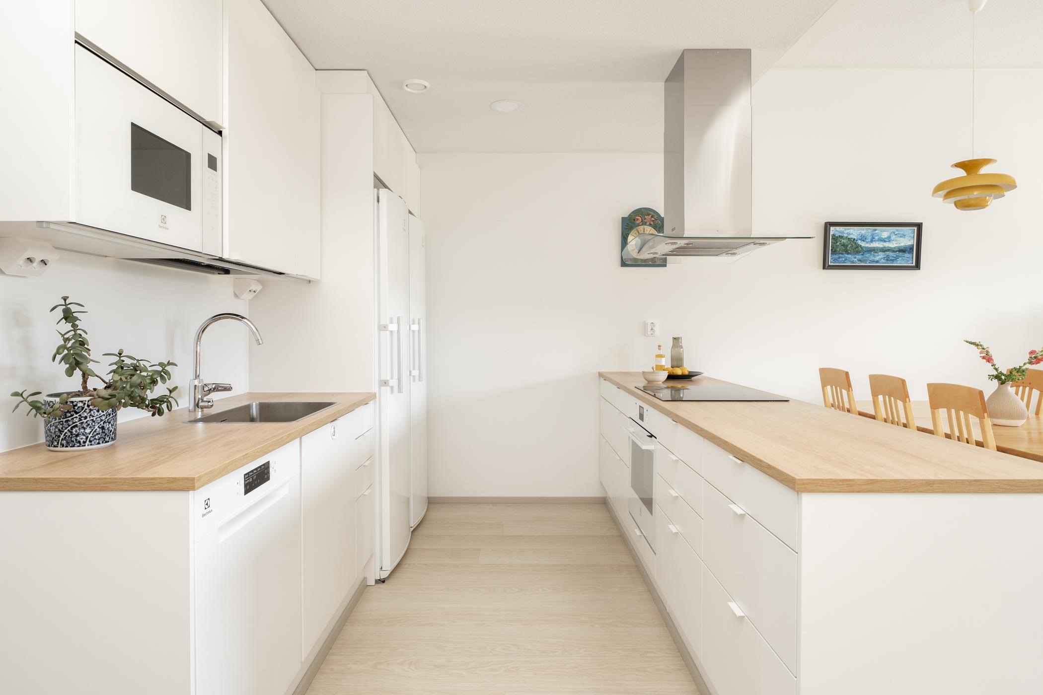 - Jääkaappi, kylmiö, erillisuuni kiertoilma, liesitaso induktio, liesituuletin hormiin, mikroaaltouuni integ., astianpesukone, kaapistot.