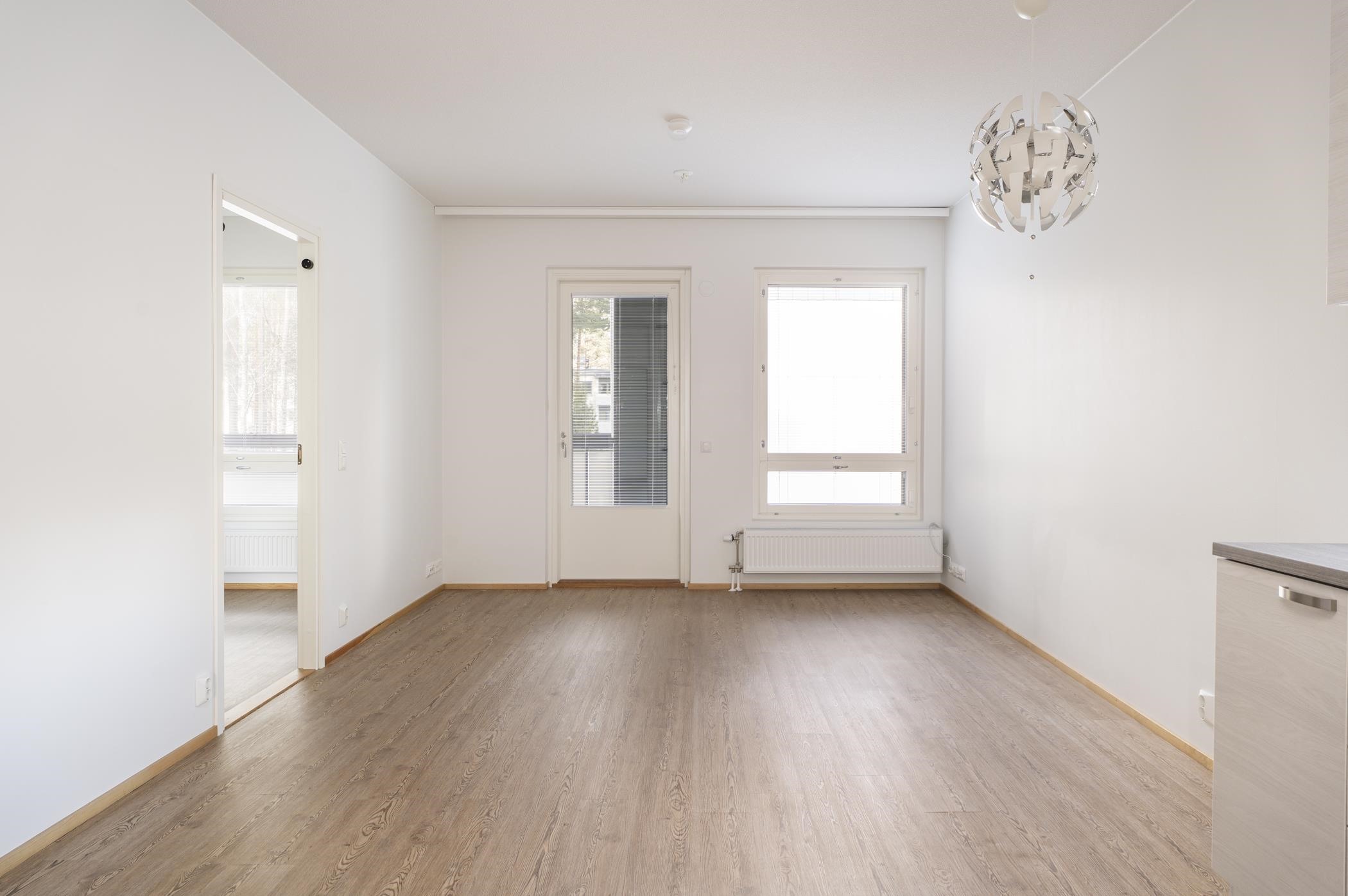 Keittiö: Lattiassa on laminaatti, seinät on maalattu. Olohuone: Lattiassa on laminaatti, seinät on maalattu. Makuuhuone 1: Lattiassa on laminaatti, seinät on maalattu. Kylpyhuone: Lattiassa ja seinissä on laatta.