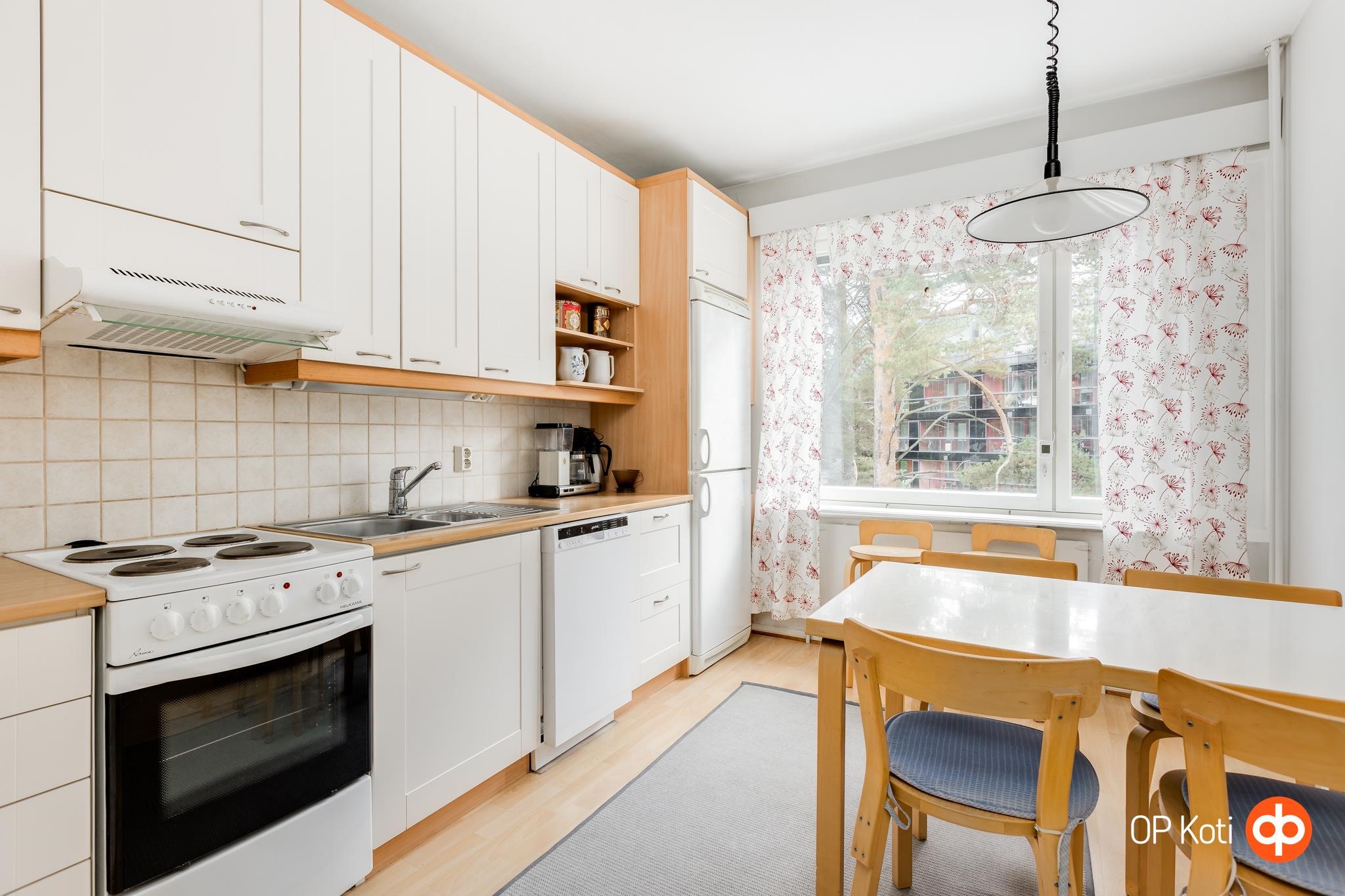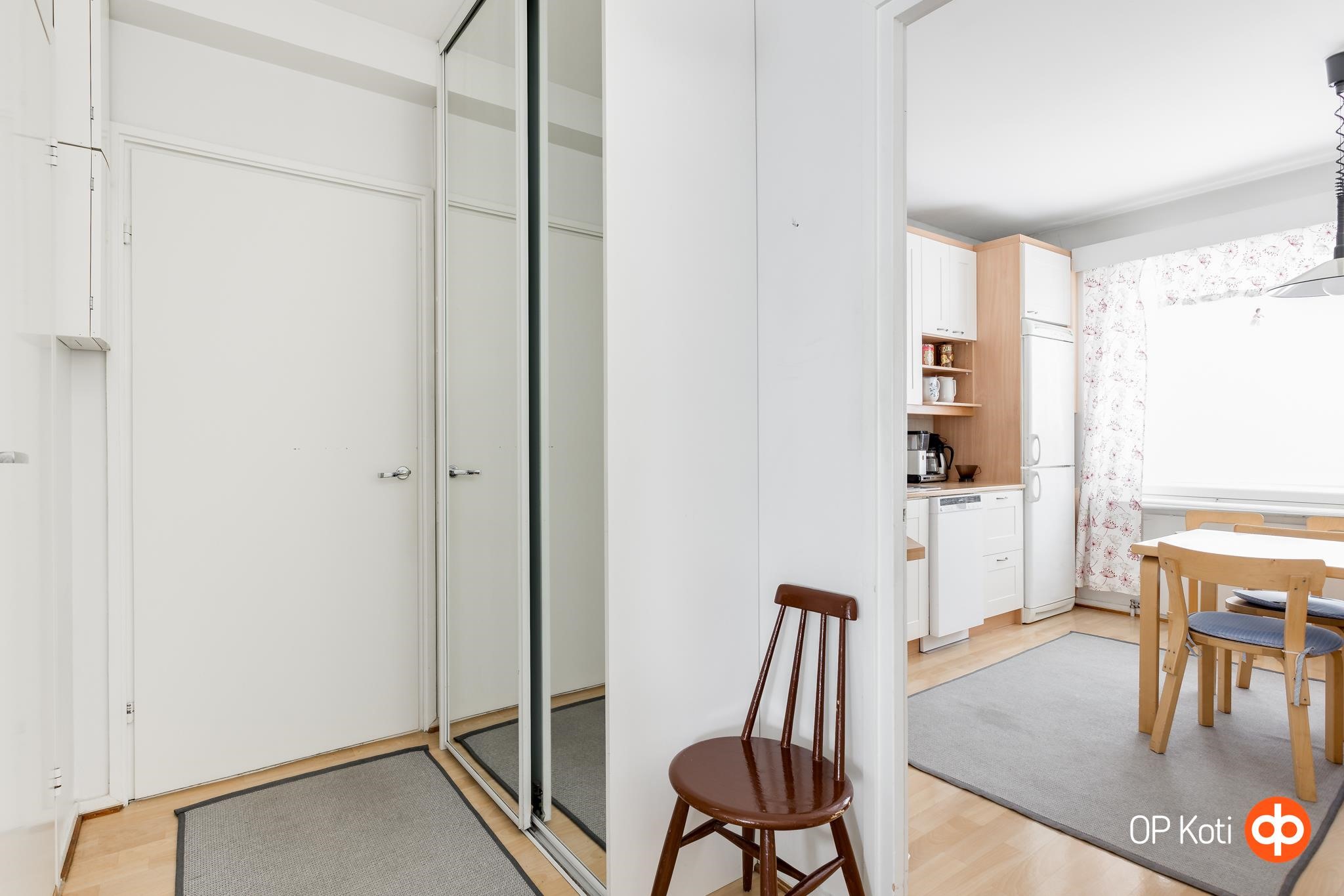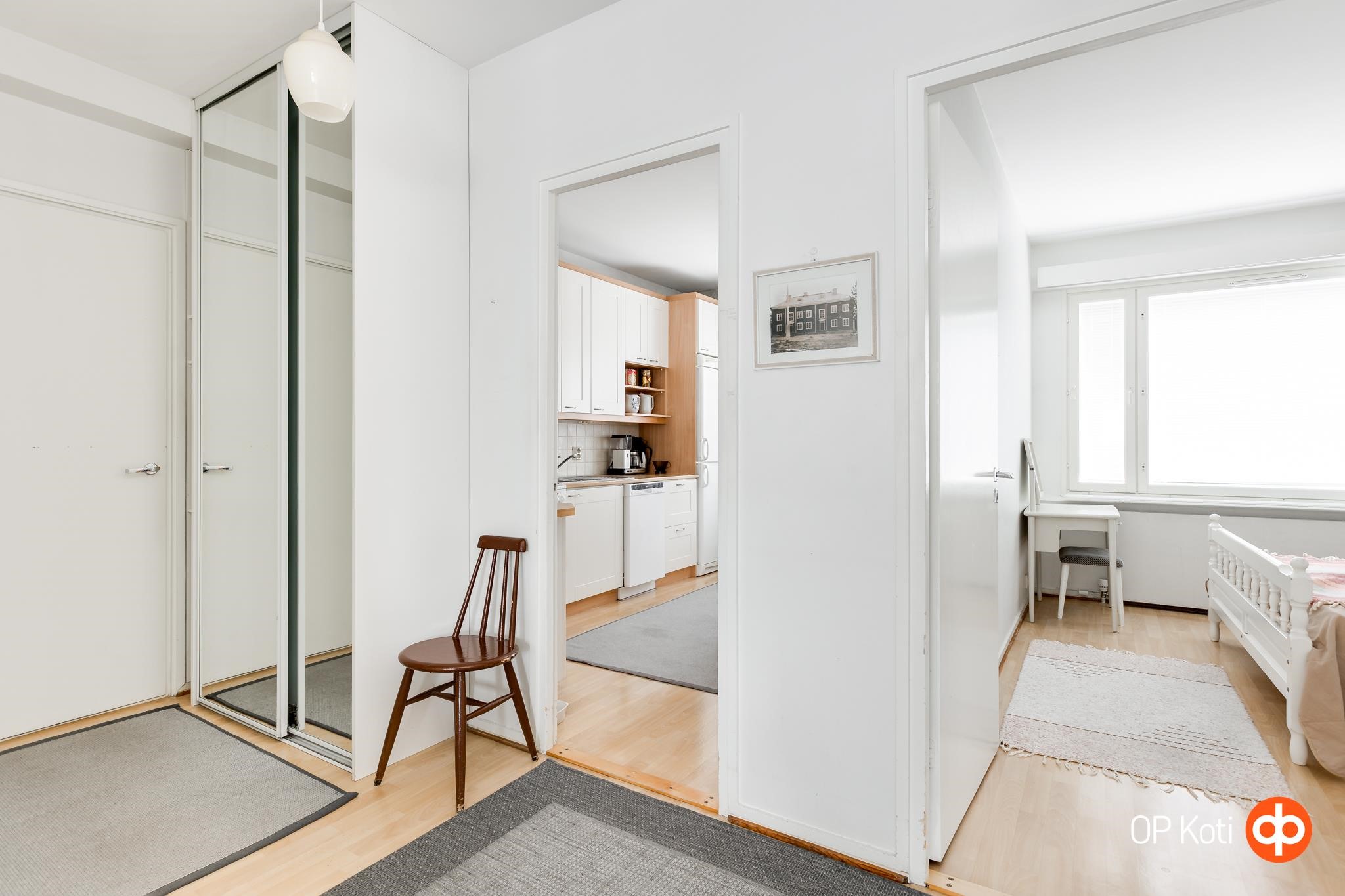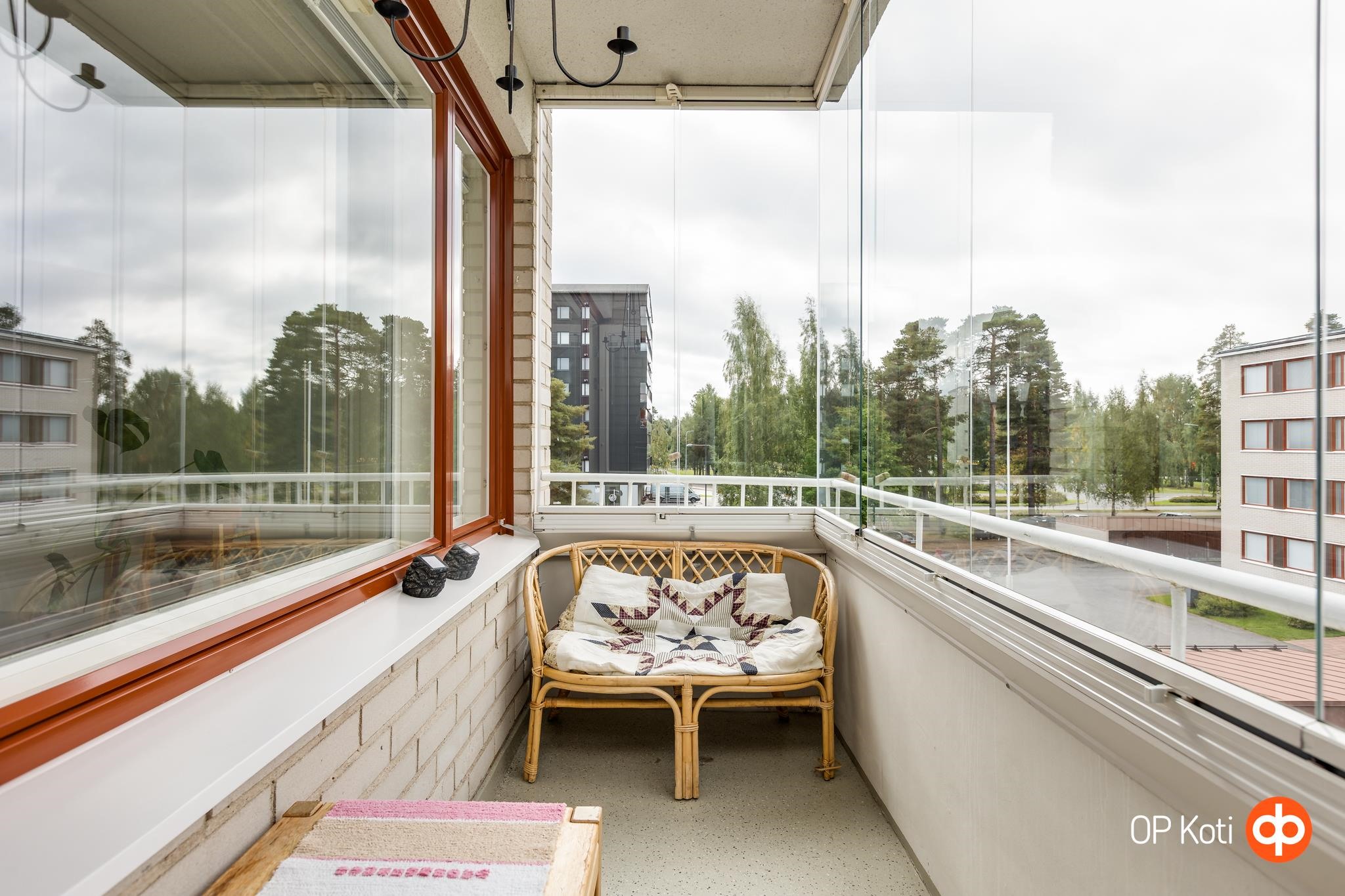 Koti sopii erinomaisesti niin yksinasuvalle kuin pariskunnalle. Selkeä pohjaratkaisu, tilava makuuhuone ja kätevä alkovi tarjoavat monipuoliset mahdollisuudet sisustukseen ja elämäntilanteisiin - alkovi muuntautuu vaivatta esimerkiksi työhuoneeksi. Keittiössä on kaikki tarpeellinen: astianpesukone, jääkaappipakastin, sähköliesi ja kauniit, hillityn sävyiset kaapistot. Olohuoneen suuret ikkunat tuovat valoa koko asuntoon, ja lasitetulla parvekkeella voi nauttia ilta-auringosta pitkälle syksyyn.
