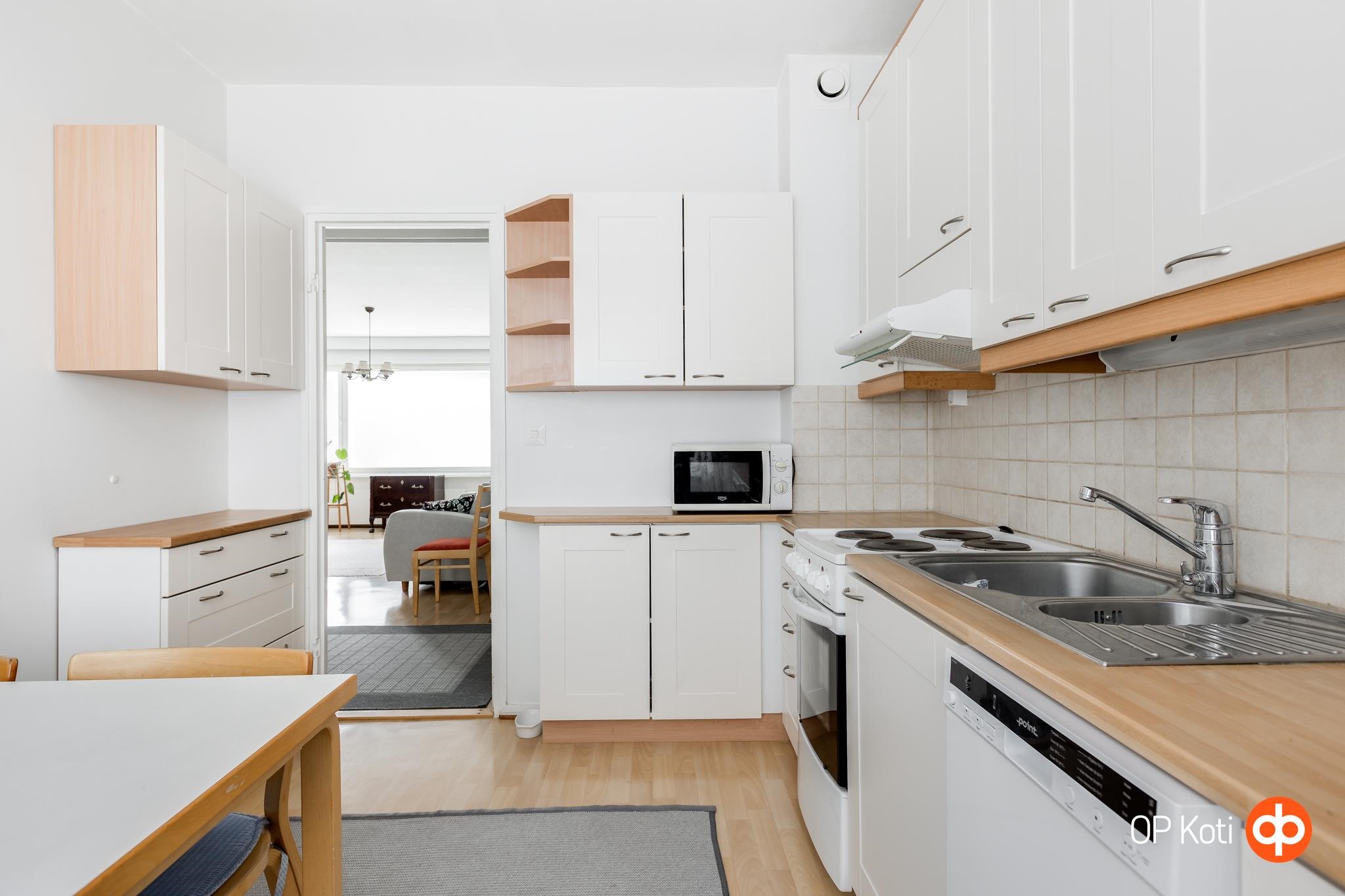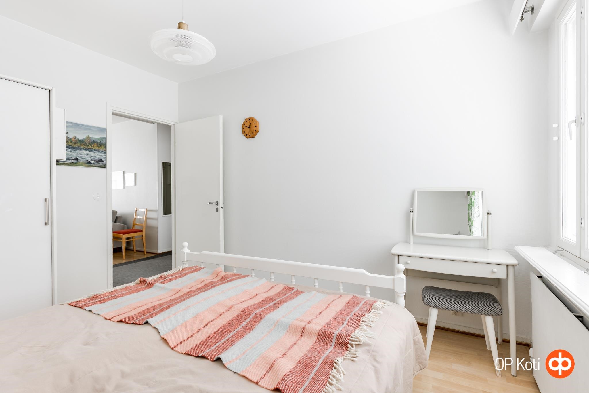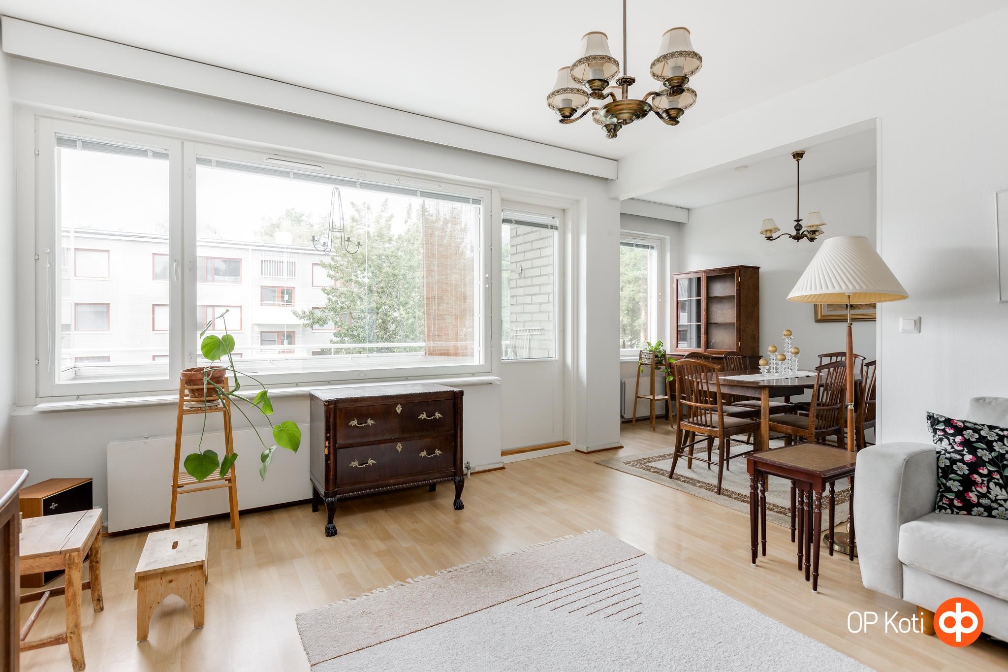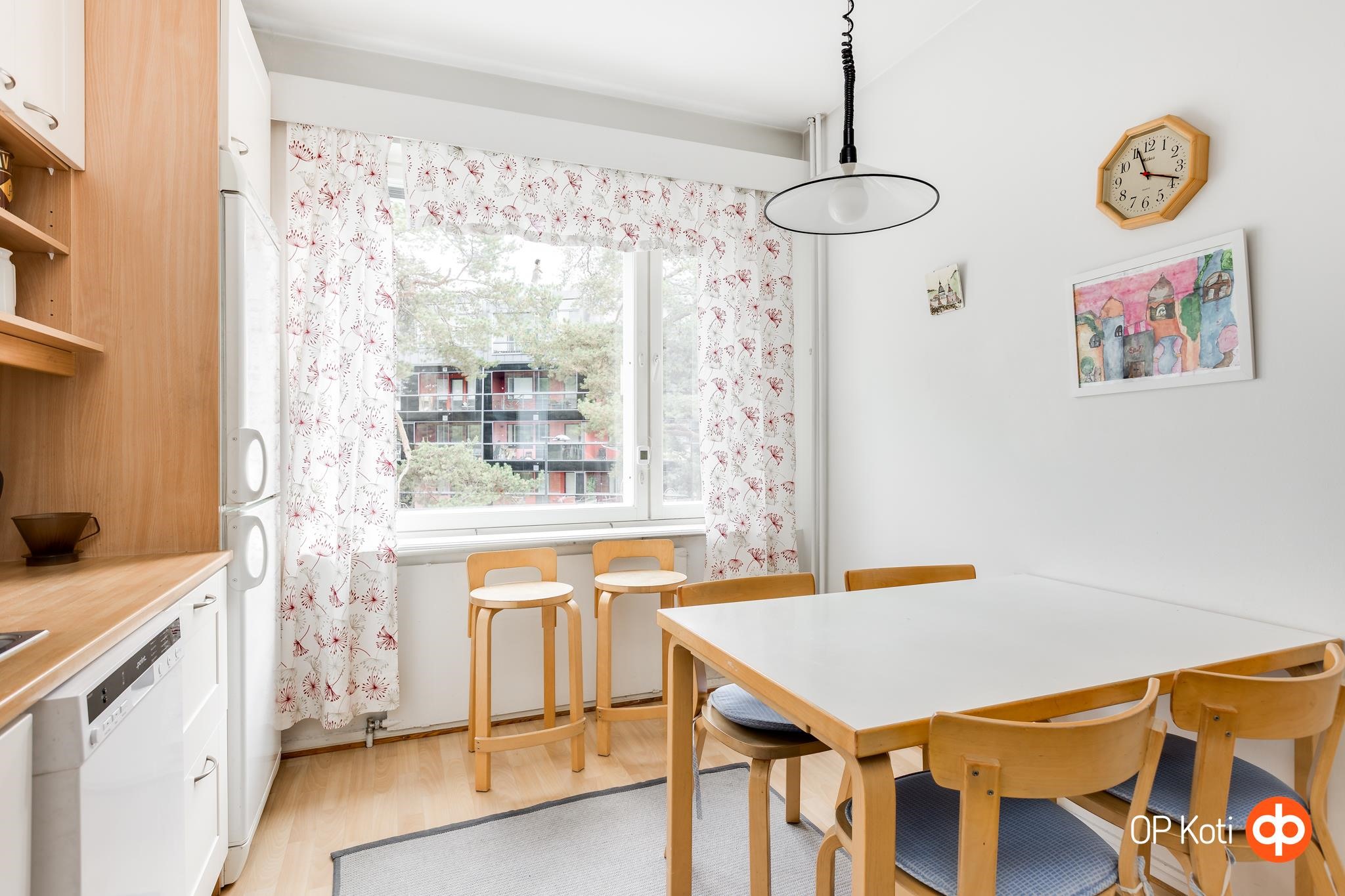 Koti sopii erinomaisesti niin yksinasuvalle kuin pariskunnalle. Selkeä pohjaratkaisu, tilava makuuhuone ja kätevä alkovi tarjoavat monipuoliset mahdollisuudet sisustukseen ja elämäntilanteisiin - alkovi muuntautuu vaivatta esimerkiksi työhuoneeksi. Keittiössä on kaikki tarpeellinen: astianpesukone, jääkaappipakastin, sähköliesi ja kauniit, hillityn sävyiset kaapistot. Olohuoneen suuret ikkunat tuovat valoa koko asuntoon, ja lasitetulla parvekkeella voi nauttia ilta-auringosta pitkälle syksyyn.