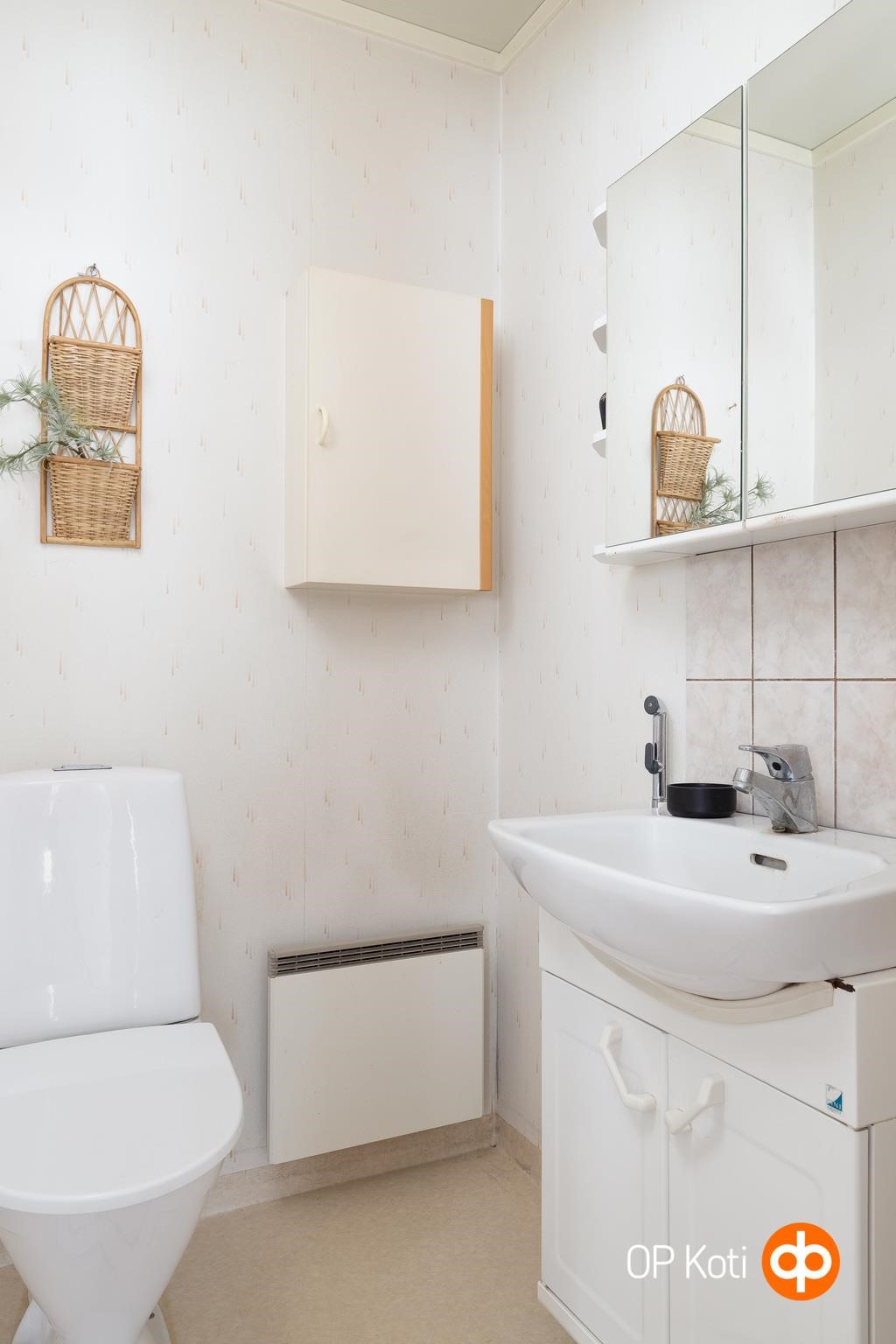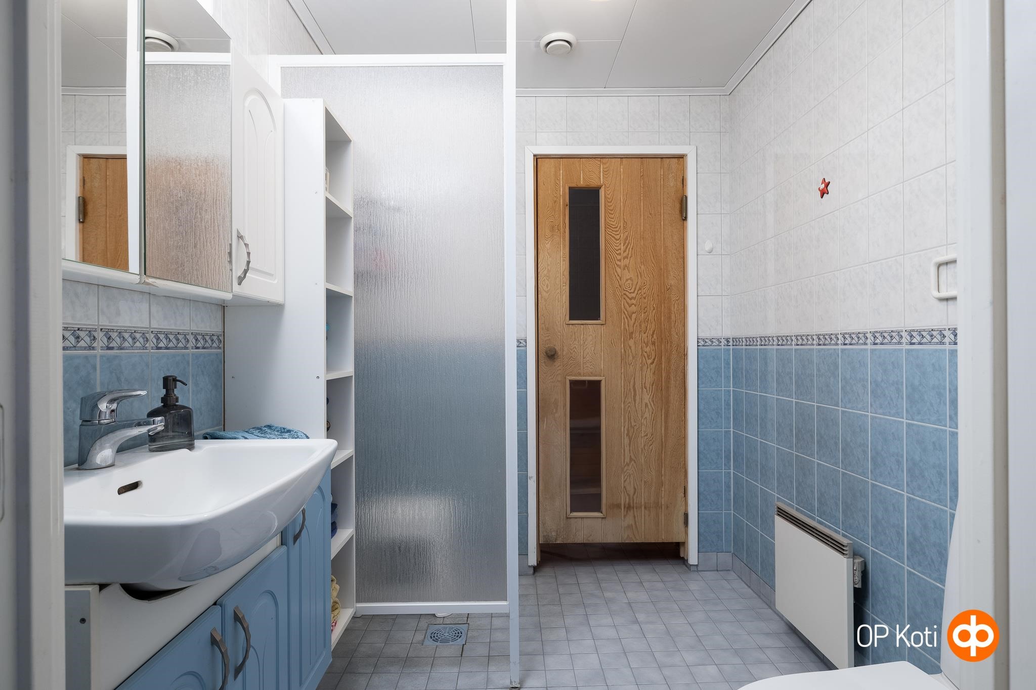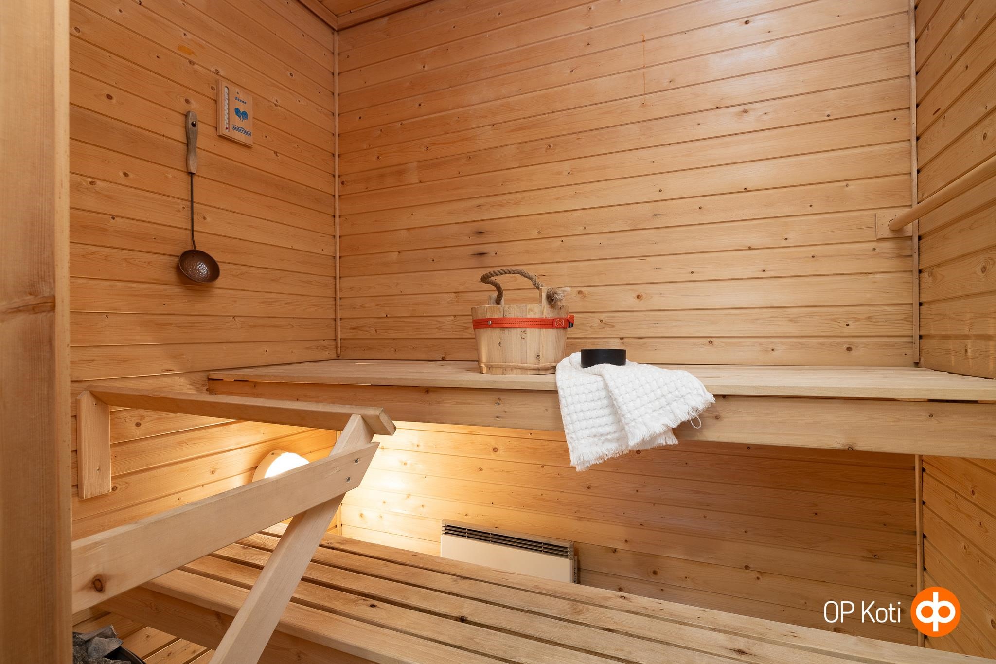 - Sauna, sähkökiuas, erillinen wc, suihku, suihkuseinä, peilikaappi 2 kpl, erillinen wc- ja kylpyhuone, kaapit Kodinhoitohuoneessa, allaskaappi, pesukoneliitäntä, kiinteät valaisimet.