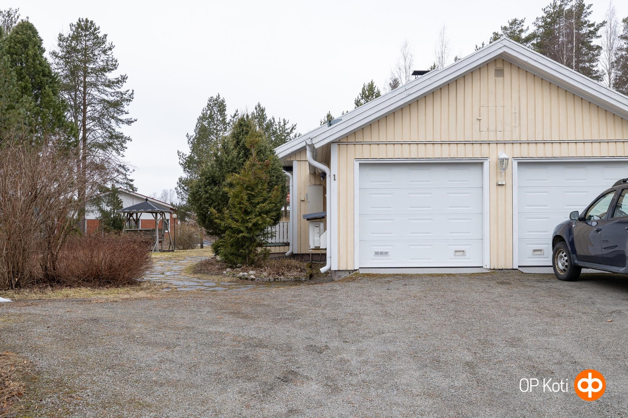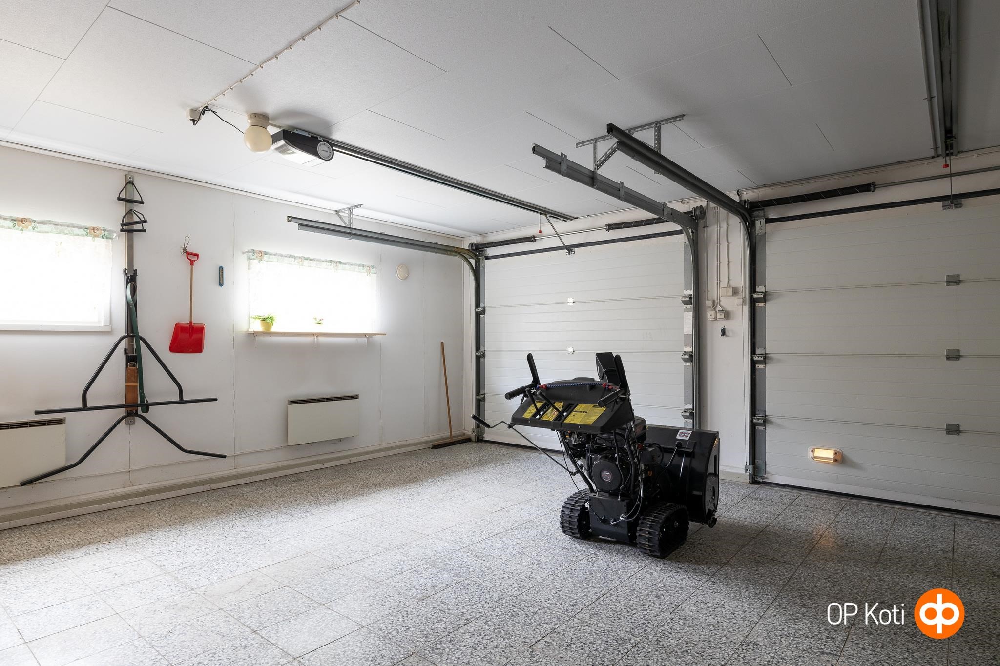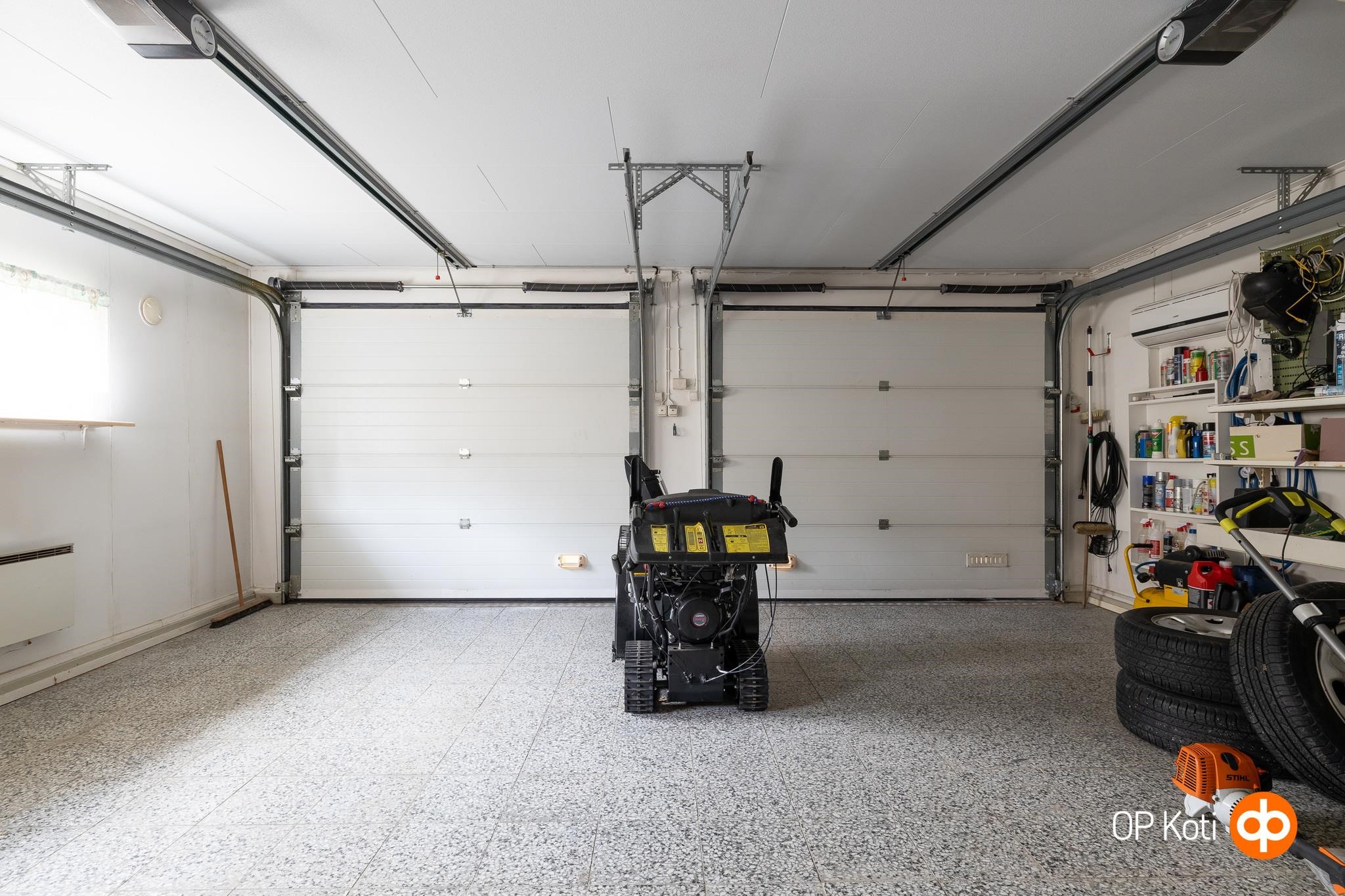 Asumismukavuutta lisää talon yhteydessä oleva reilun kokoinen, 37,8 m²:n autotalli, jossa on kaksi sähkötoimista nosto-ovea.