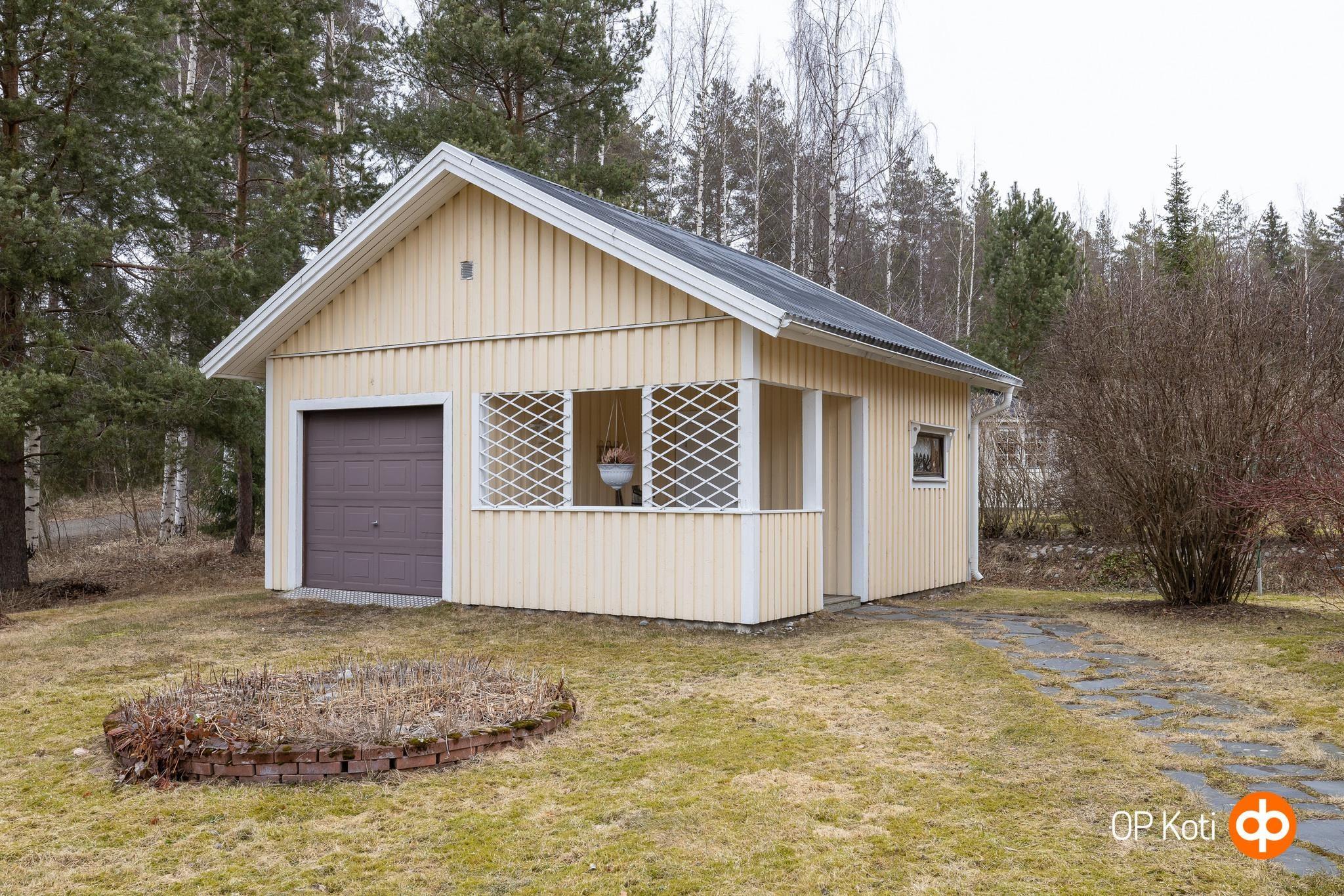Lisäksi pihapiirissä on erillinen talousrakennus, joka soveltuu erinomaisesti esimerkiksi polttopuiden säilytykseen, varastoksi tai puutarhatyökalujen säilytykseen.