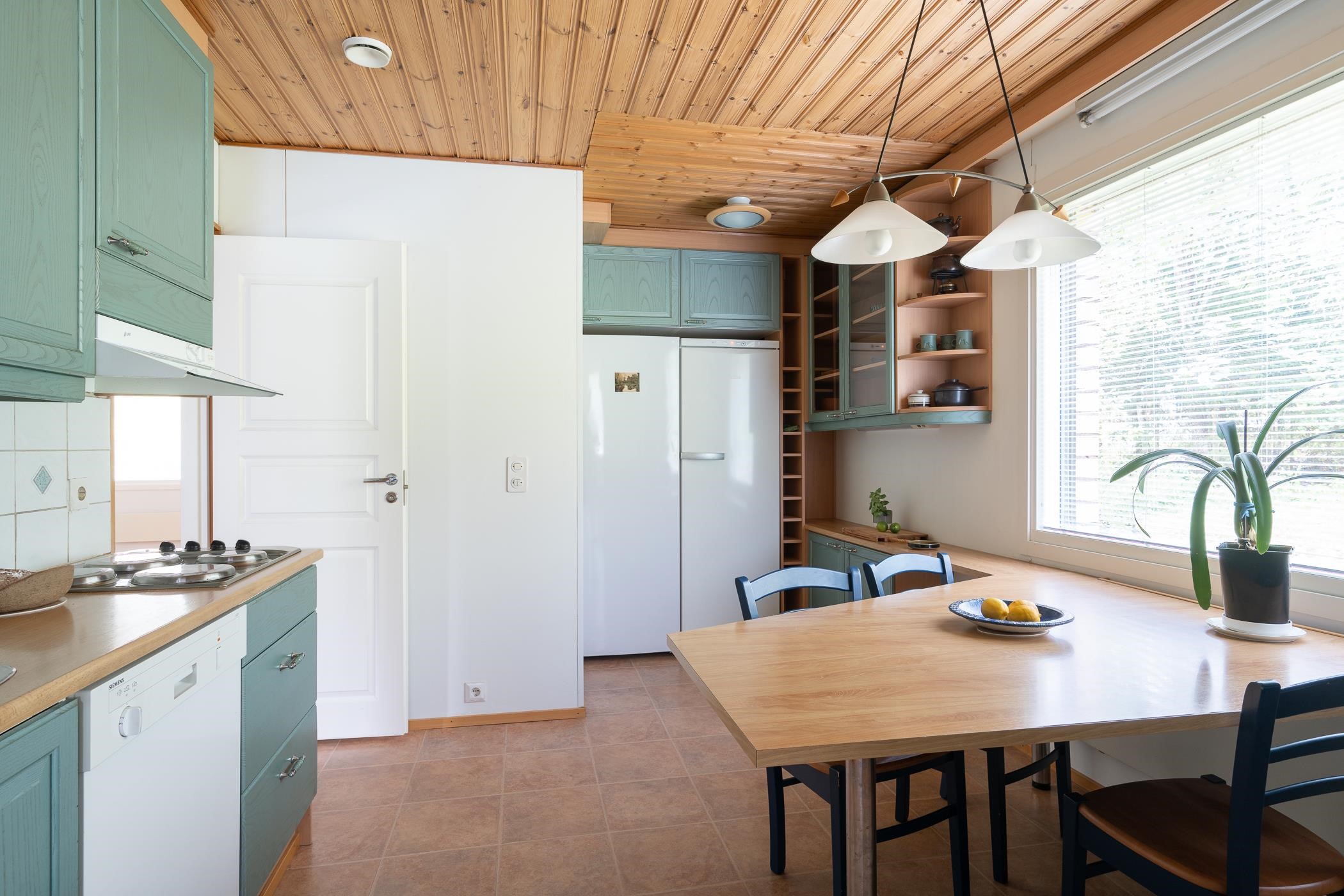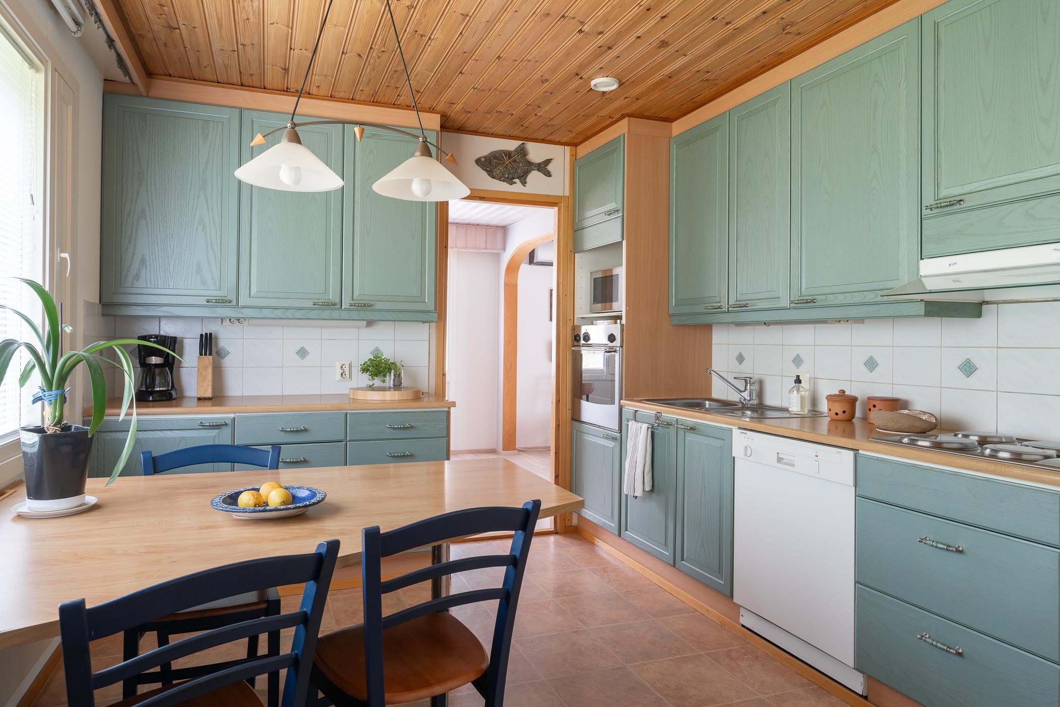 - Jääkaappi, pakastekaappi, erillisuuni, liesitaso, liesituuletin (hormiin), astianpesukone, kaapistot, kiinteät valaisimet. Keittiöremontti 1996.