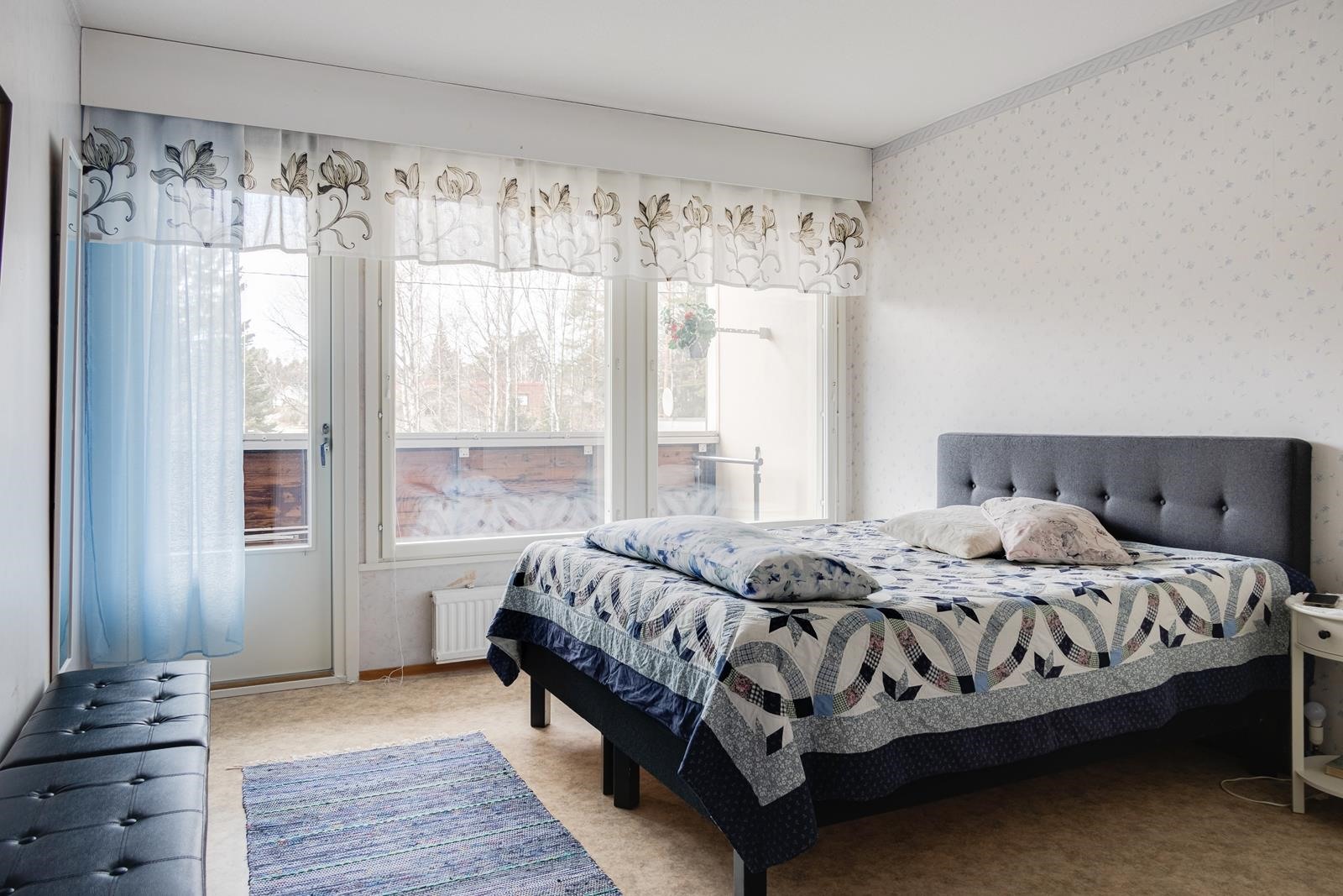 - Kaksi pitkää parveketta, toinen olohuoneesta, toinen makuuhuoneesta.