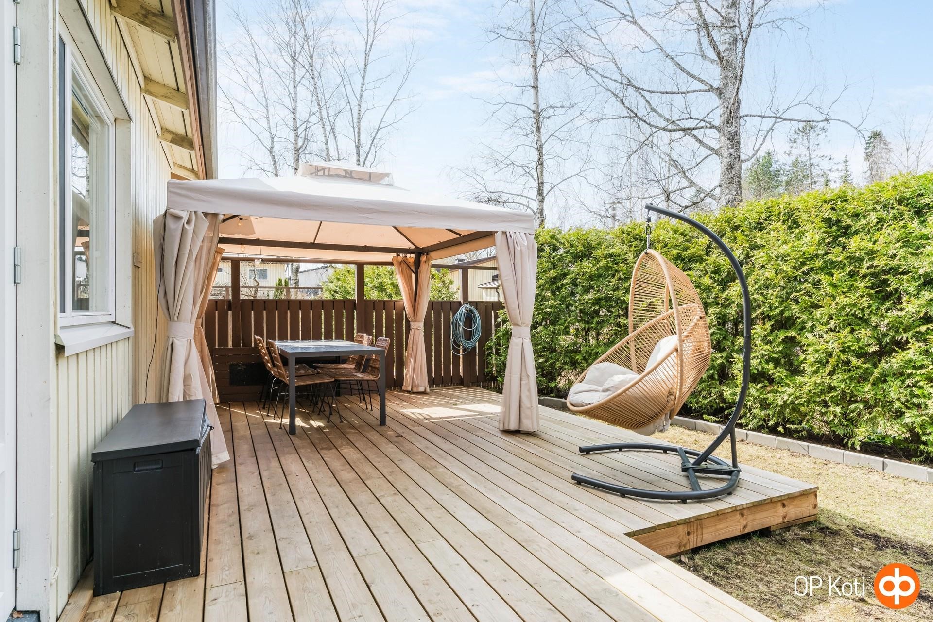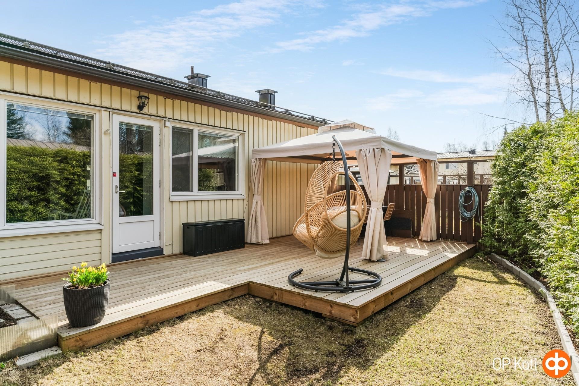 Tervetuloa arvostetulle pientaloalueelle Puistolaan. Tässä rivitalokodissa on todella hyvä pohjaratkaisu, valoisat huoneet ja todella viihtyisä terassipiha kesästä omalla pihalla nautiskeluun. Yksitasoinen koti sijaitsee rivitalon päädyssä, mikä takaa yksityisyyttä niin asumiseen kuin pihalla oleskeluun. Asunnon olohuone ja keittiö muodostavat yhtenäisen kokonaisuuden, jossa on mukava viettää aikaa yhdessä. Olohuoneesta kulku terassipihalle. Mikäs sen ihanempaa kuin päästä omasta saunasta vilvoittelemaan ja grillaamaan suojaisalle takapihalle, jossa on viihtyisä terassi - täydellinen paikka nauttia kesästä pitkälle syksyyn. Kaksi reilun kokoista makuuhuonetta, joissa molemmissa kaappitilaa, samoin kuin eteisessä. Kaikki liukuovikaapit uusittu vuonna 2022. Kaunis kylpyhuone ja keittiö ovat remontoitu vuonna 2015. Yhtiössä osakkaiden käytössä ulkovarastot, autopaikat, talopesula ja taloyhtiönetti 25M/25M. Autopaikat tullaan sähköistämään yhtiössä lähivuosina 2026-2027.
