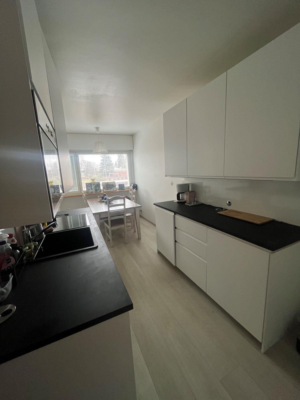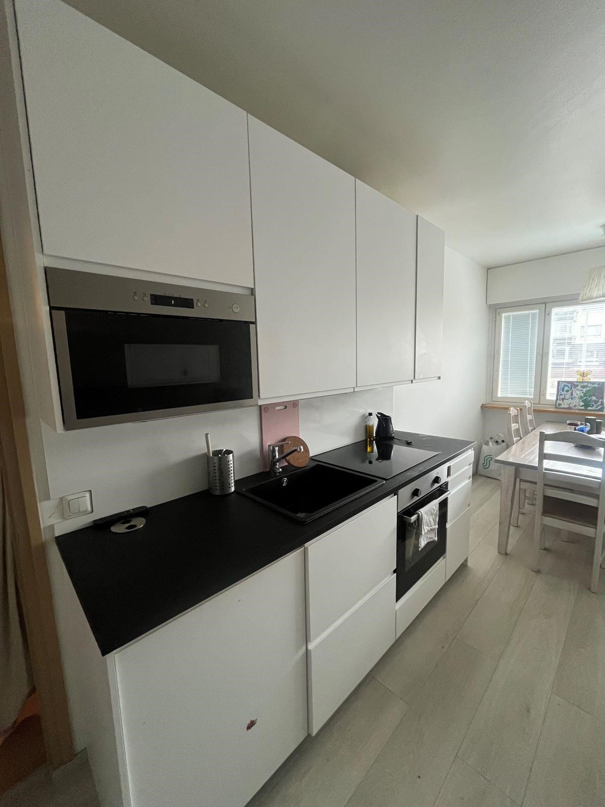 - Jääkaappi, keraaminen liesi, astianpesukone, kaapistot, kiinteät valaisimet. Keittiö on remontoitu 2021.
