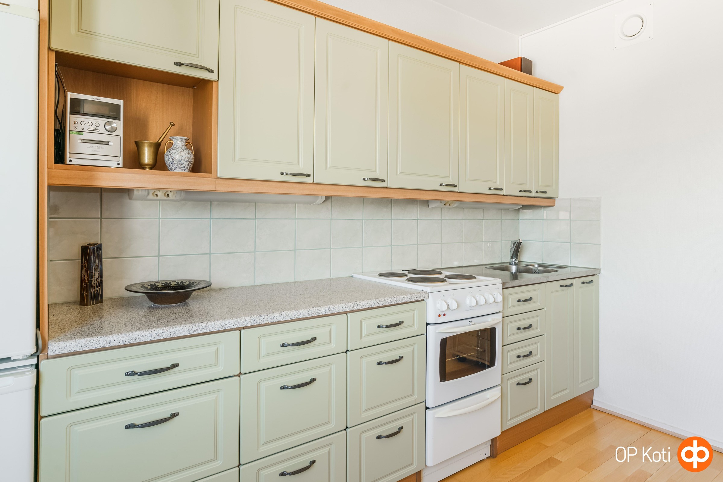 - Jääkaappi, pakastekaappi, sähköliesi, kaapistot, kiinteät valaisimet. apk liitäntä löytyy