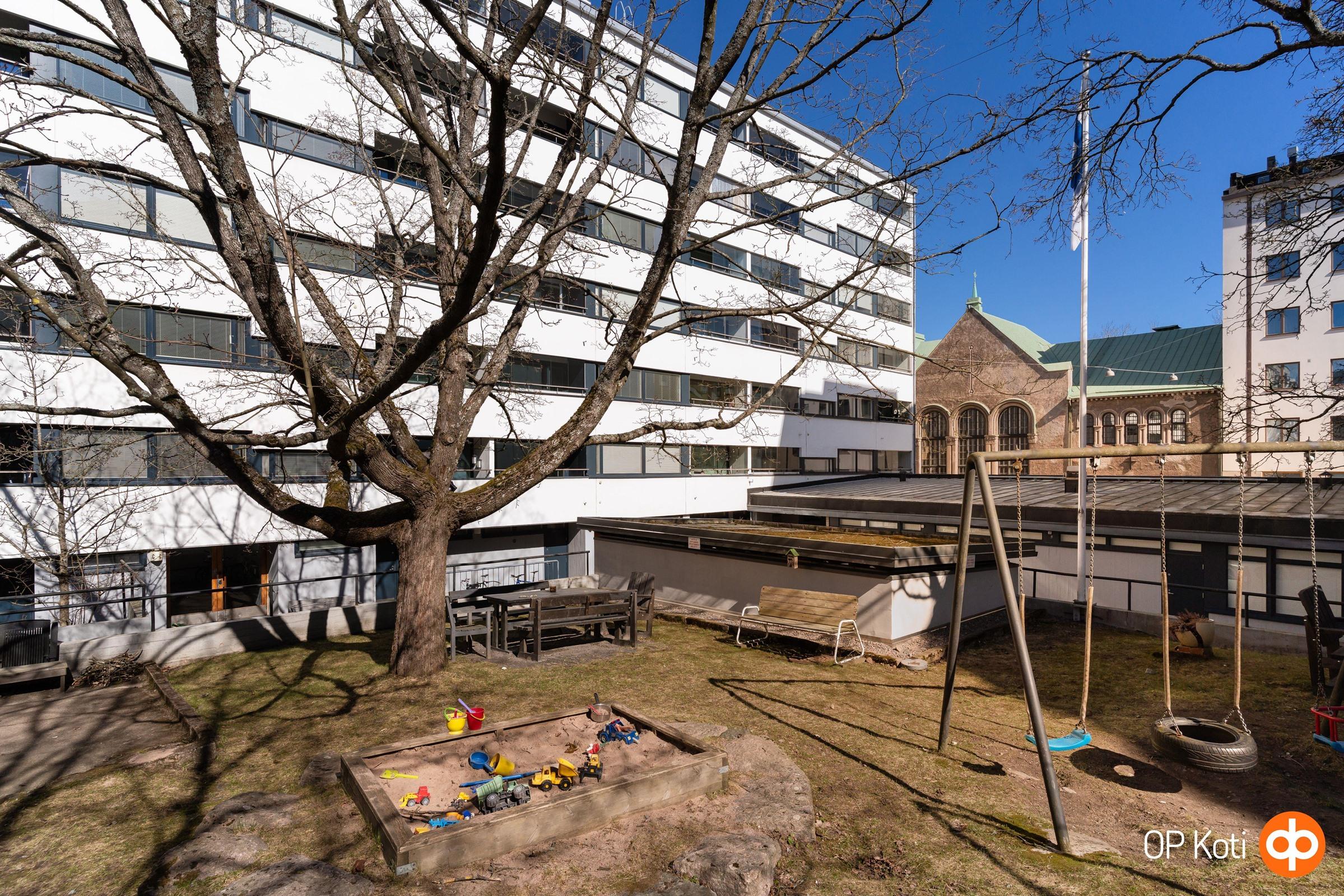 Palvelut: Alepa 100 m, Ympyrätalossa S-Market n. 500 m, Alppilassa K-Market n. 900 m, Helsingin urheilutalo ja uimahalli n.200 m, useita teattereita lähistöllä, Kallion kirjasto n. 400 m. Koulut: ala- ja yläkoulut n. 500 m. Päiväkoti: lähellä useita päiväkoteja 100-500 m. Liikenneyhteydet: bussi- ja raitiovaunulinjapysäkit n. 200 m, metro n. 500 m