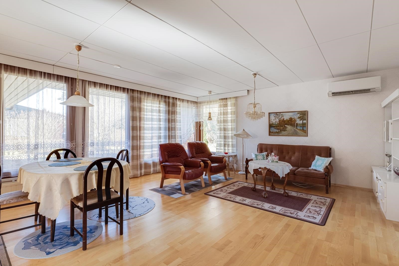 Tarjolla vankkarakenteinen ja laadukkaasti rakennettu tiilitalo (tiilirunko), jossa erinomainen pohjaratkaisu ja toimivat, tilavat huoneet. Tässä kodissa on viihdytty pitkään, se myydään alkuperäisomistajilta ja sitä on pidetty vuosien varrella hyvin huolta. Tilavassa keittiössä runsaasti kaappitilaa sekä aamiaispöytä. Valoisa olohuone hurmaa lähes koko seinän levyisellä ikkunarivistöllä, joka tuo runsaasti luonnonvaloa sisään. Makuuhuoneita on kolme ja ne tarjoavat mukavasti tilaa lapsiperheelle tai työ / harrastehuoneiksi. Siisti ja toimiva saunaosasto kutsuu oman saunan löylyihin. Lämmin autotalli sekä varasto tuo käytännöllisyyttä arkeen. Rauhallinen sijainti lisää asumismukavuutta. Tässä talossa viihdyt. Päiväkoti, koulu, jalkapallokenttä sekä kuntopolku lähettyvillä.