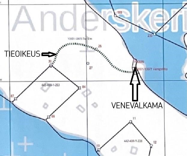 - Veneranta ja tukeva laituri Hyviluodon pohjoispuolella, Venerannan käyttöön liittyvä kirjattu oikeus samoin kuin saaren ylittävään kulkutiehen.