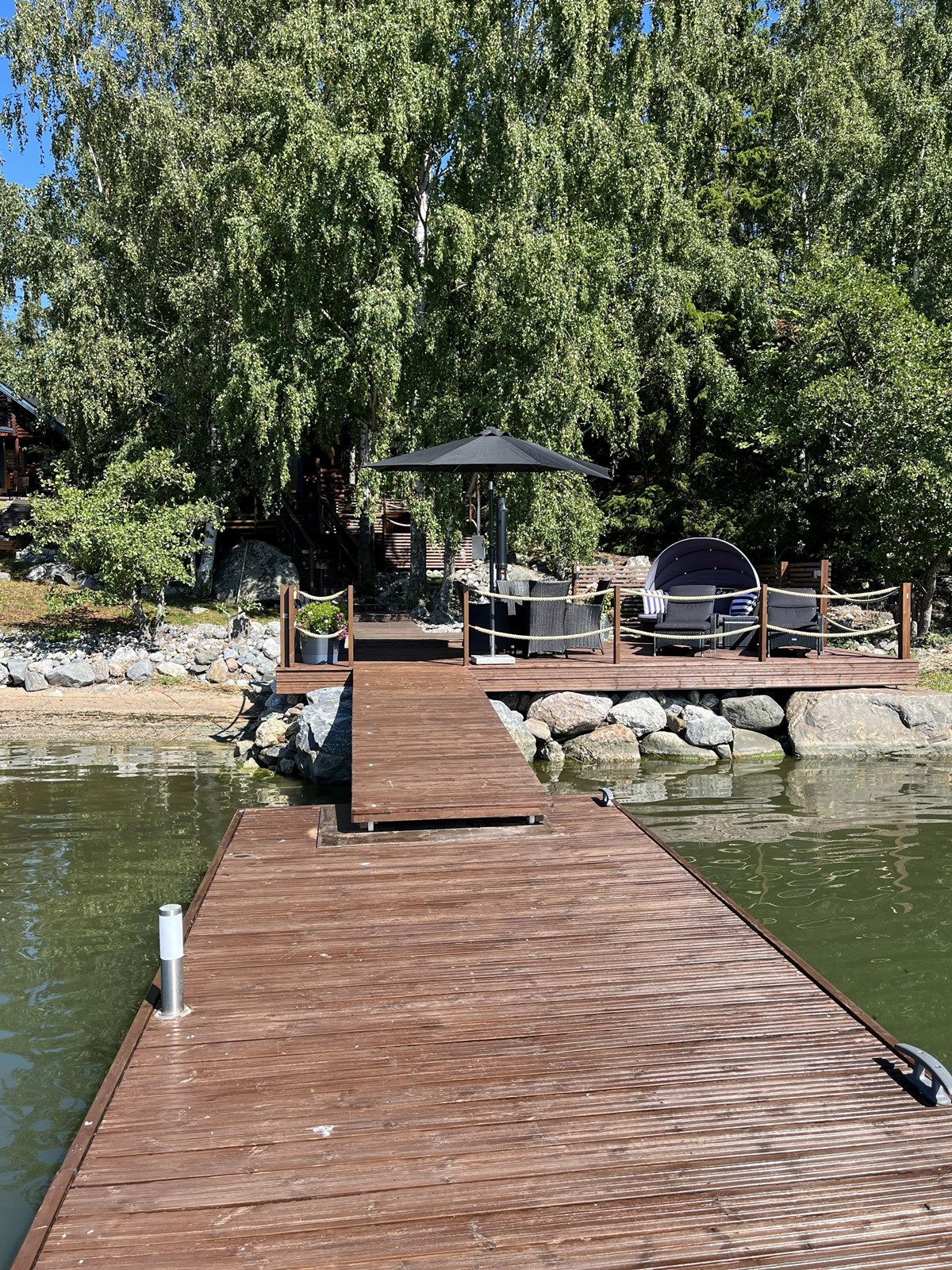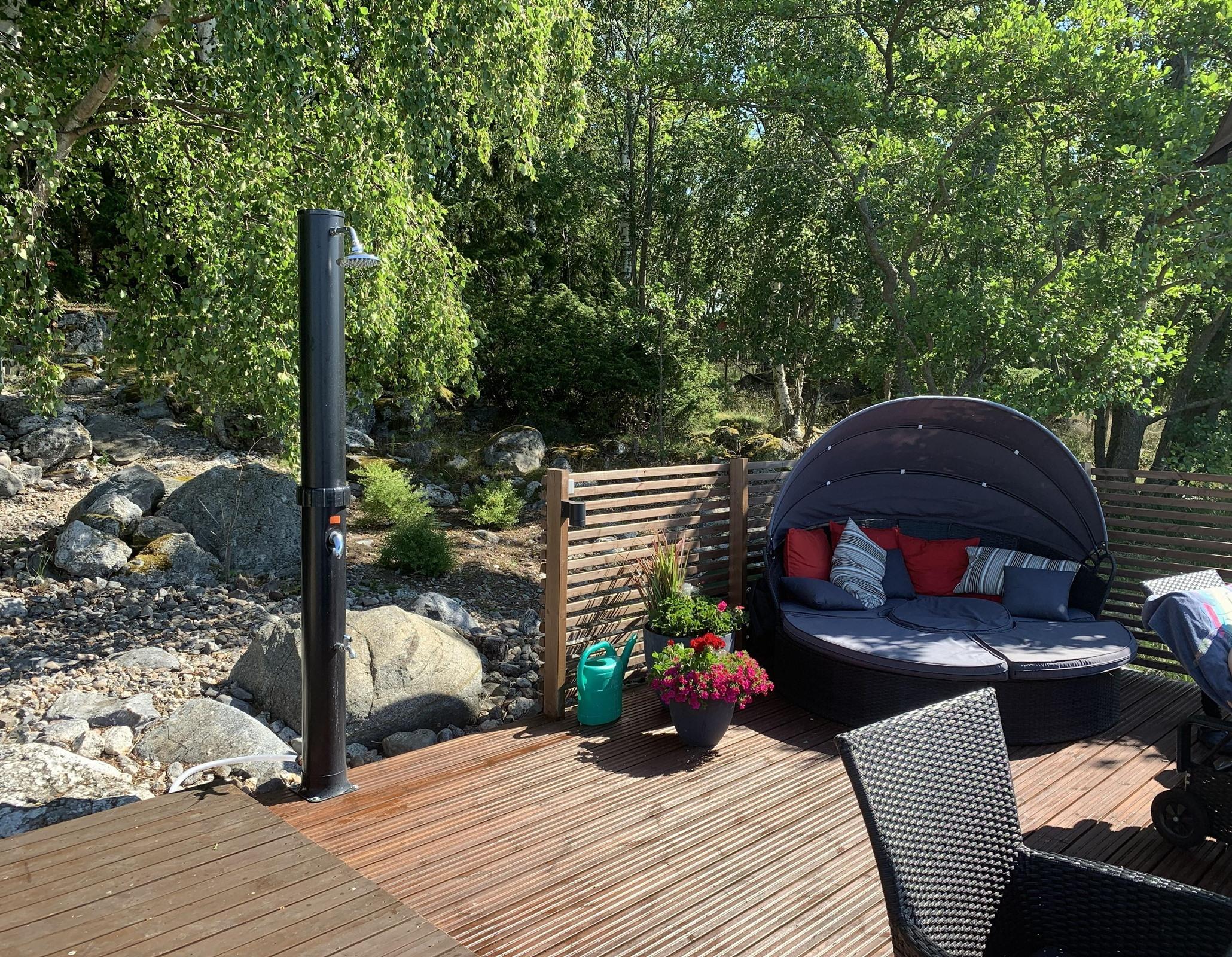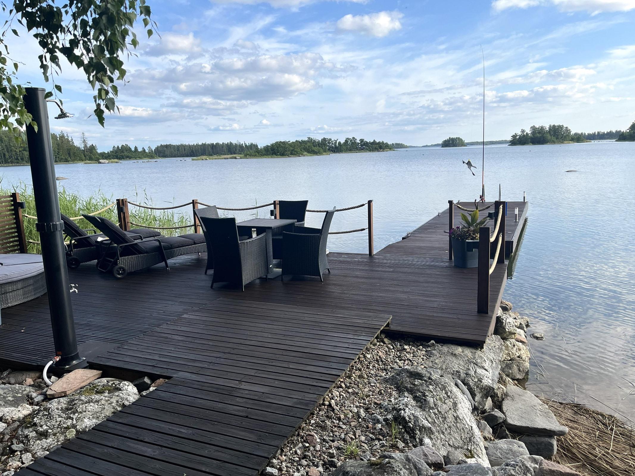 - Sauna, puukiuas, erillinen wc päämökissä Separet sisä-wc, uusittu v.2024, suihku saunarakennuksessa sekä terassilla, kaapit, pesukoneliitäntä, kiinteät valaisimet.