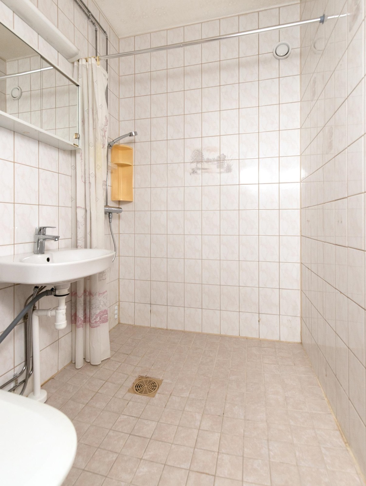 - Kylpyhuone, suihku, peilikaappi, pesukoneliitäntä, kiinteät valaisimet.