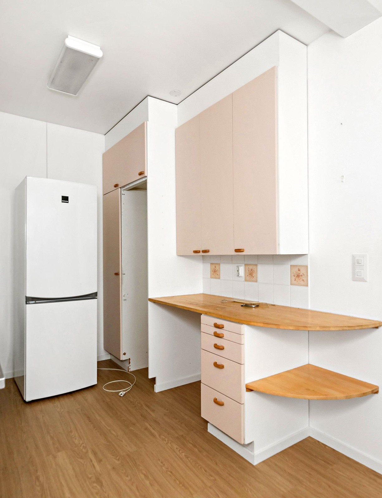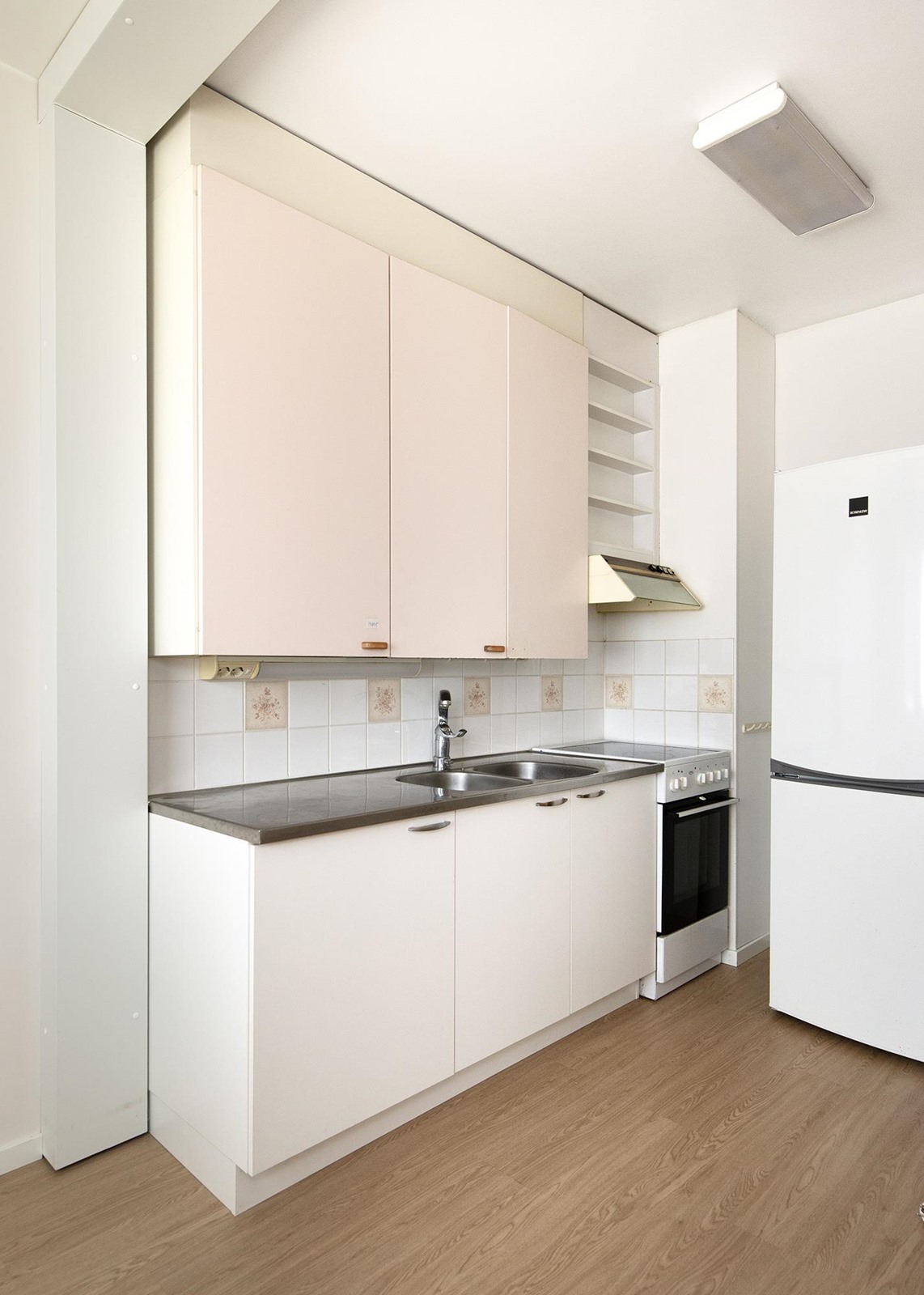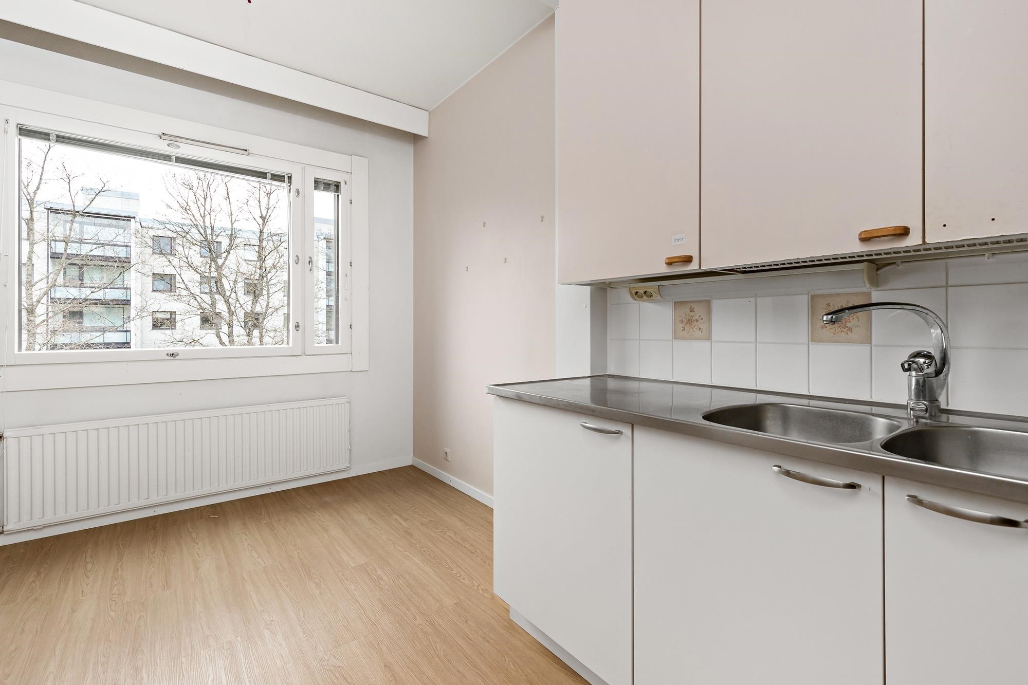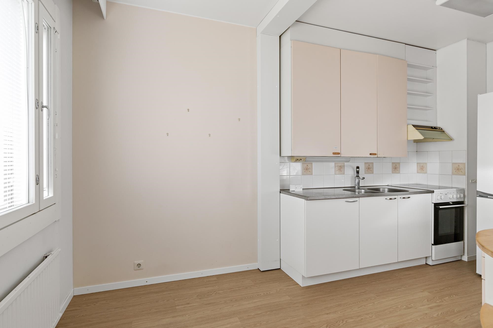 - Jääkaappipakastin, keraaminen liesi, liesituuletin, kaapistot, kiinteät valaisimet. Kodinkoneiden oletetaan toimivan, mutta varmuutta ei ole.