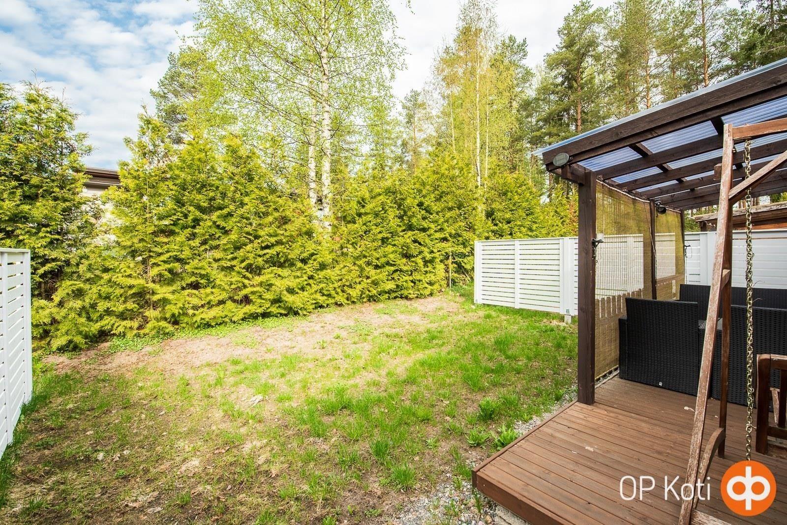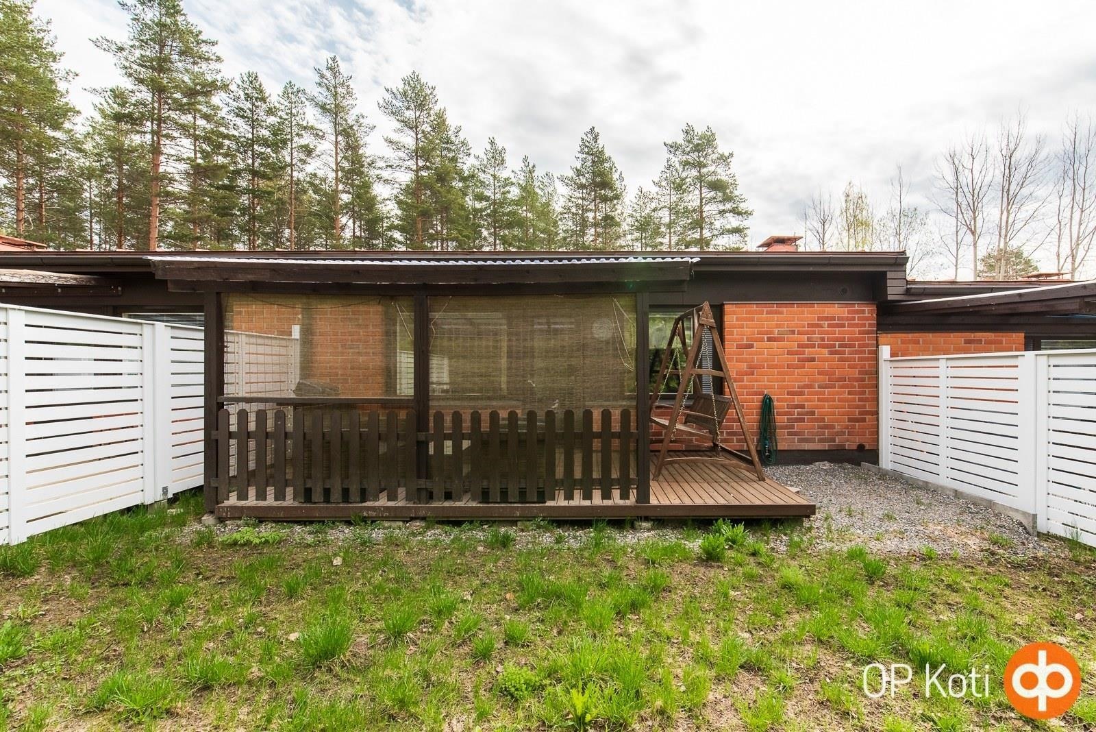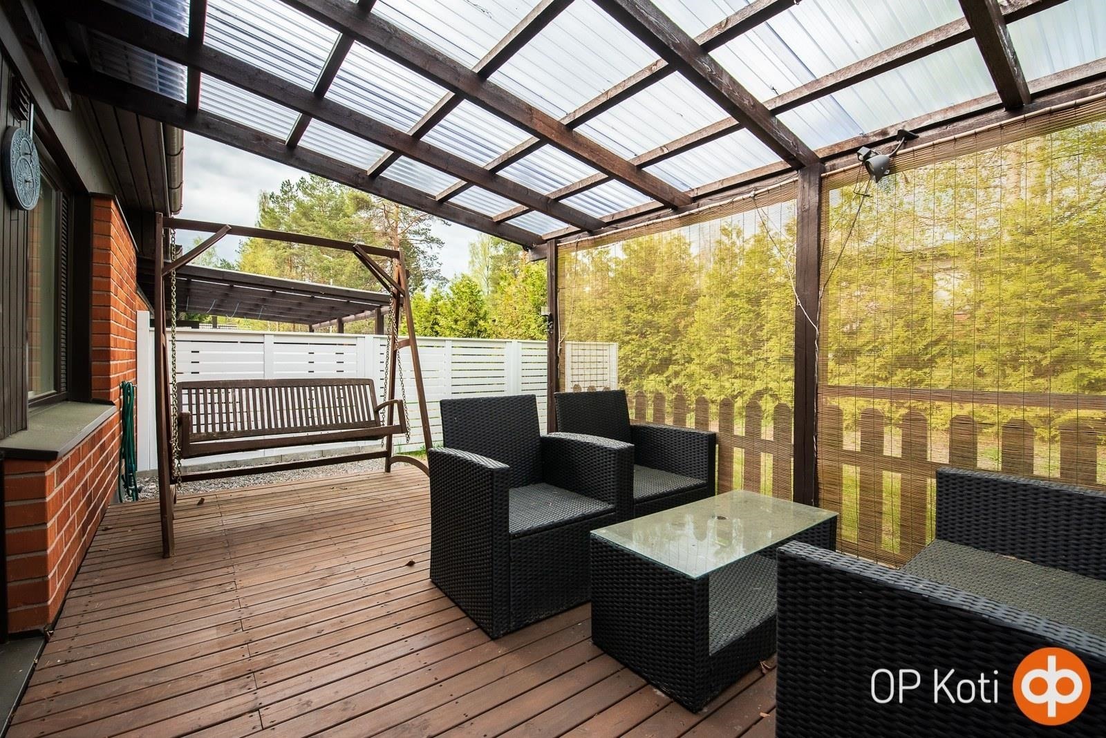 Tässä kodissa on mukavasti tilaa yhdessä tasossa, reilunkokoiset makuuhuoneet, joihin mahtuu muutakin kuin sänky. Olohuoneessa parkettilattia. Saunan pinnat trendikkään tummat. Takapihalla katettu terassi. Autolle paikka autokatoksessa.