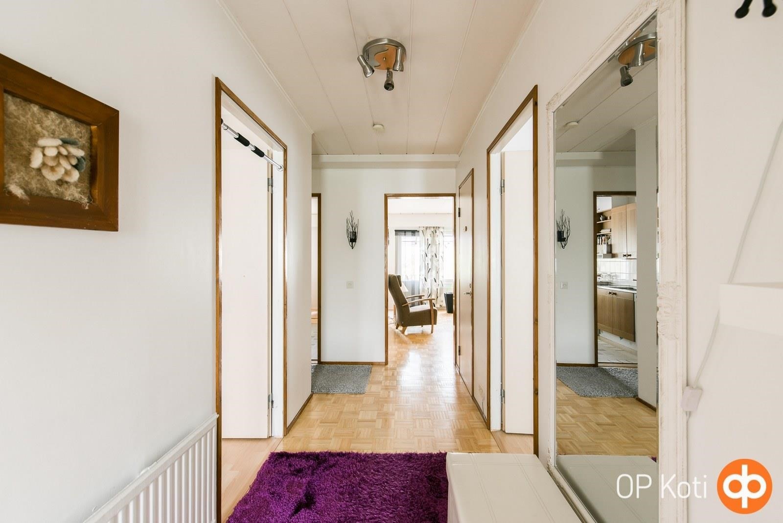 Keittiö: lattiassa muovimatto, seinät maalattu. Olohuone: parkettilattia, seinät tapetoitu/ maalattu. Makuuhuone 1: laminaattilattia, seinät tapetoitu. Makuuhuone 2: laminaattilattia, seinät tapetoitu. Sauna: laattalattia, seinät paneloitu. Kylpyhuone: lattia ja seinät laatoitettu.