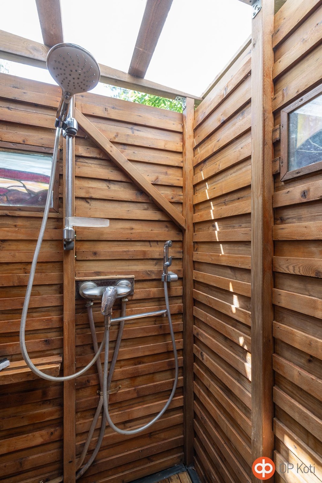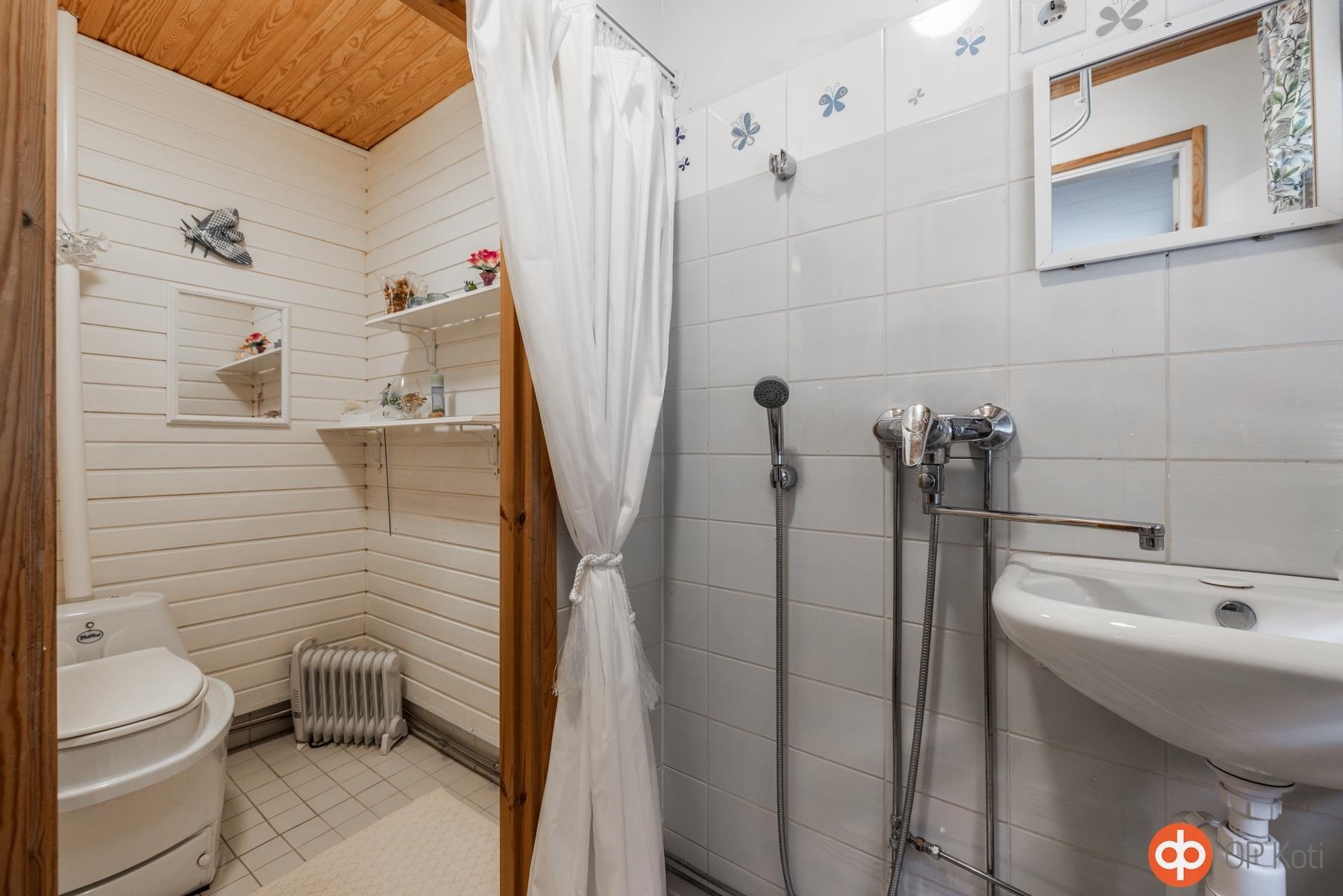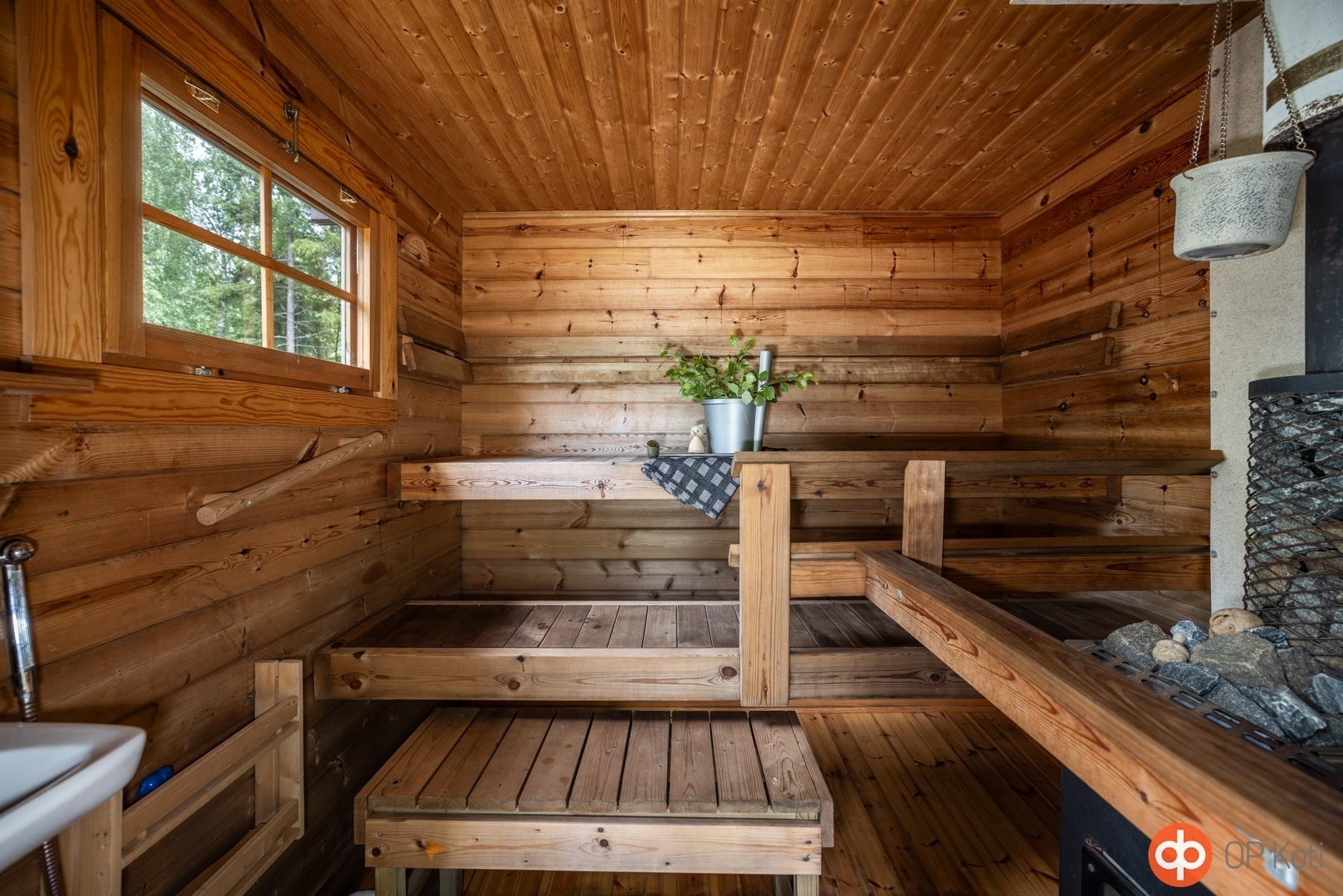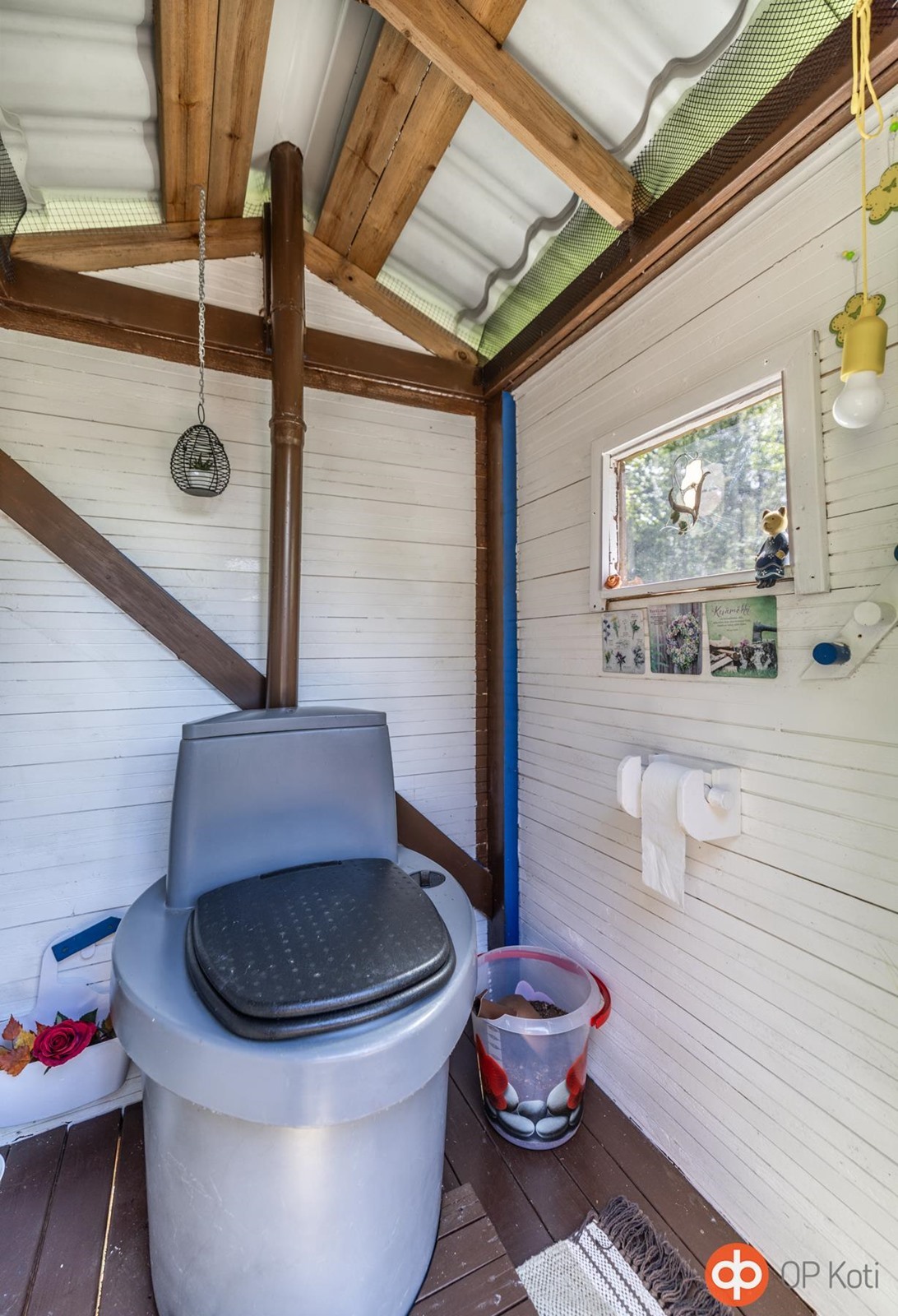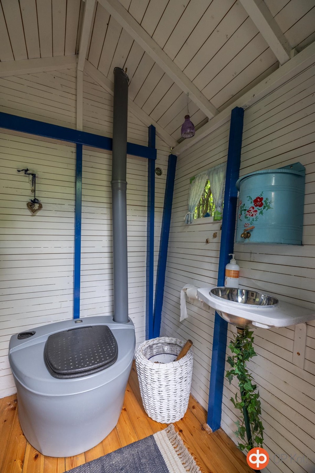 - Erillinen wc kompostoiva (MullToa 60) sähköwc talossa, peilit sisä wc-tilassa, kiinteät valaisimet. Ulkosauna, jossa jatkuvalämmitteinen kiuas ja kuumavesisäiliö, kesävesi letkulla kaivosta, puukiuas, lavuaari, ulkosuihku. Lisäksi kaksi (2) PuuCeeta (Biolan) ulkona.