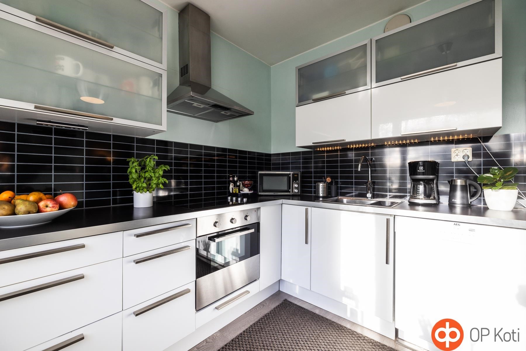 - Jääkaappipakastin v.2014, keraaminen liesi ja uuni, liesituuletin, astianpesukone v. 2017, kiinteät valaisimet. Keittiön irtohyllyt. Mikroaaltouuni ei kuulu kauppaan.
