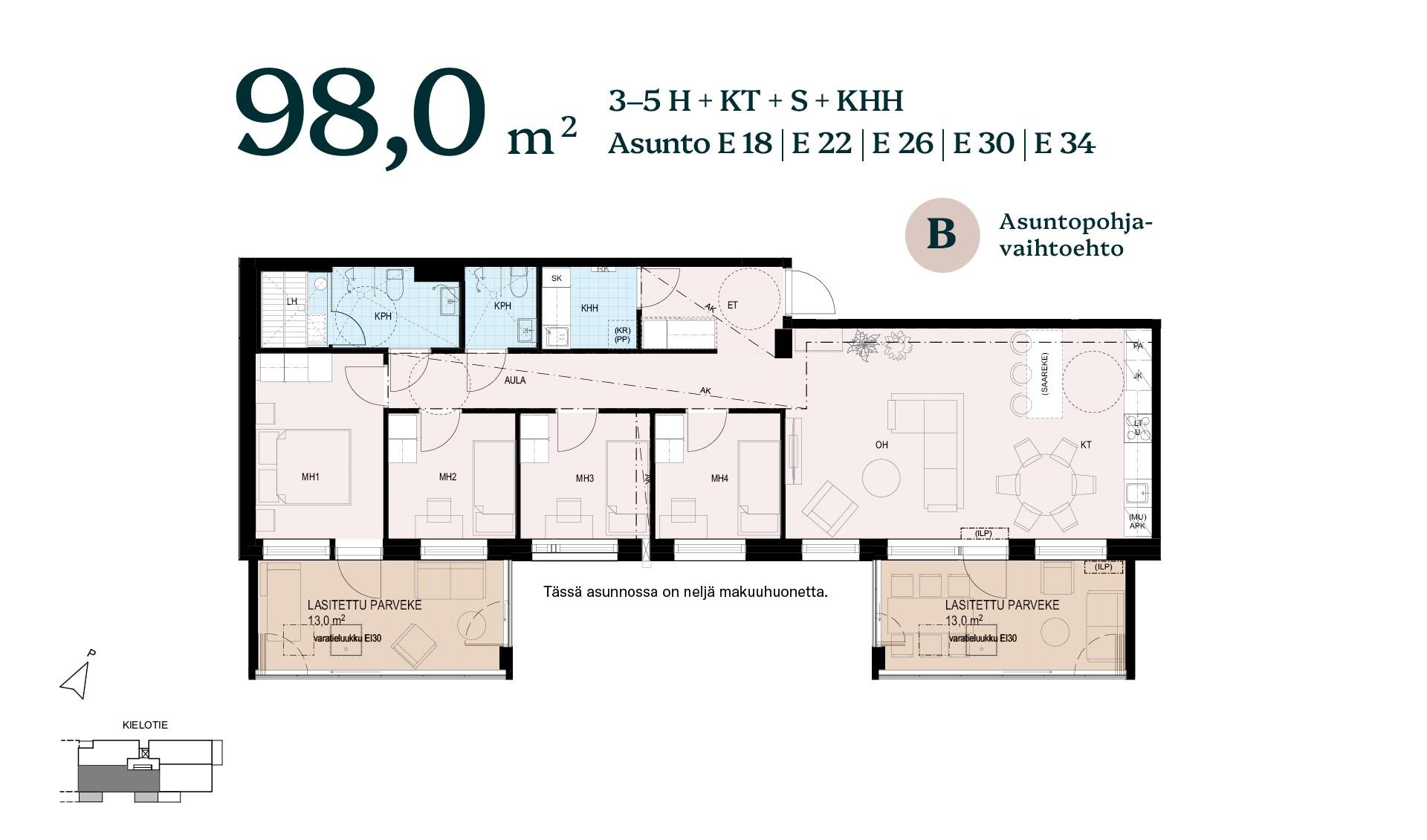 Ennakkomarkkinoinnin aikana varatessasi voit vaikuttaa huonejärjestykseen ja muokata kotiasi tarpeidesi mukaan - esimerkiksi valita saunan tilalle kodinhoitohuoneen tai vaatehuoneen. Kaikki valmiiksi suunnitellut muutokset sisältyvät asunnon hintaan.