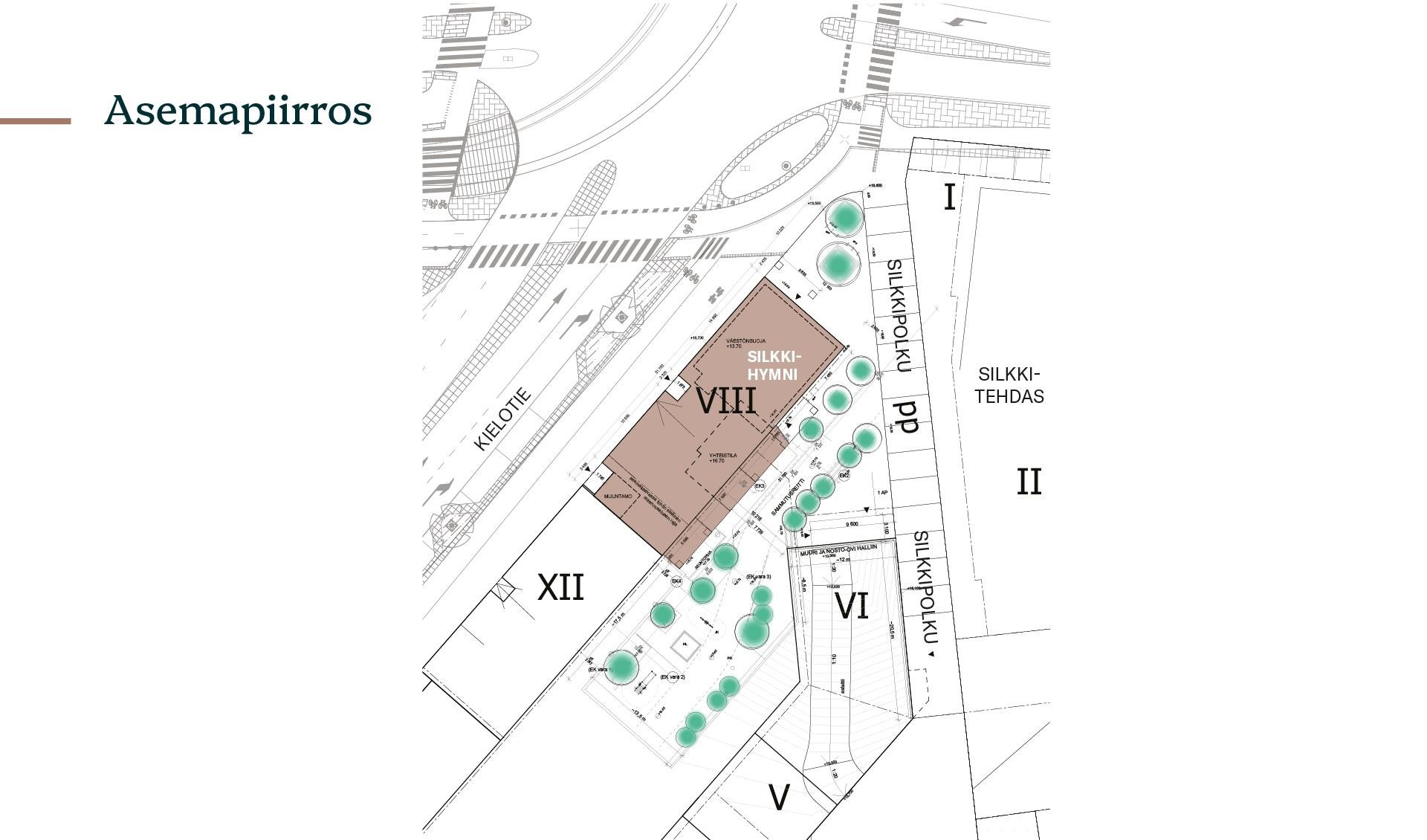 Palvelut: Tikkurilassa on kattavat palvelut, monipuoliset ostosmahdollisuudet sekä useita kauppakeskuksia. Alueen kahvila- ja ravintolatarjonta kasvaa jatkuvasti. Kulttuurielämyksiä on runsaasti kävelyetäisyydellä mm: Tikkurilan Teatteri, Teatteri- ja sirkuskoulu sekä Tanssiteatteri Raatikko, Kulttuuritehdas Vernissa ja kotiseututalo Påkas tarjoavat esityksiä ja tapahtumia. Elokuvista vastaa perinteikäs Bio Grand. Rautatieaseman läheisyydessä sijaitsee Vantaan kaupunginmuseo, ja taiteen ystäville näyttelyitä tarjoavat Gjutars ja Galleria K. Alueen tunnetuin nähtävyys on Tiedekeskus Heureka, joka houkuttelee kaikenikäisiä kävijöitä. Tikkurilan urheilupuisto ja uimahalli tarjoavat erinomaiset liikuntamahdollisuudet, unohtamatta lähialueella sijaitsevien mm. Hakunilan hiihtokeskuksen ja Hiekkaharjun Golfin tarjontaa. Koulut: Alueella on kouluja alakoulusta ammattikorkeaan,. Päiväkoti: Alueella on useita päiväkoteja, lähialueella myös ruotsin- ja englanninkieliset. Asunto Oy Tikkurilan Silkkihymni sijaitsee Vantaan Tikkurilassa osoitteessa Silkkitehtaantie 4, 01300 Vantaa. Yhtiö koostuu yhdestä omistusasuntokerrostalosta, jossa on kahdeksan asuinkerrosta, parvikerros sekä maanalainen kellarikerros. Rakennuksessa on yksi porrashuone ja hissi. Yhtiöön kuuluu asuntojen lisäksi kaksi liiketilaa, joista toinen ravintolavarauksella. Arvioitu valmistuminen on syksyllä 2027. Liikenneyhteydet: Keskeinen sijainti Tikkurilassa takaa erinomaiset liikenneyhteydet. Juna-asemalle kävelet reilussa viidessä minuutissa, ja junalla liikkuminen on vaivatonta: Helsingin keskustaan pääset noin 15 minuutissa ja lentoasemalle alle 10 minuutissa. Lisäksi rakenteilla olevan Vantaan ratikan Silkkitehtaan pysäkki tulee aivan tien toiselle puolelle, omalla autolla liikkuvalle valtaväylät nopeiden siirtymien päässä. Arjen liikkuminen ei voisi olla juuri kätevämpää.