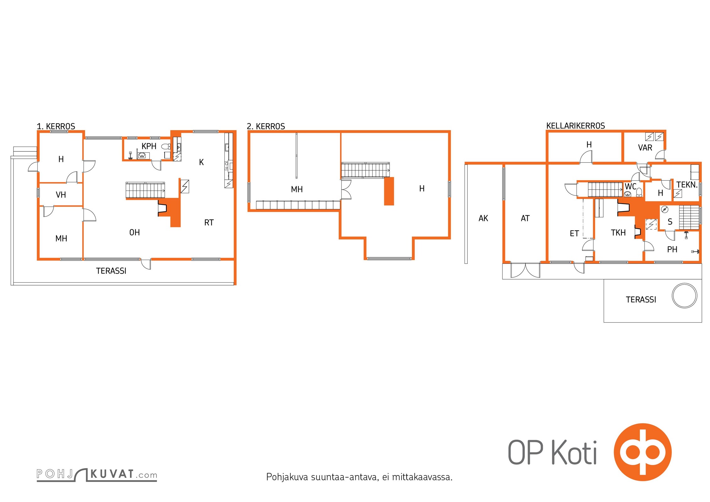 - 4h, k, rt, 2xwc, takkahuone, 2xkph, s, khh, at, varasto, 2xkellaria, tekninentila