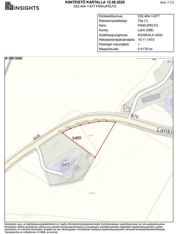 - Yleiskaava, Rakennuslupa 1968. M Maa- ja metsätalousalue: Alue on tarkoitettu maa- ja metsätalouden harjoittamiseen. Alueella sijaitsee maatila- ja hajarakennuspaikkoja. Lahden kaupunki