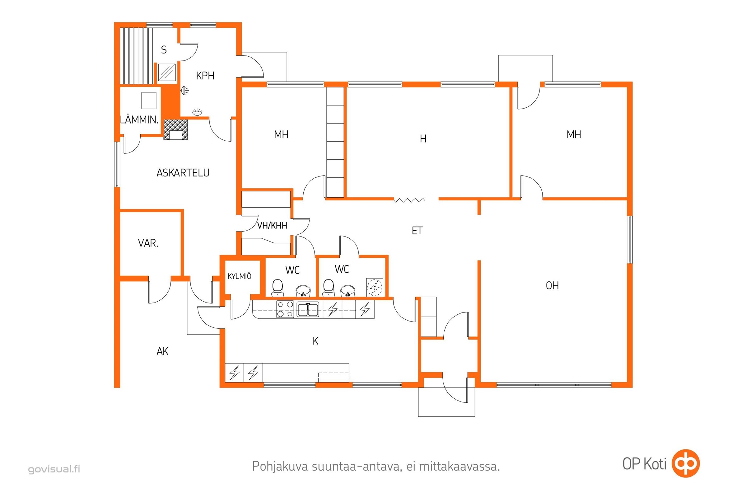 - 3mh, oh, k, kylmiö, 2wc, vh/khh, tkh, kph, s