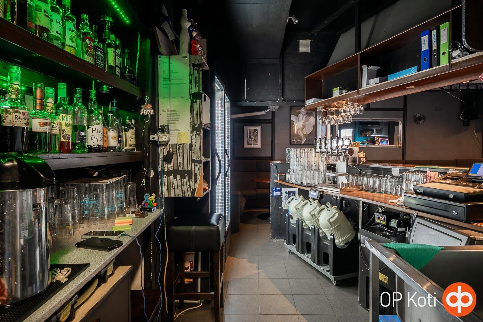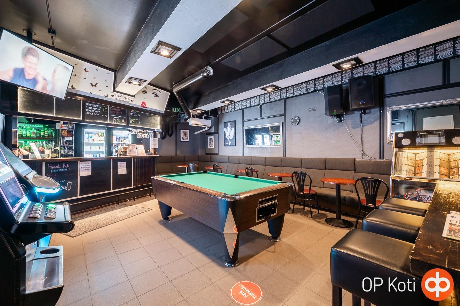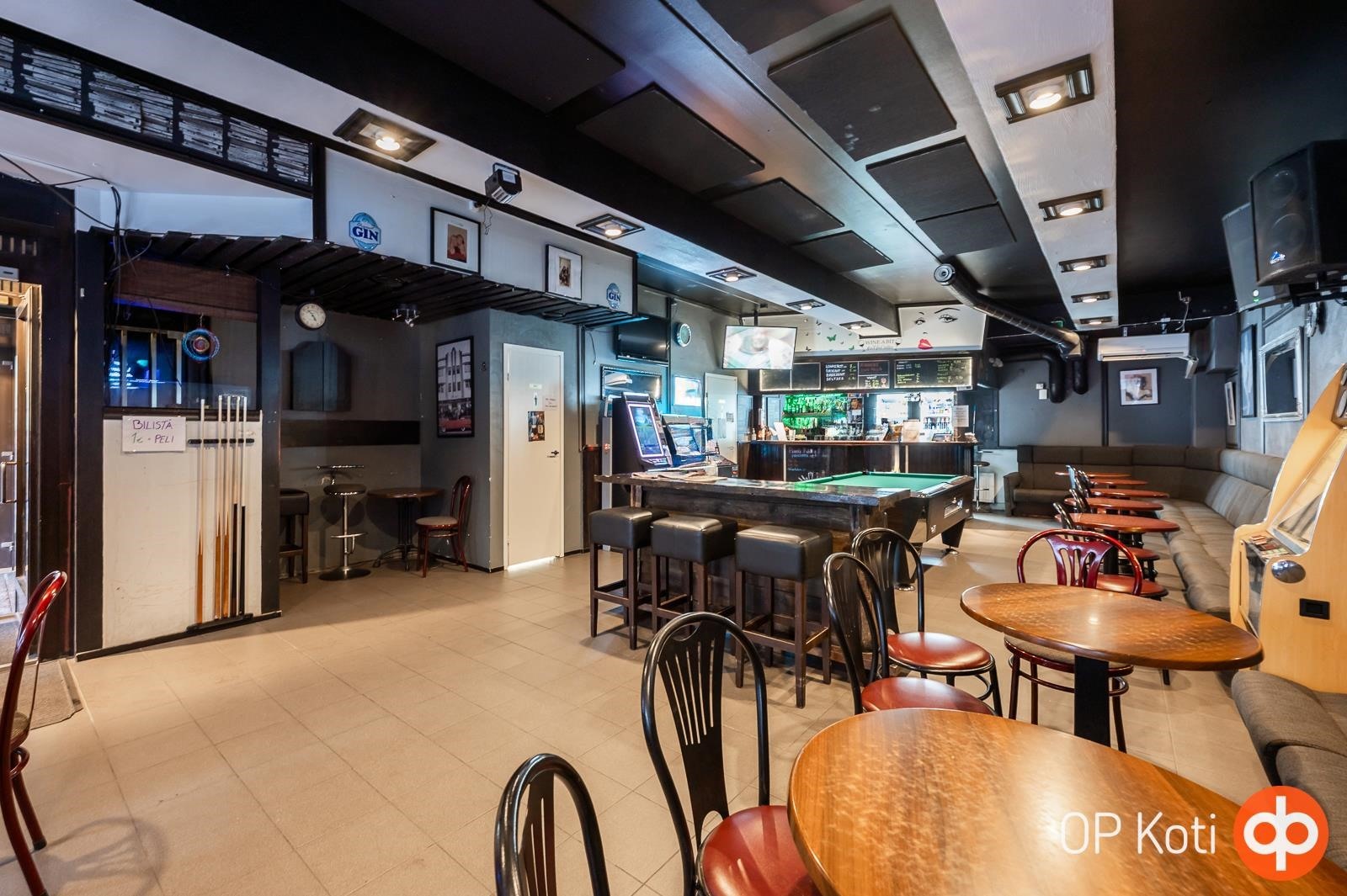Tila toimii tällä hetkellä baarina, ja siinä on vuokralainen, joten ostajalle tarjoutuu valmiiksi tuottava sijoituskohde tai mahdollisuus jatkaa baaritoimintaa omana yrityksenä.
