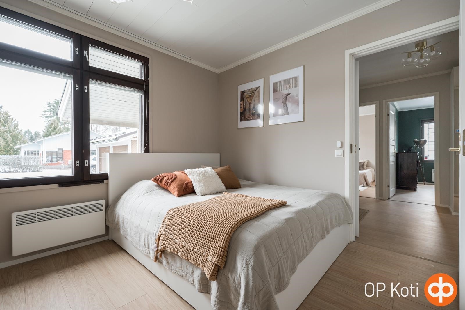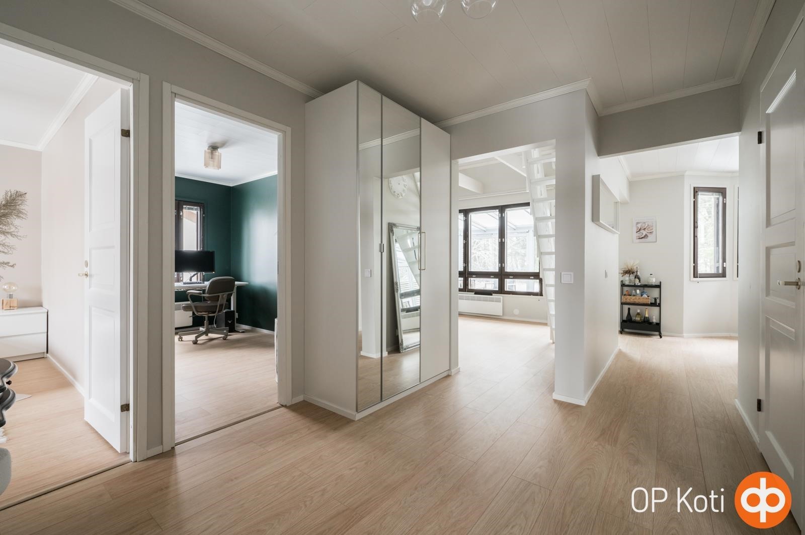 Yläkerran parvi tarjoaa runsaasti lisätilaa oleskeluun, ja vaatehuoneen suuret säilytystilat pitävät huolen kausivaatteiden ja muiden tavaroiden säilytyksestä. Lisäksi erillinen ulkovarasto tuo vielä lisää käytännöllisyyttä arkeen.