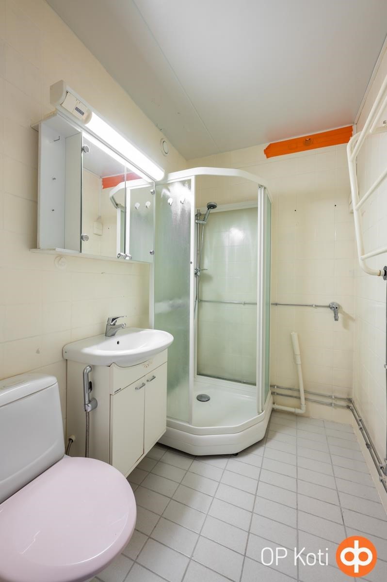- Kylpyhuone, suihku, suihkukaappi, allaskaappi, pesukoneliitäntä, kiinteät valaisimet.