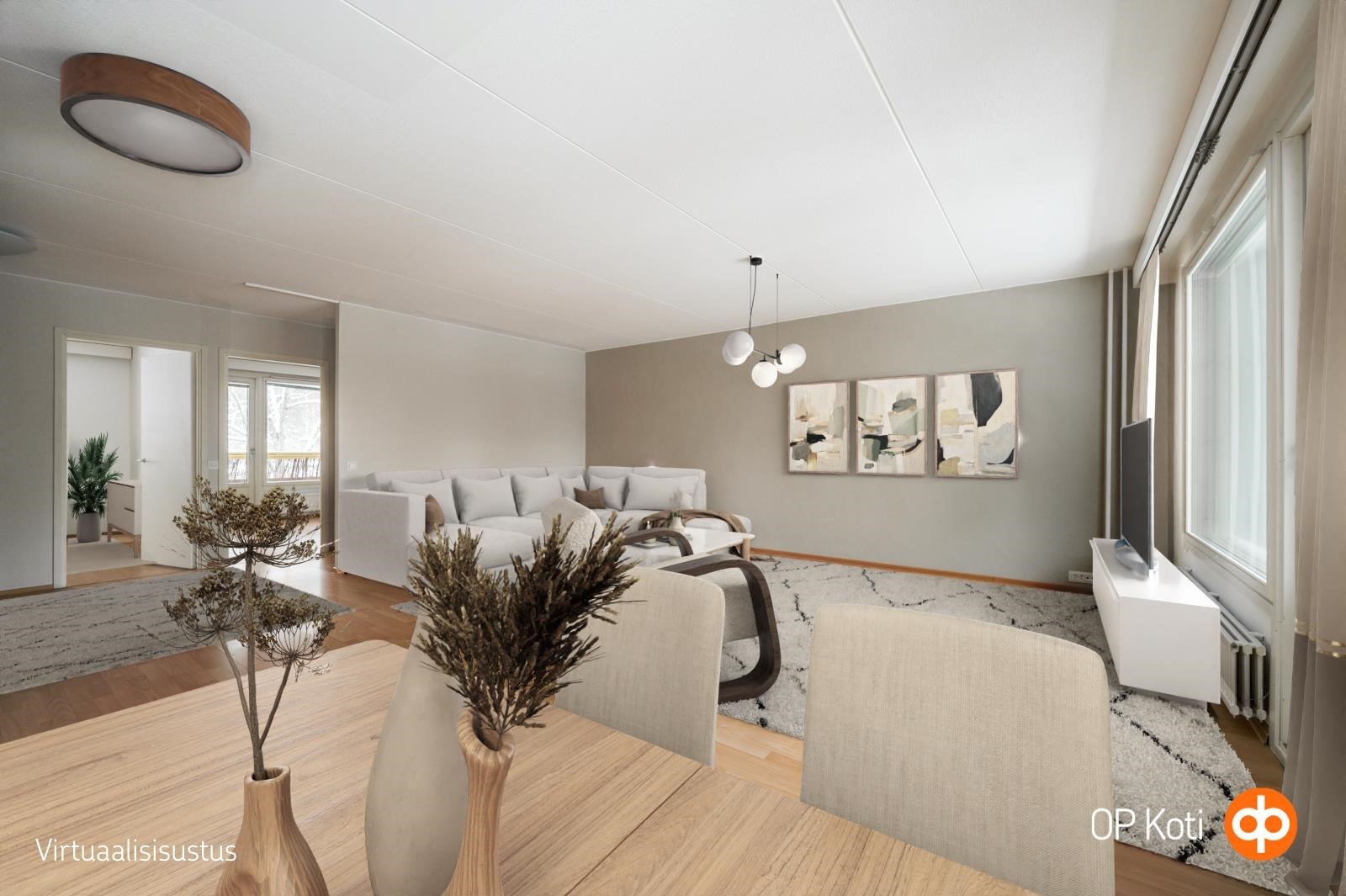 Myytävänä valoisa ja toimivapohjainen läpitalon päätyhuoneisto hissitalon toisessa kerroksessa. Asunnossa on avoin olohuone-keittiö-ratkaisu, joka tuo tilaan avaruutta ja käytännöllisyyttä.
