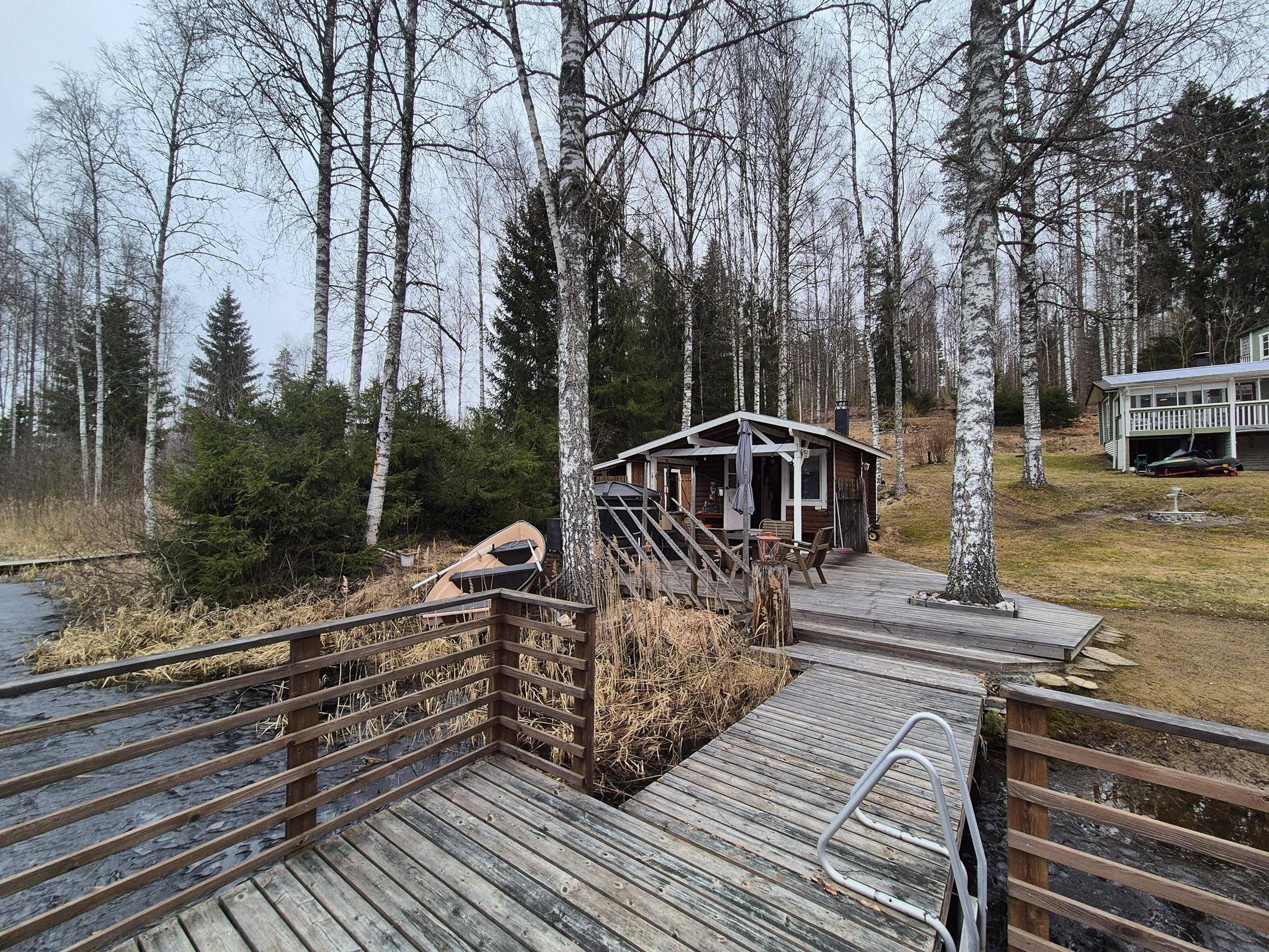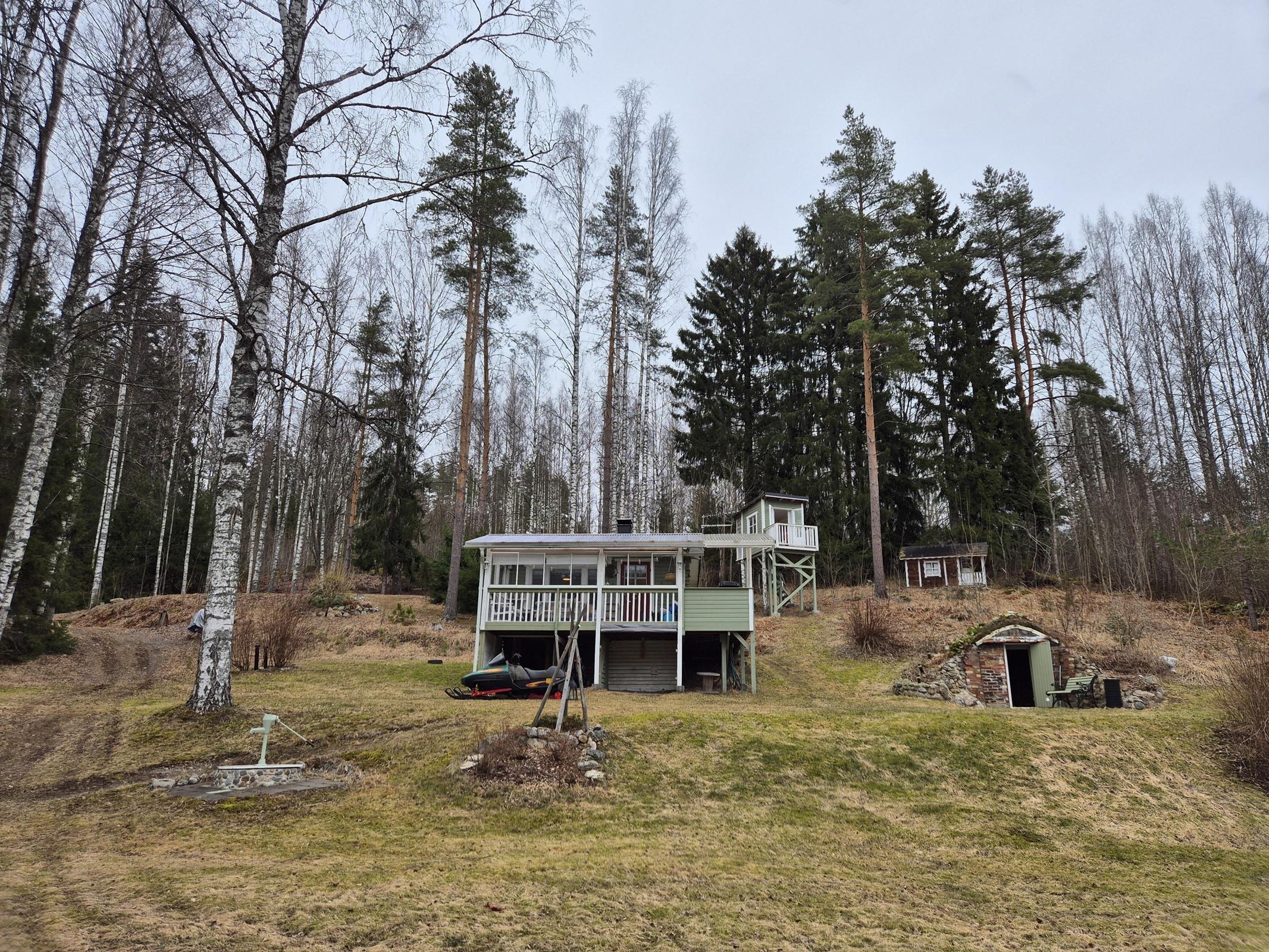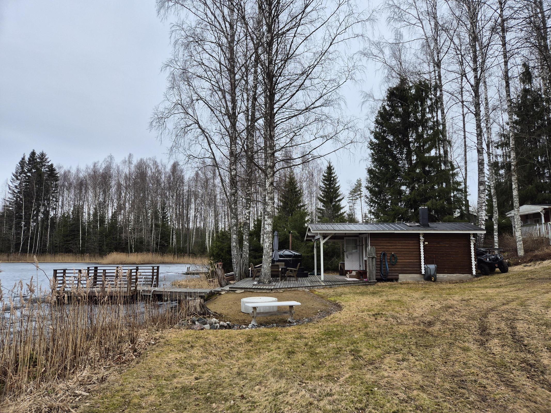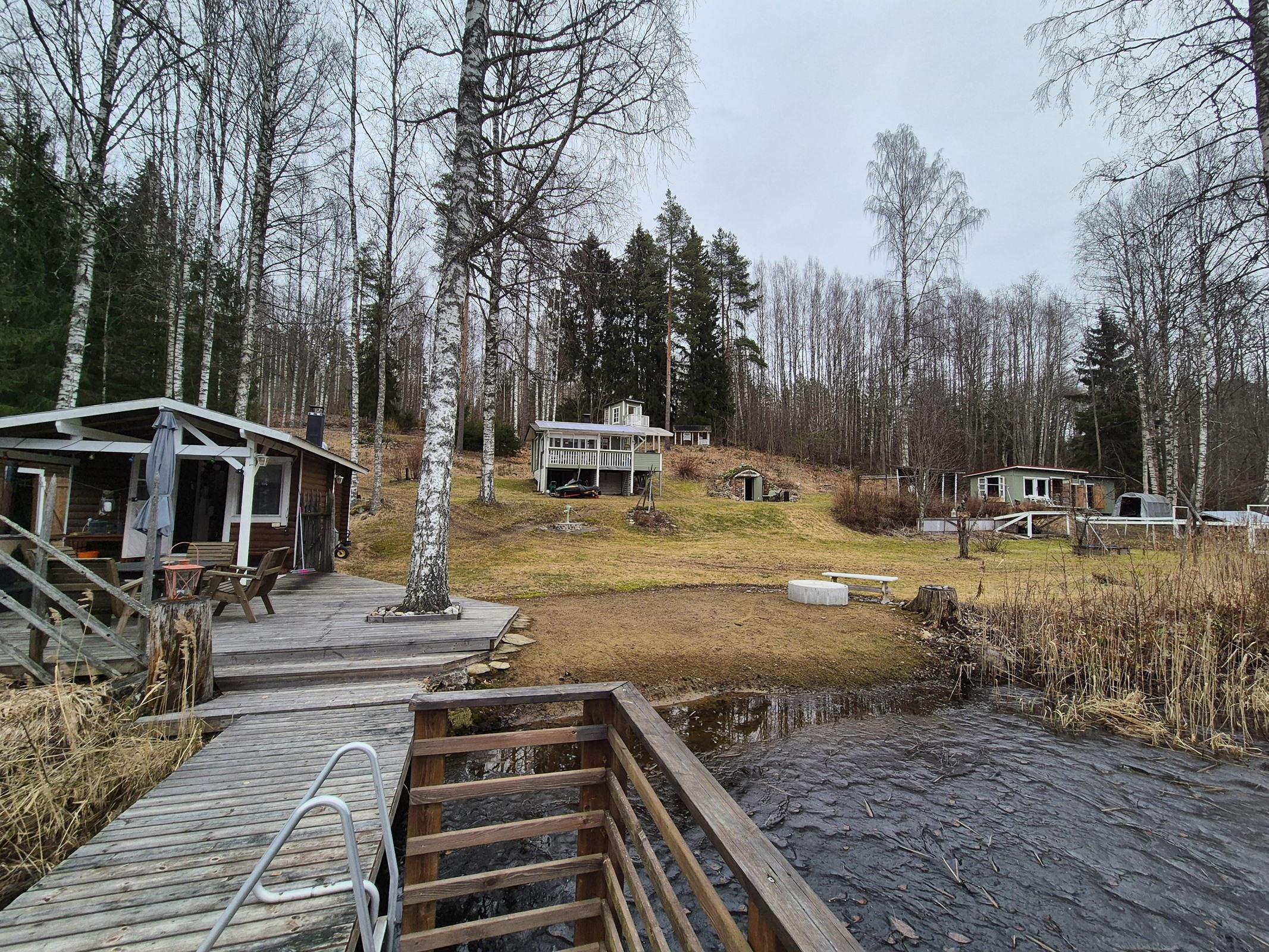 Rannan tuntumassa sijaitsevat sauna ja terassi kutsuvat nauttimaan kesäilloista järvimaisemassa. Erillinen kesähuone takkoineen luo tunnelmaa viileämpiin iltoihin, ja puuhun rakennettu pihamaja hurmaa perheen pienimmät. Puucee, sähköt sekä ilmalämpöpumppu tuovat käytännöllisyyttä vapaa-aikaan.