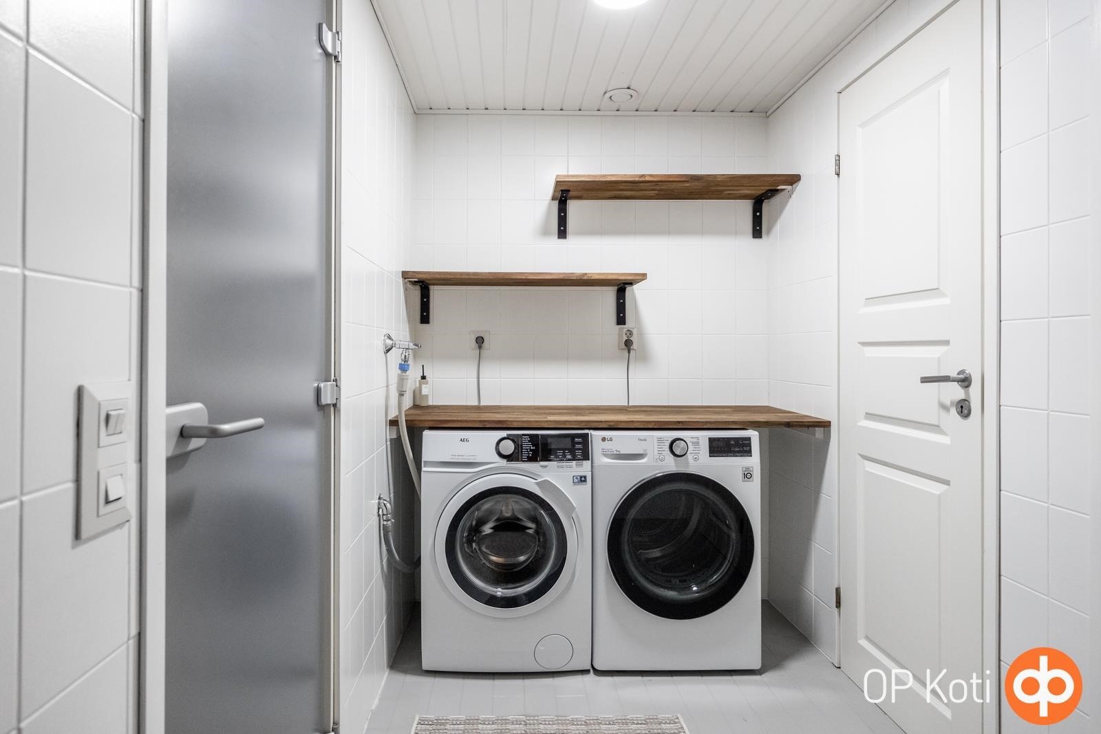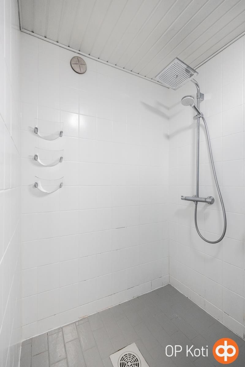 - Sauna, sähkökiuas, kylpyhuone, erillinen wc, suihku, suihkuseinä, peilit, peilikaappi, kaapit, allaskaappi, pesukoneliitäntä, lattialämmitys, kiinteät valaisimet.