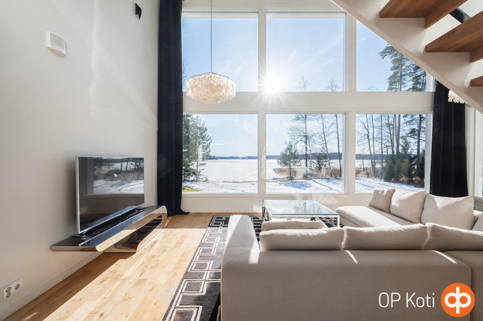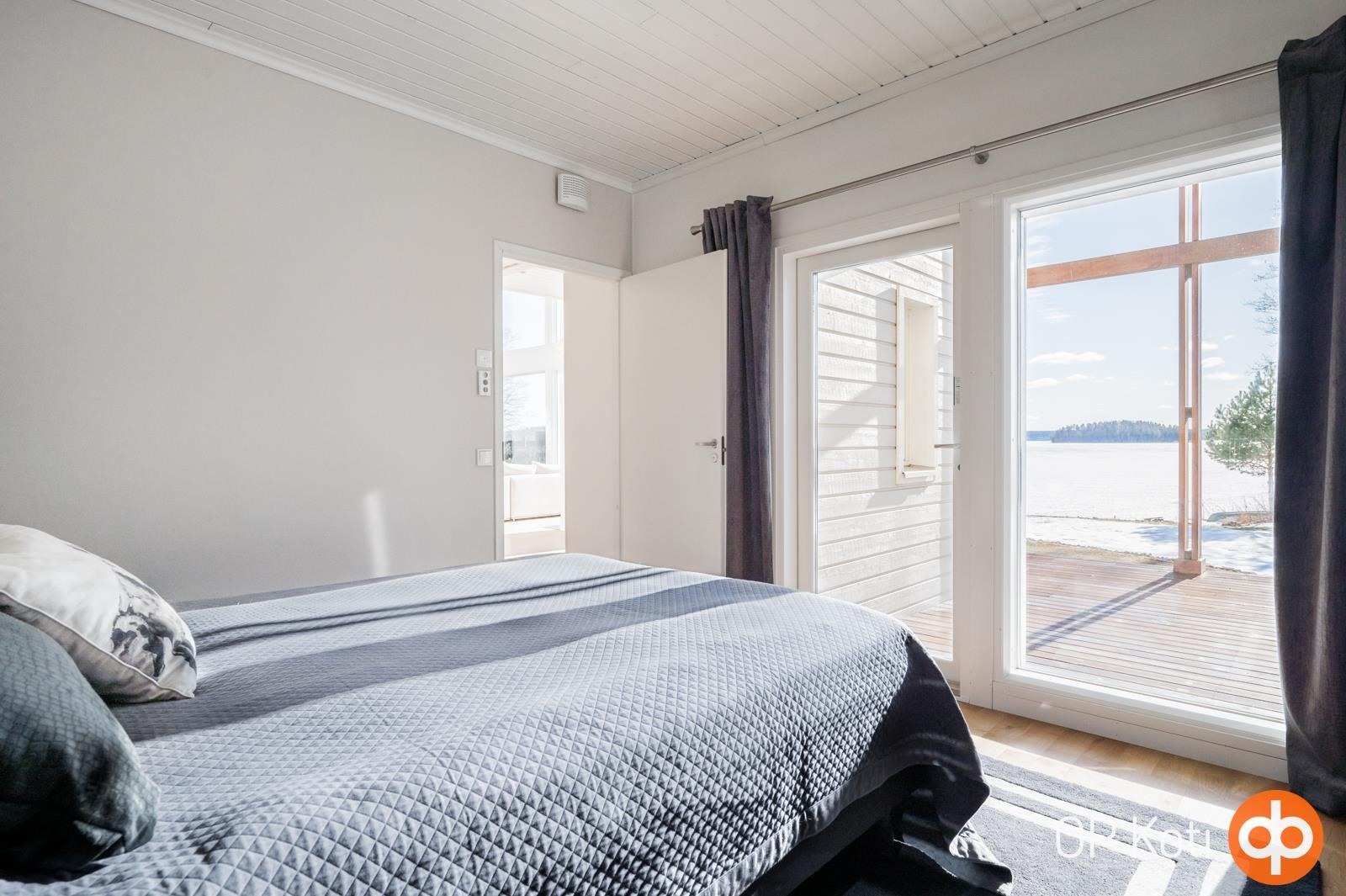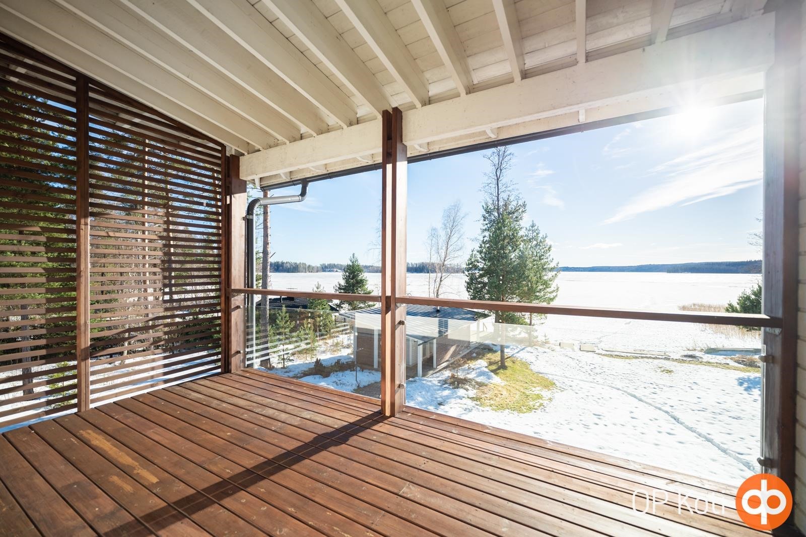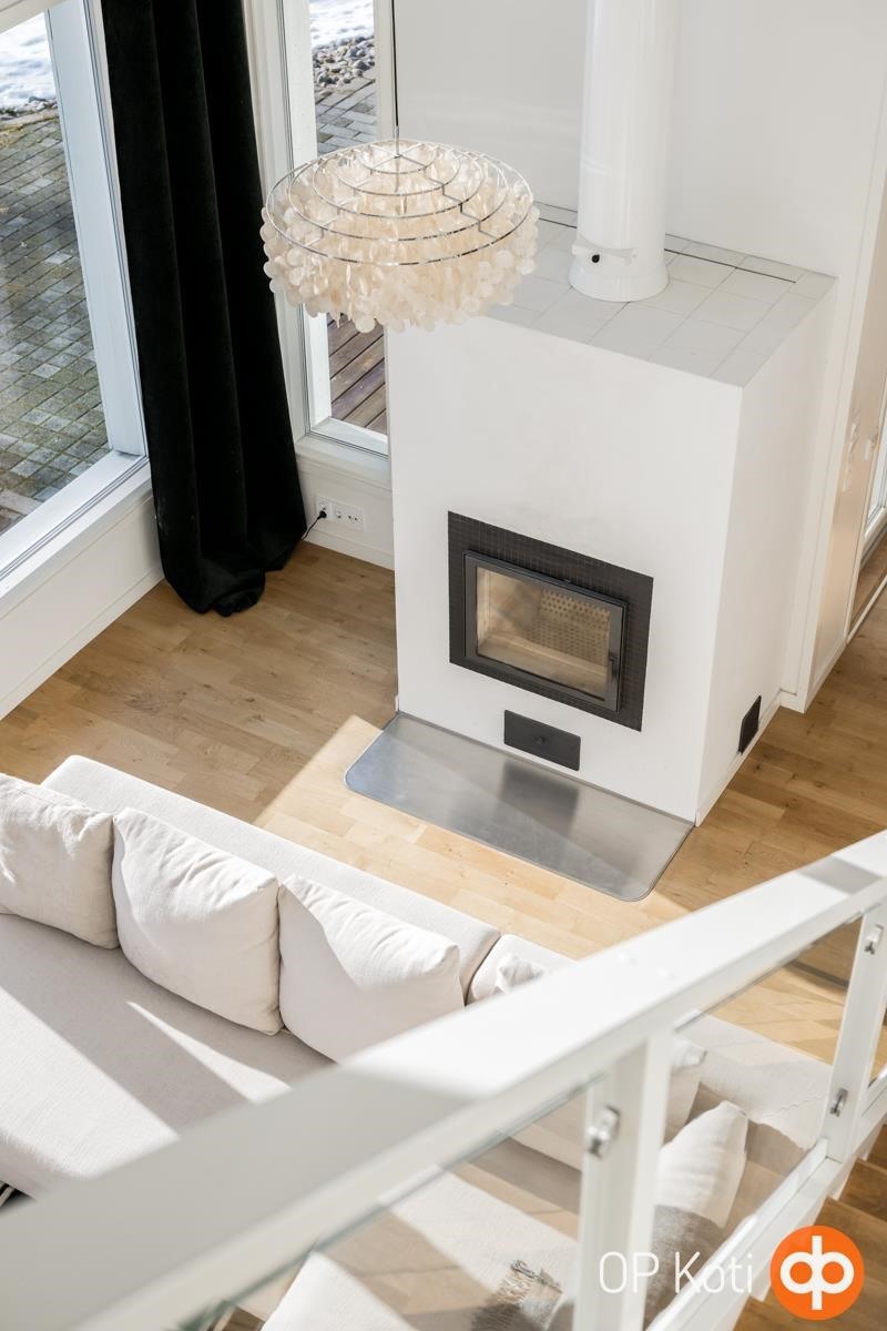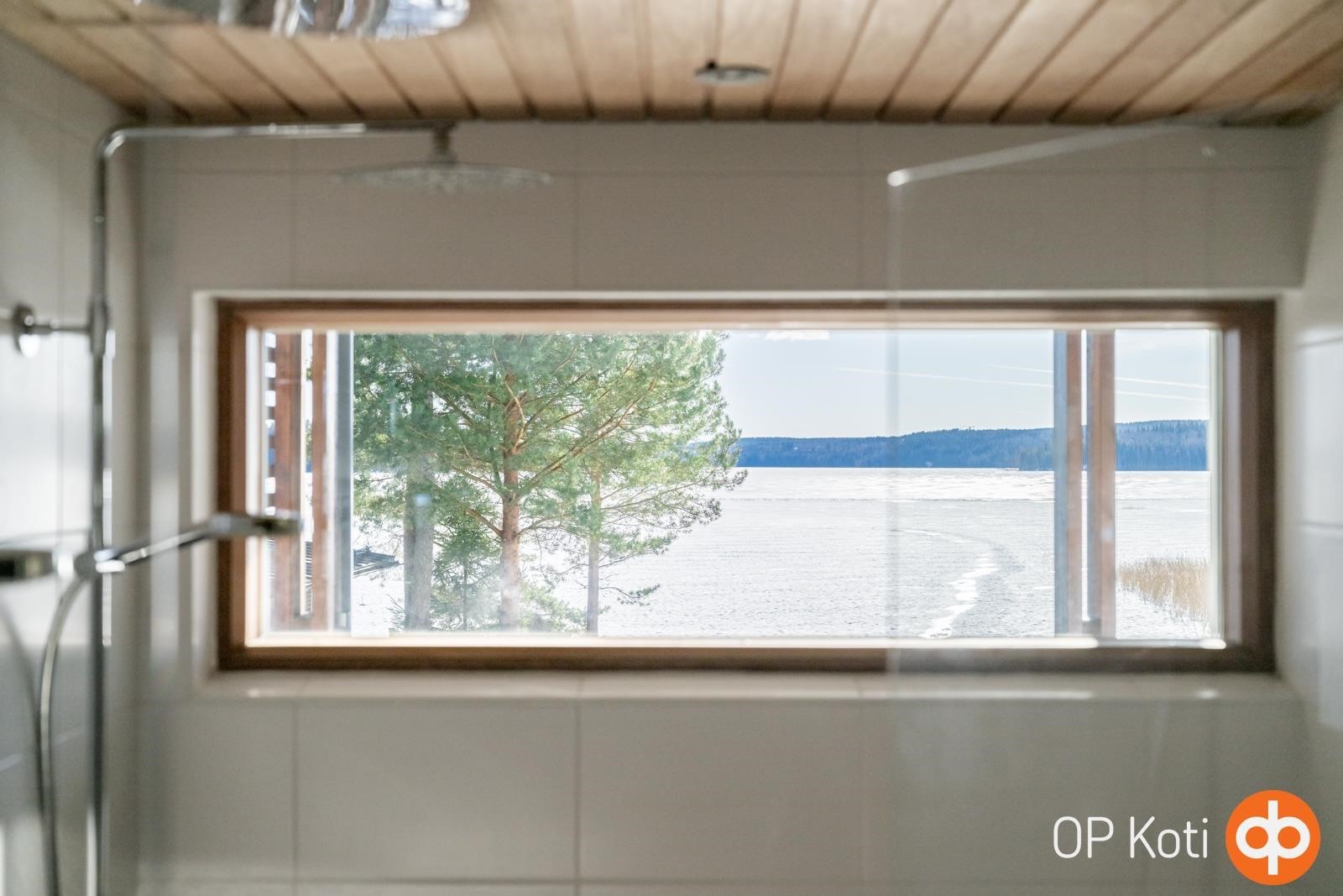 Kodissa suuret, lattiasta kattoon ulottuvat ikkunapinnat avaavat näkymät suoraan järvelle ja tuovat luonnon osaksi sisätiloja kaikkina vuodenaikoina. Valoisat ja avarat oleskelutilat muodostavat harmonisen kokonaisuuden, jossa moderni arkkitehtuuri ja järvimaisema täydentävät toisiaan.