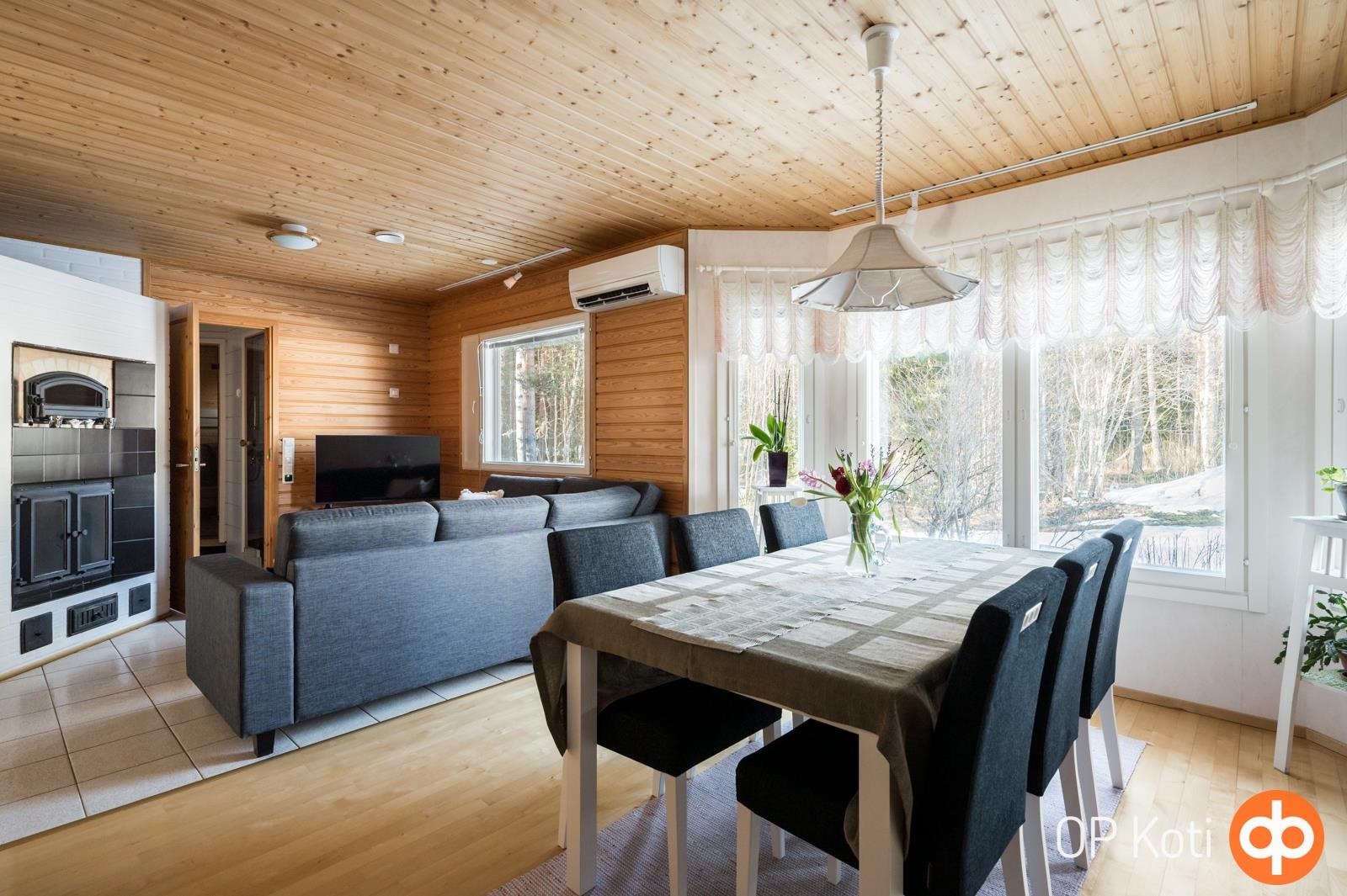 Kodista löytyy kolme makuuhuonetta, tilava olohuone, erillinen ruokailutila sekä keittiö, jonka lisäksi viihtyisä takkahuone tuo lisätilaa oleskeluun ja yhdessäoloon. Arjen sujuvuutta lisäävät peräti kolme wc-istuinta (yksi erillisen kylpyhuoneen ja yksi saunaosaston yhteydestä sekä erillinen wc), kodinhoitohuone