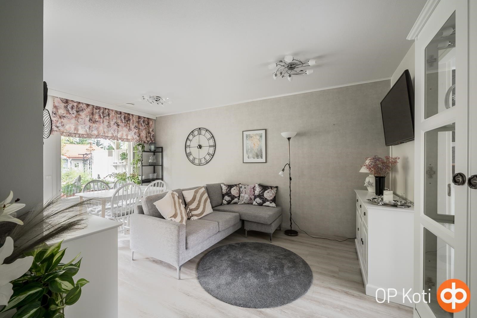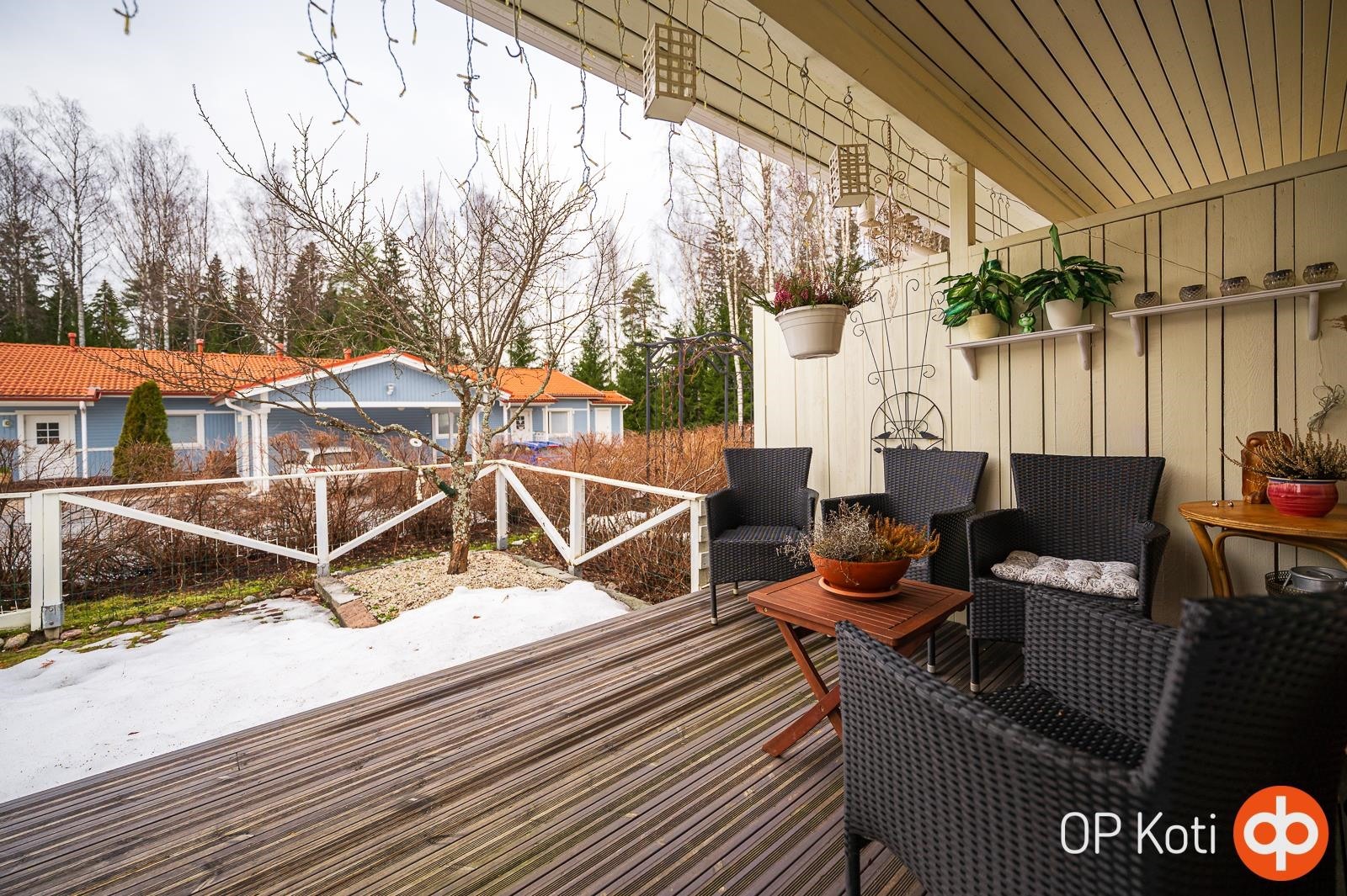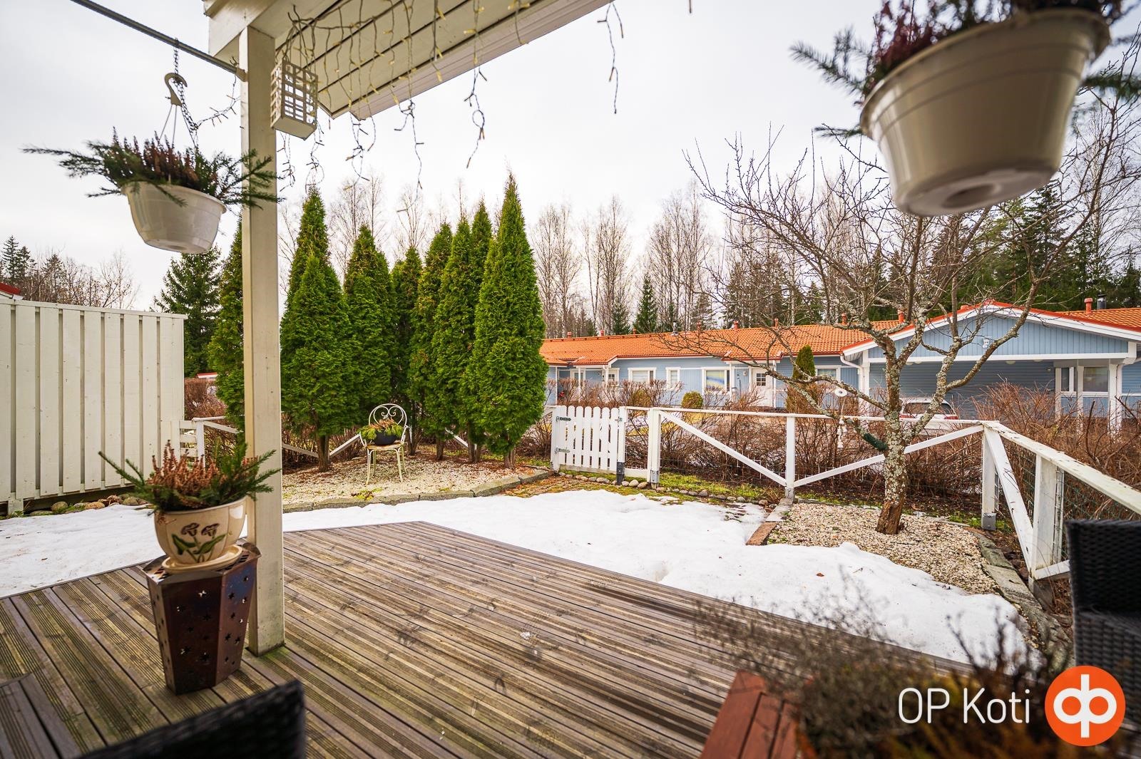 Ihastuttava rivitalokoti yhdessä tasossa! Tämän kodin selkeä ja hyvin suunniteltu pohjaratkaisu tekee arjesta sujuvaa, ja neliöt on käytetty poikkeuksellisen järkevästi. Asunnosta löytyy kaksi makuuhuonetta, valoisa olohuone, avokeittiö, kylpyhuone, sauna, erillinen wc sekä käytännöllinen vaatehuone. Erityisen houkutteleva on upea takapiha. Se on kun keidas, jossa rentoudut kesäpäivinä. Asunto on erittäin siistissä kunnossa ja valo tulvii sisään tehden tunnelmasta raikkaan ja viihtyisän. Rauhallinen sijainti tarjoaa hyvät ulkoilumahdollisuudet ja samalla olette lähellä kauppoja ja muita palveluita. Uimarannallekin vain kivenheitto. Huoneistoon kuuluu autokatos sekä pistokepaikka ja ulkovarasto. Asunto sopii varmasti monenlaisen asukkaan toiveisiin. Pyydäthän oman yksityisesittelysi tähän kauniiseen kotiin!