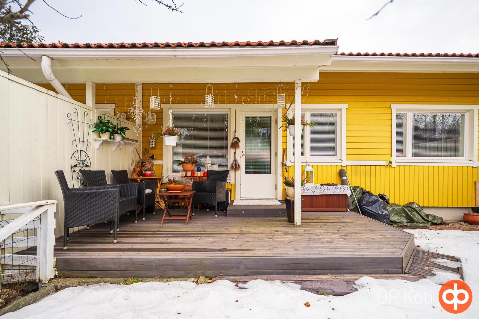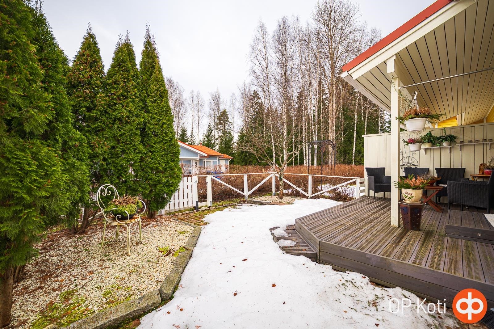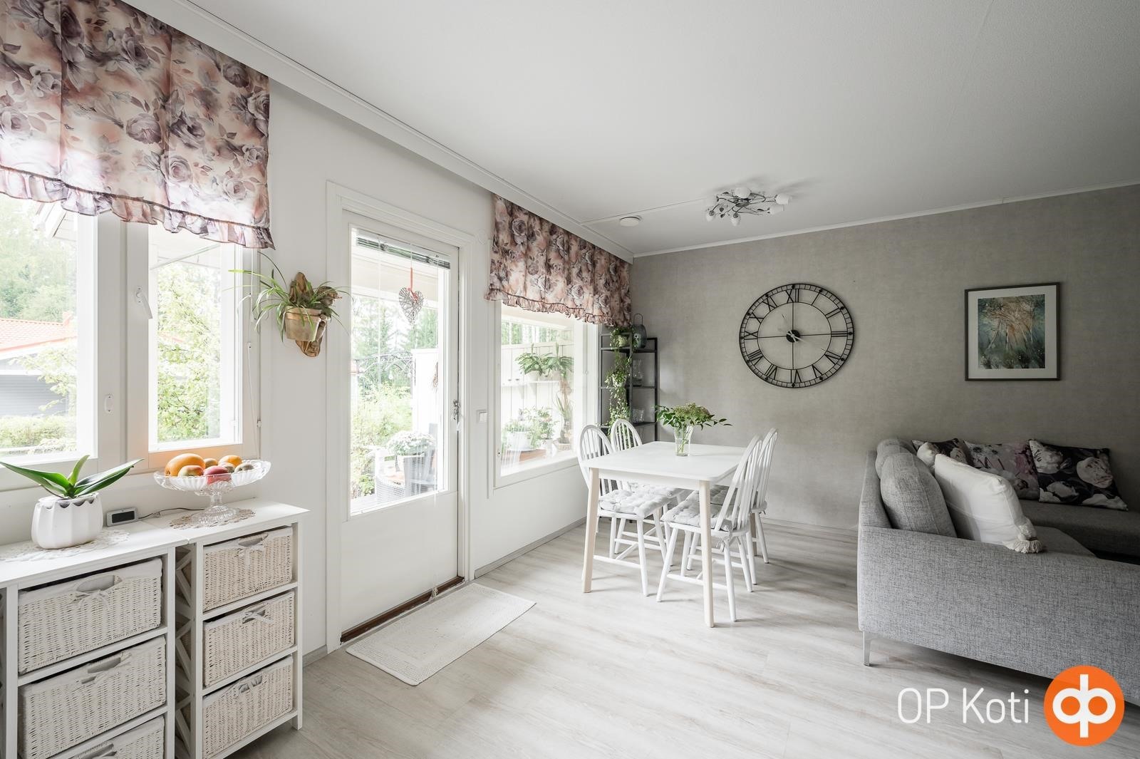Ihastuttava rivitalokoti yhdessä tasossa! Tämän kodin selkeä ja hyvin suunniteltu pohjaratkaisu tekee arjesta sujuvaa, ja neliöt on käytetty poikkeuksellisen järkevästi. Asunnosta löytyy kaksi makuuhuonetta, valoisa olohuone, avokeittiö, kylpyhuone, sauna, erillinen wc sekä käytännöllinen vaatehuone. Erityisen houkutteleva on upea takapiha. Se on kun keidas, jossa rentoudut kesäpäivinä. Asunto on erittäin siistissä kunnossa ja valo tulvii sisään tehden tunnelmasta raikkaan ja viihtyisän. Rauhallinen sijainti tarjoaa hyvät ulkoilumahdollisuudet ja samalla olette lähellä kauppoja ja muita palveluita. Uimarannallekin vain kivenheitto. Huoneistoon kuuluu autokatos sekä pistokepaikka ja ulkovarasto. Asunto sopii varmasti monenlaisen asukkaan toiveisiin. Pyydäthän oman yksityisesittelysi tähän kauniiseen kotiin!