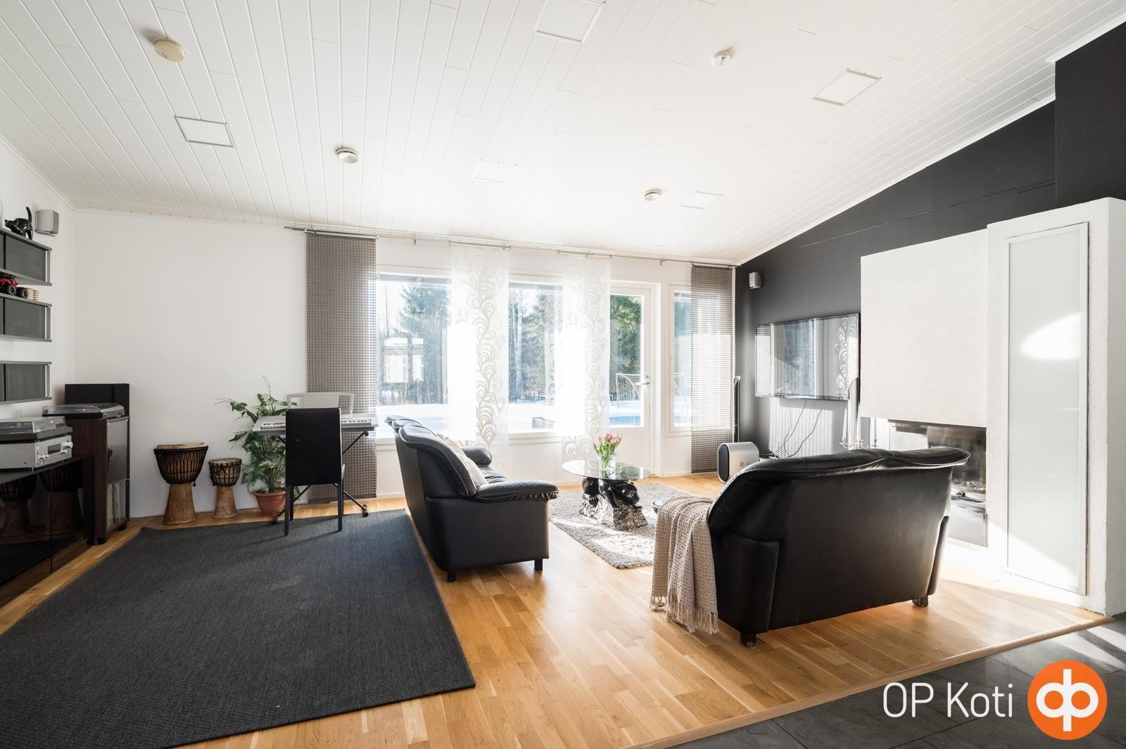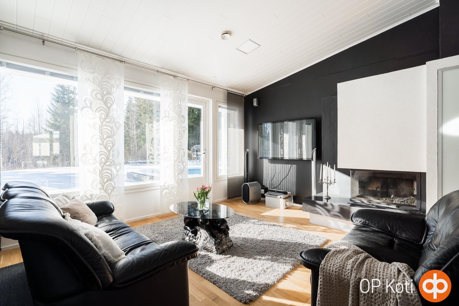 Kodissa on panostettu energiatehokkuuteen: maalämpö vesikiertoisella lattialämmityksellä takaa edulliset asumiskustannukset - koko kiinteistön sähkönkulutus on ollut vain hieman yli 16 000 kWh vuodessa. Lisäksi moderni takka tuo tunnelmaa ja tukee lämmitystä viileämpinä päivinä. Talon ilmanvaihdosta vastaa iv-kone lämmön talteenotolla.